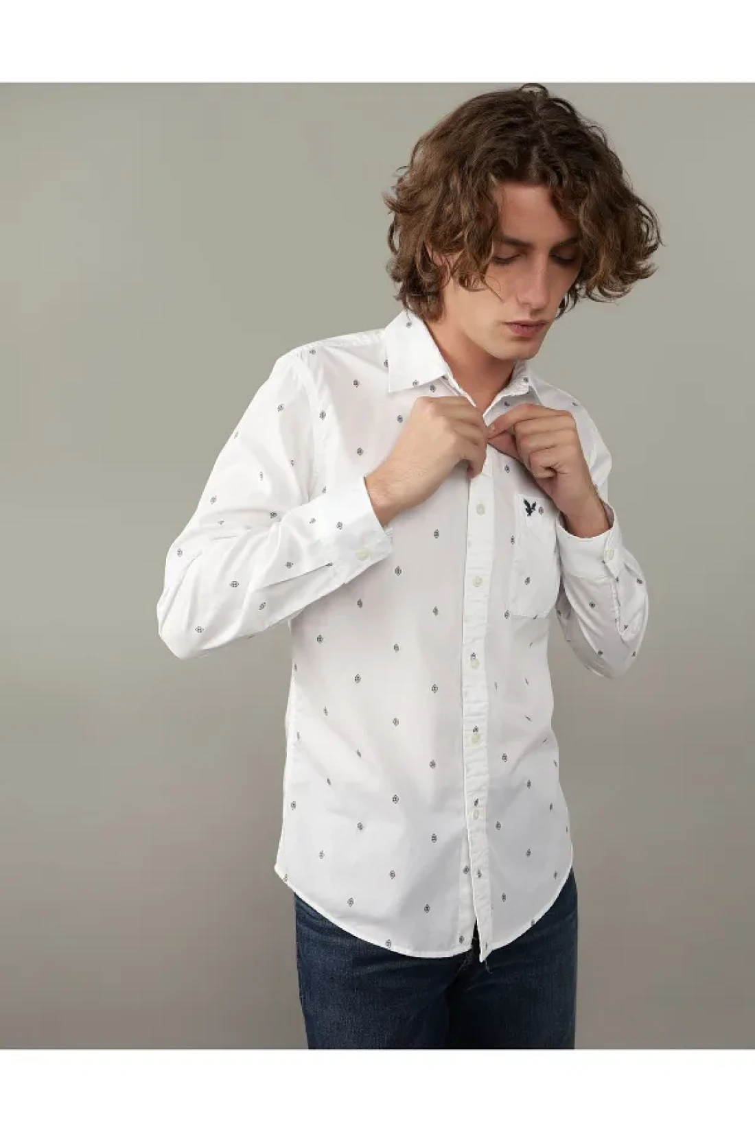 American Eagle Ae Slim Fit U-0153-2580-101 Everyday Button-Up Shirt