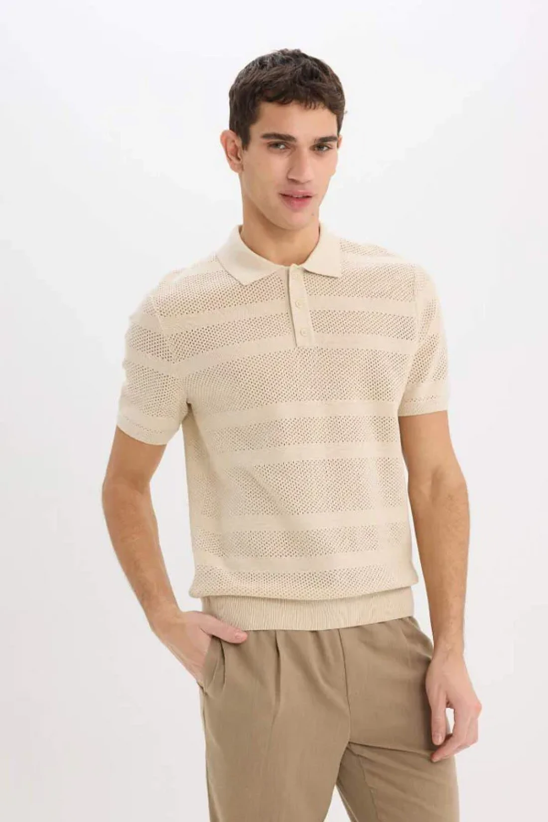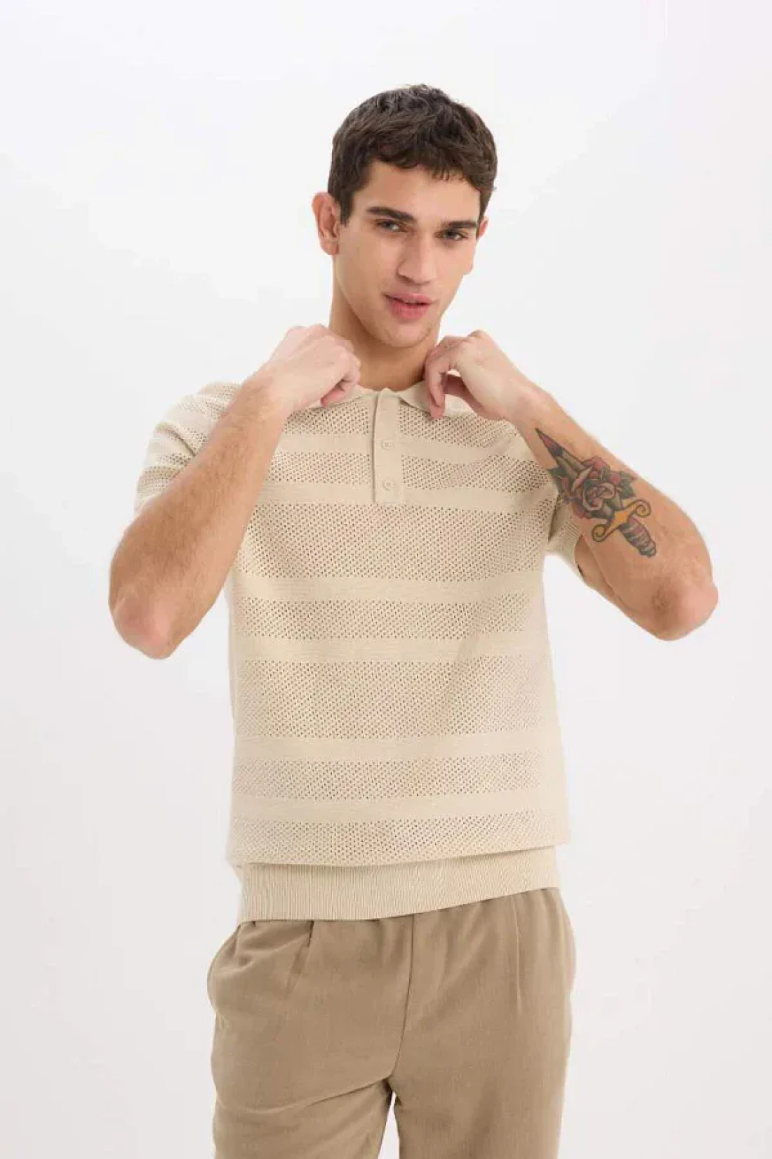 Defacto Standard Fit Polo Neck Knitwear Short Sleeve T-Shirt E3300Ax25Sm