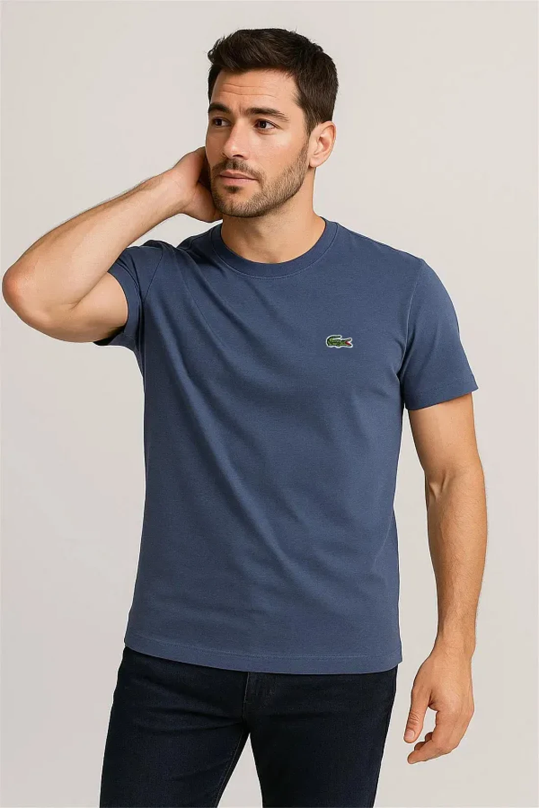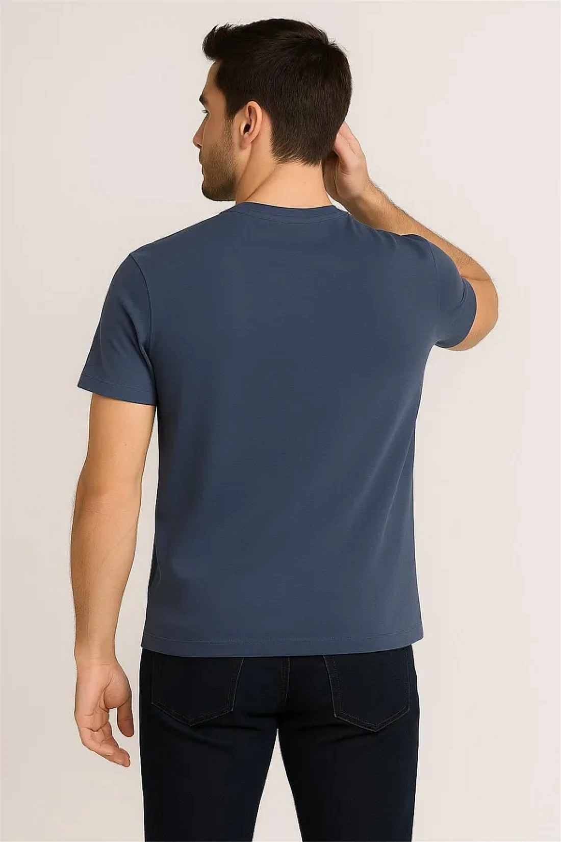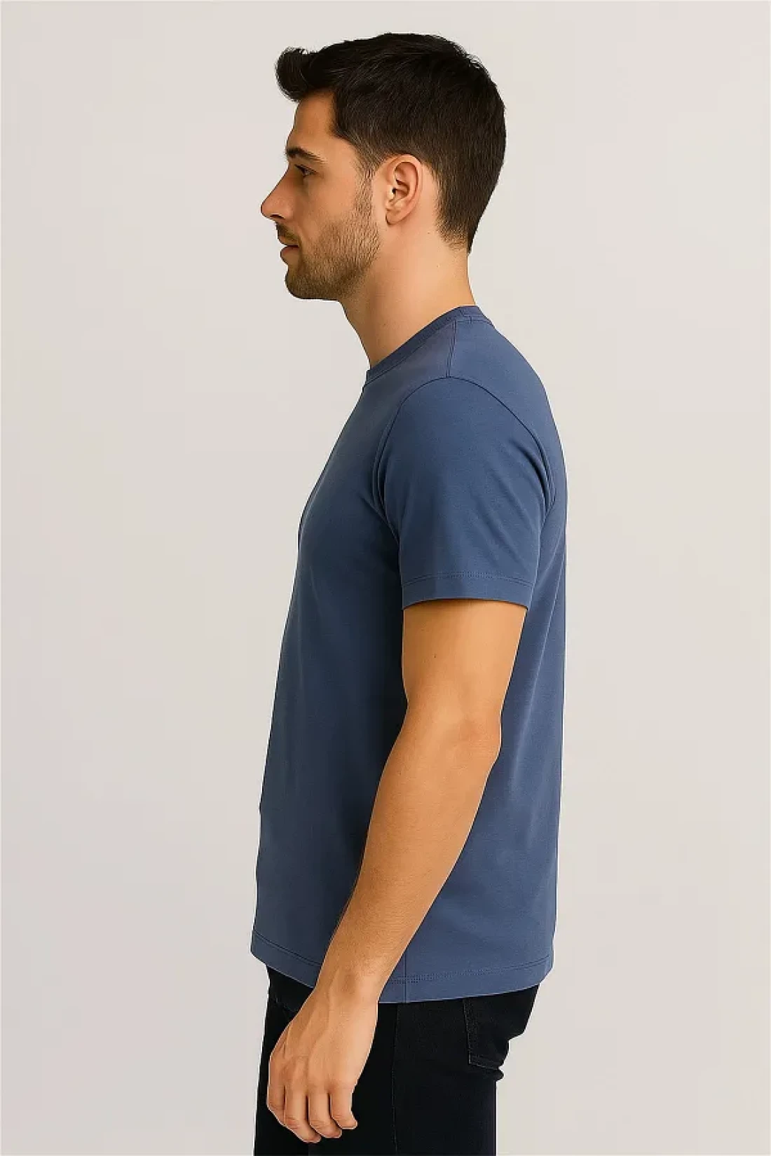 The bicycle collar t-shirt, which stands out with its mud blue color, offers elegance and comfort together.