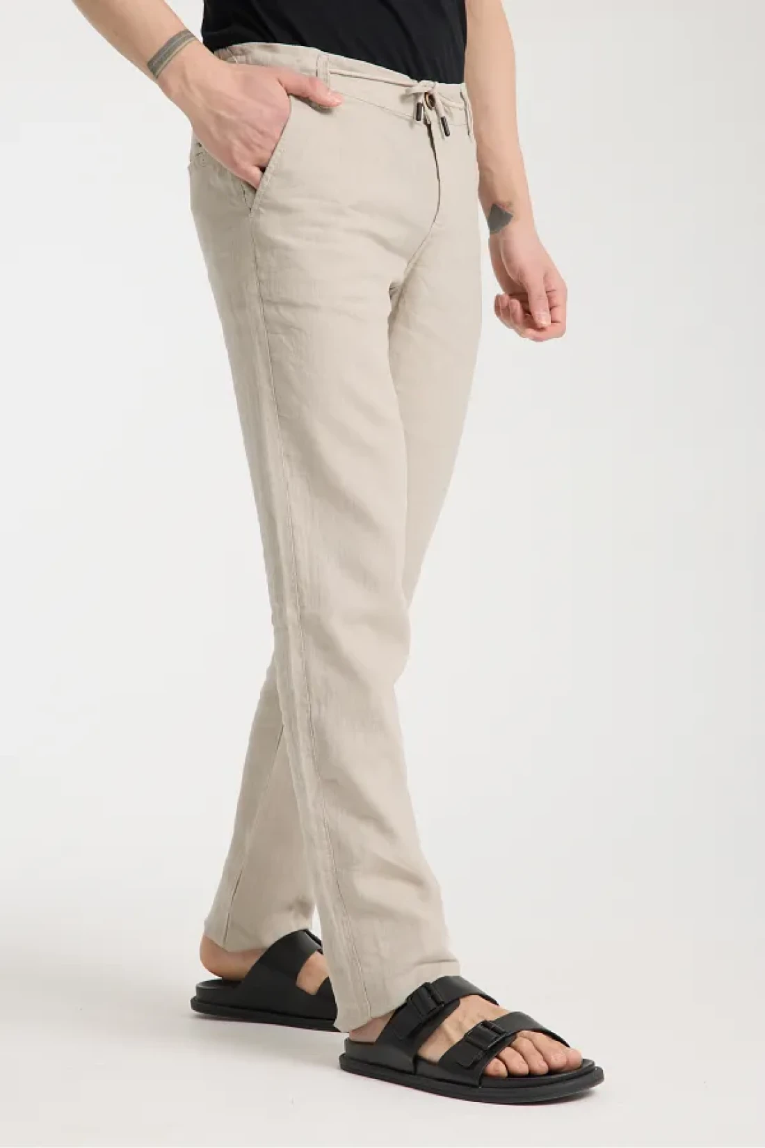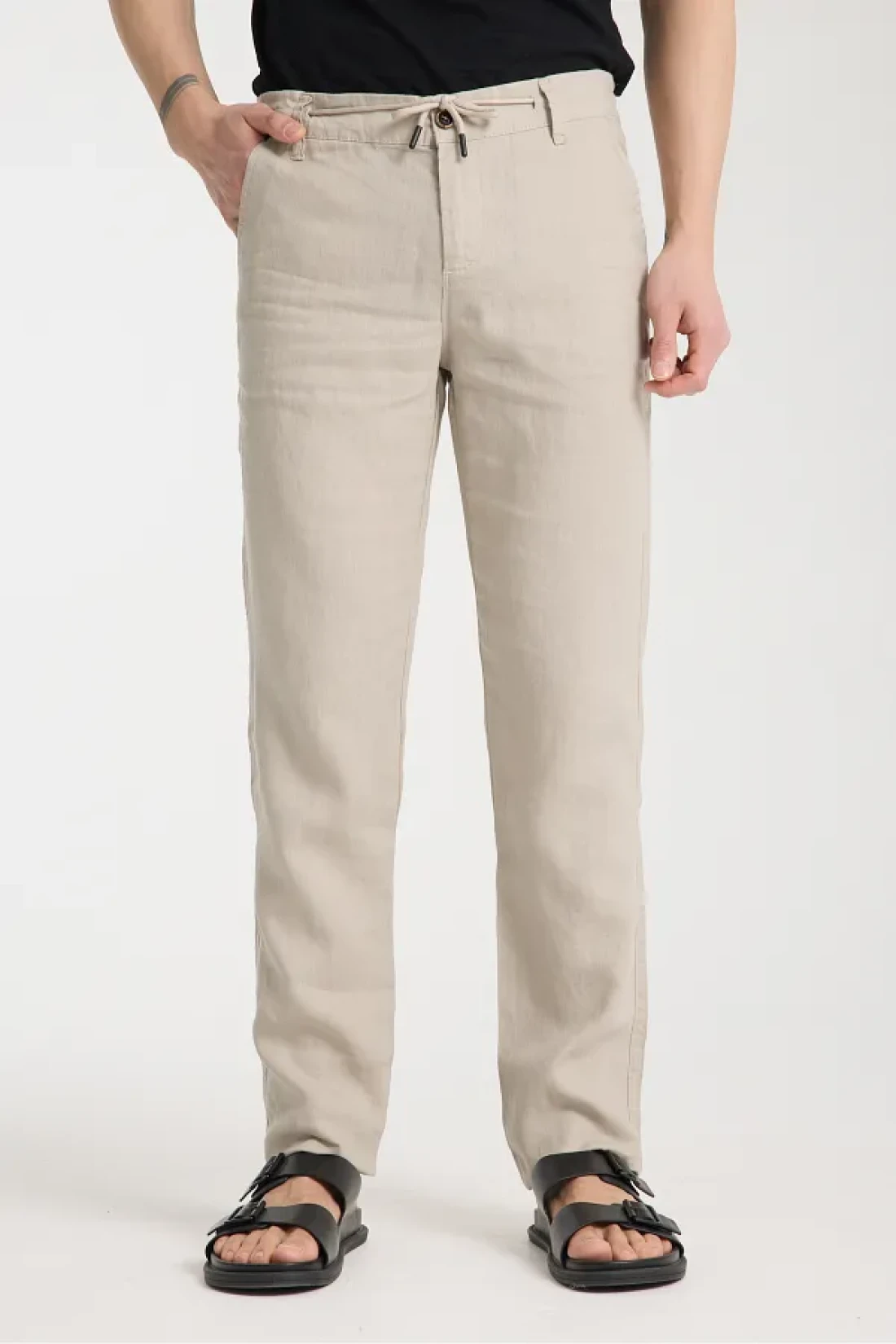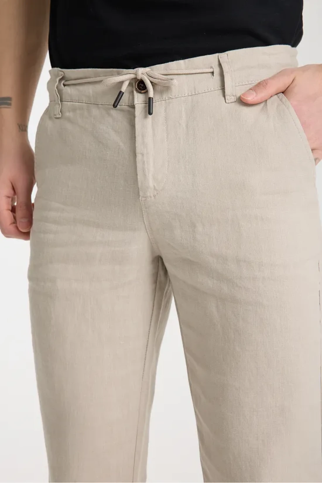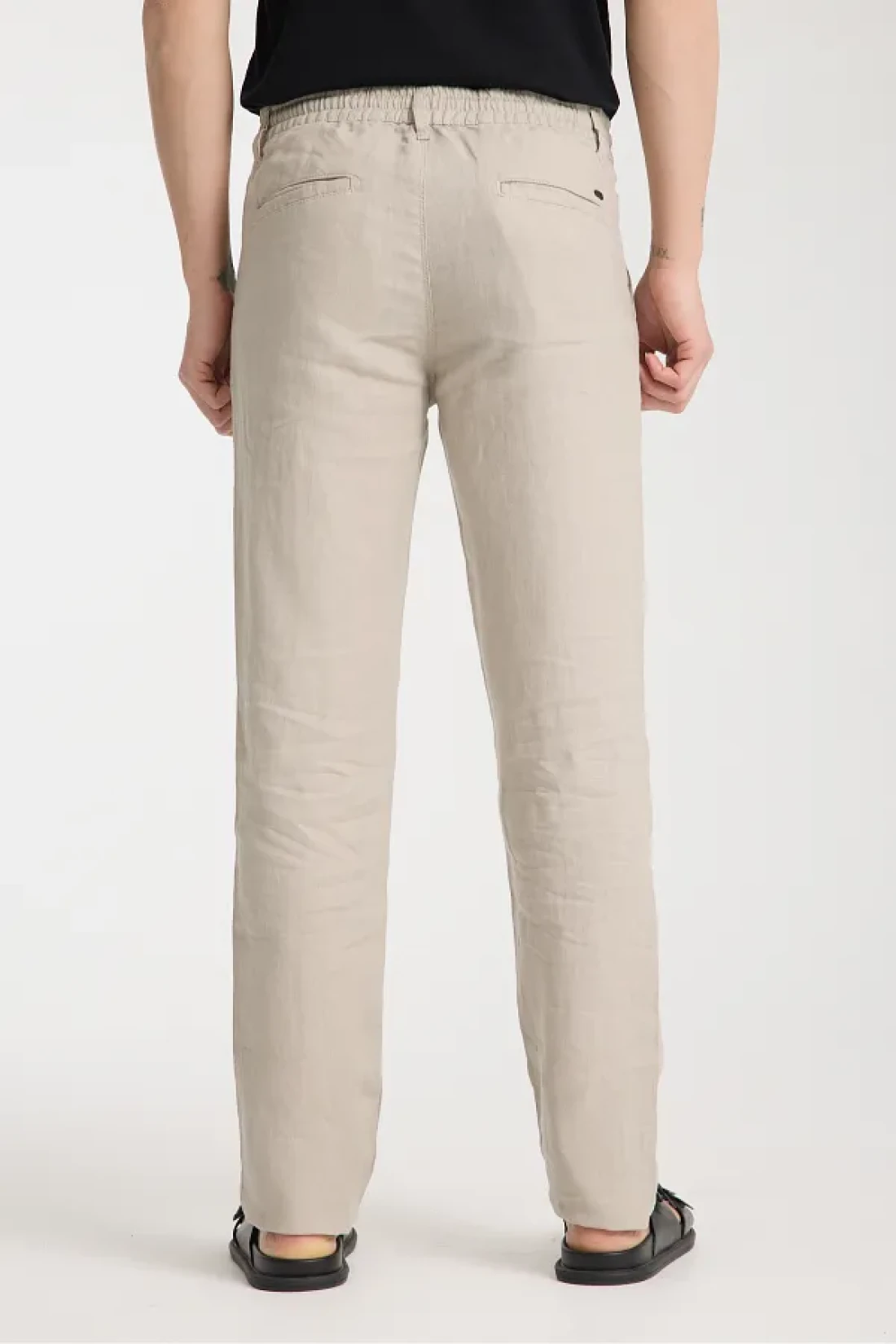 muzzo jeans Elastic Waist Cream 100% Linen Trousers