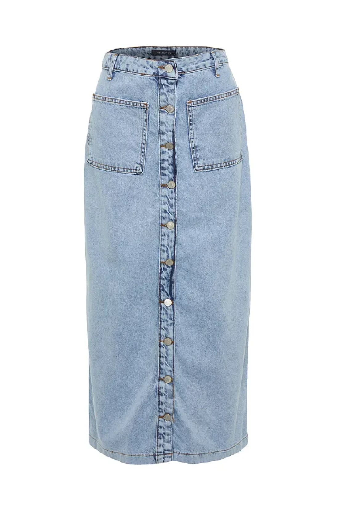 Collection High Waist Double Pocket Light Blue Maxi Denim Jeans Skirt - Tctss23Ee00002