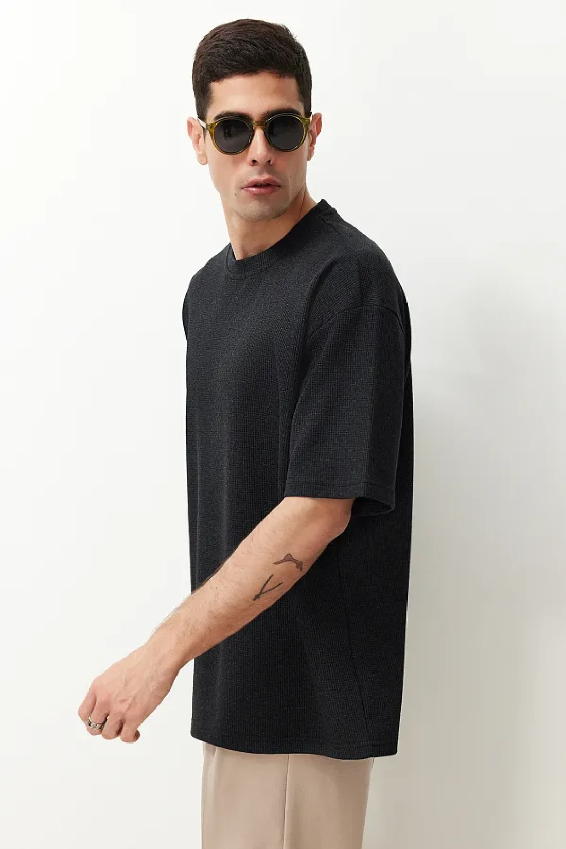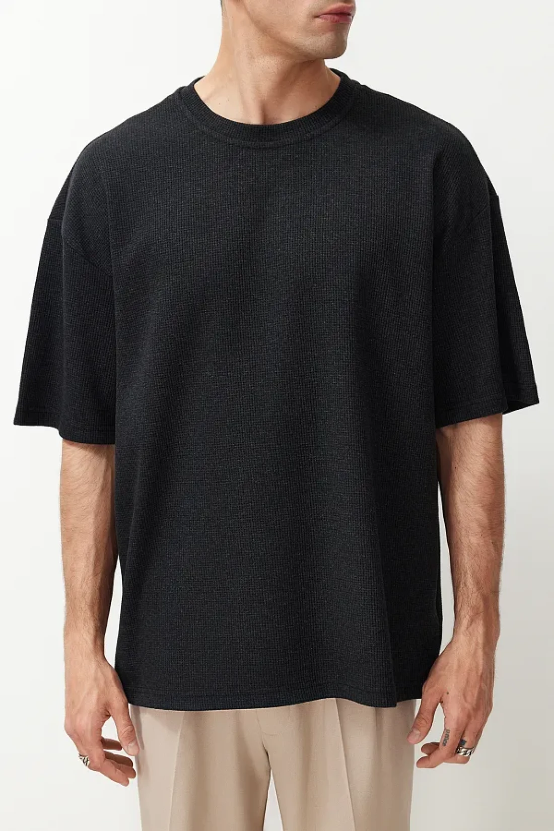 Collection Anthracite Oversize Textured Waffle T-Shirt Tmnss22Ts00049