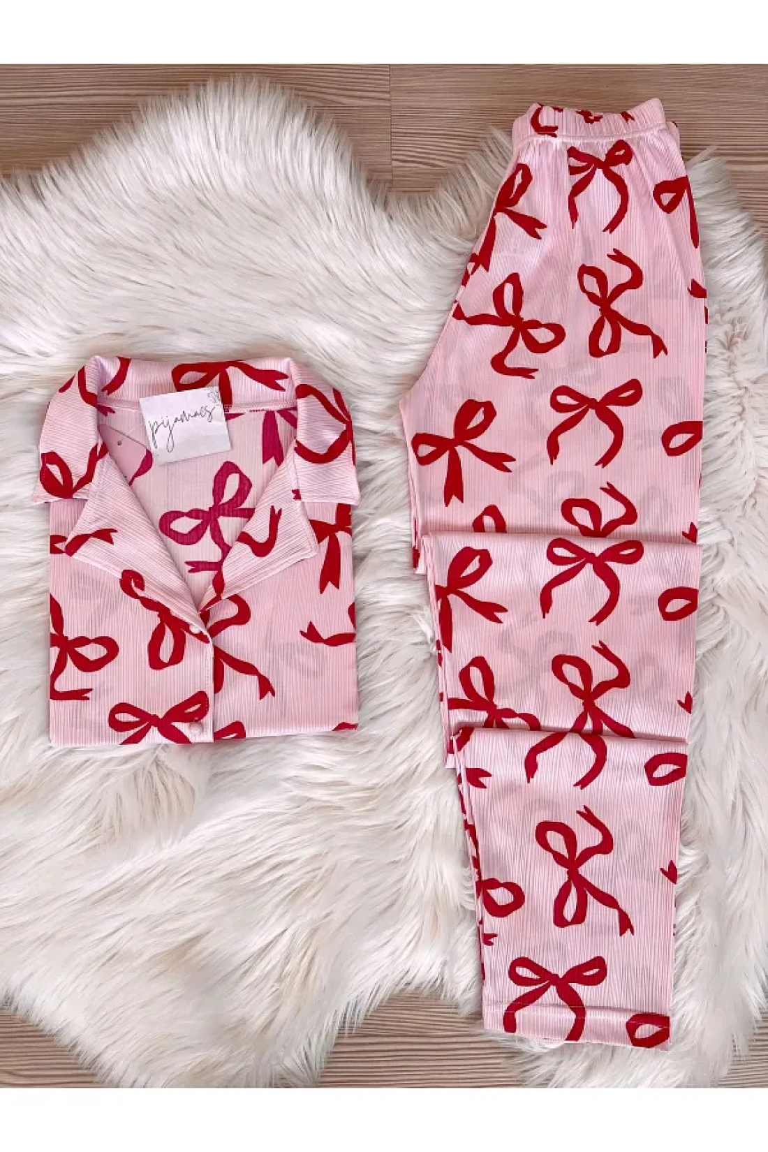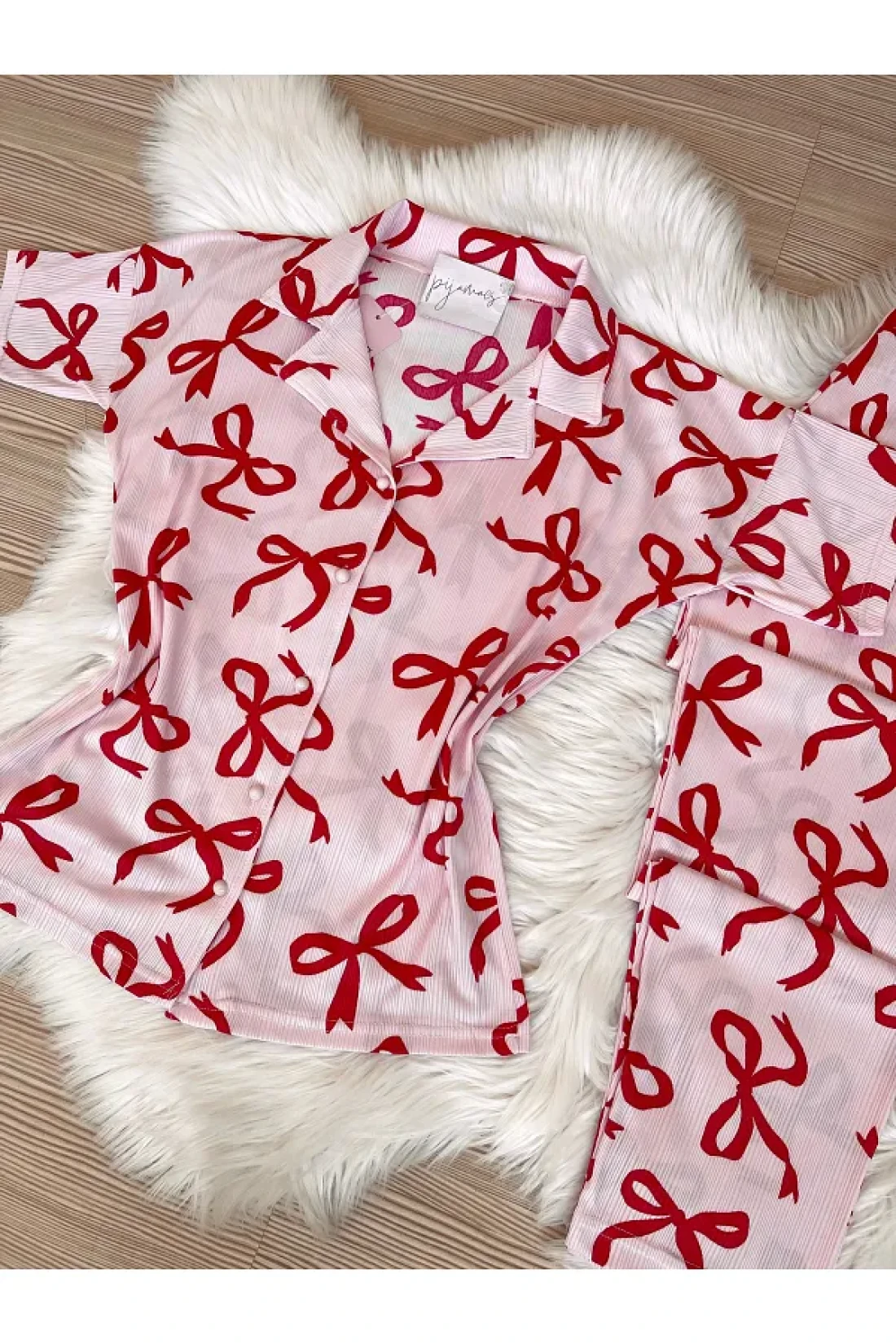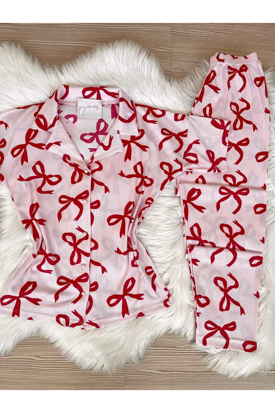 - bow-knot print short sleeve pajamas set that you can easily choose during the season and use in all seasons.