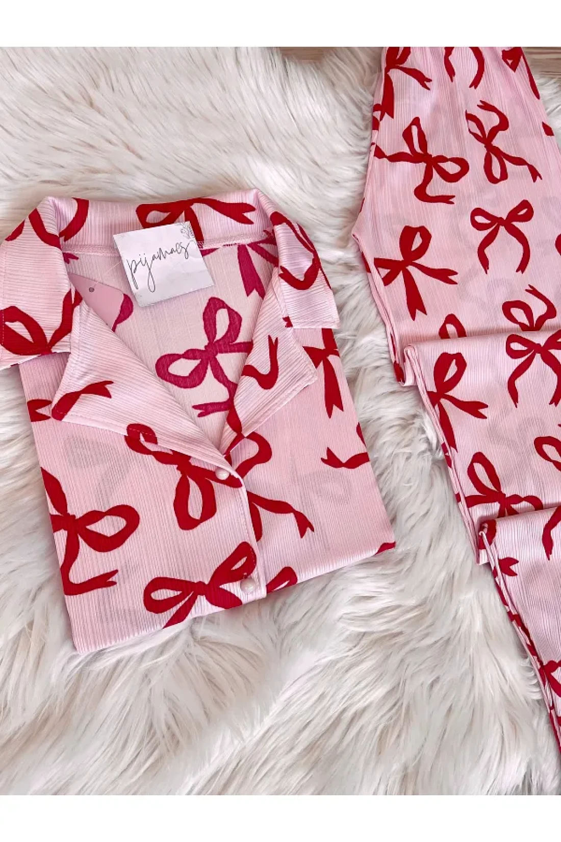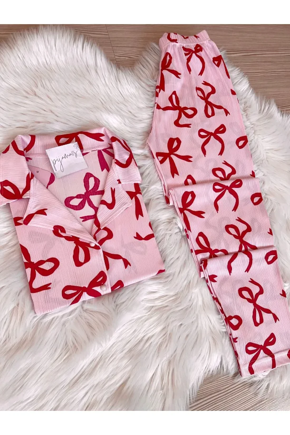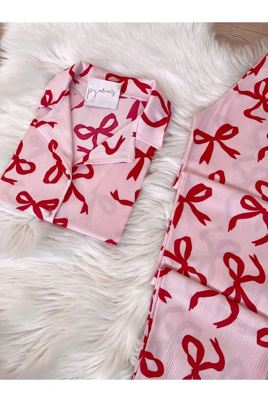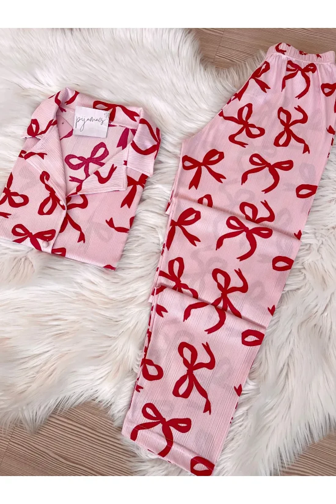 - bow-knot print short sleeve pajamas set that you can easily choose during the season and use in all seasons.