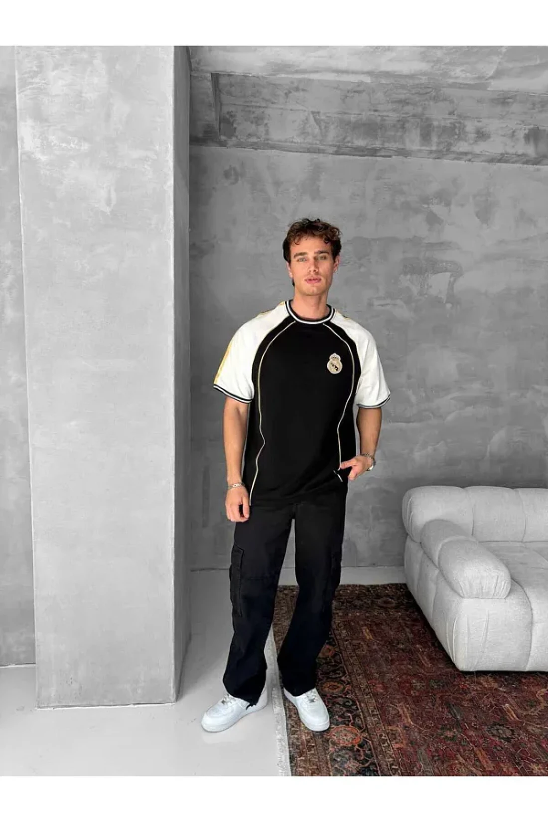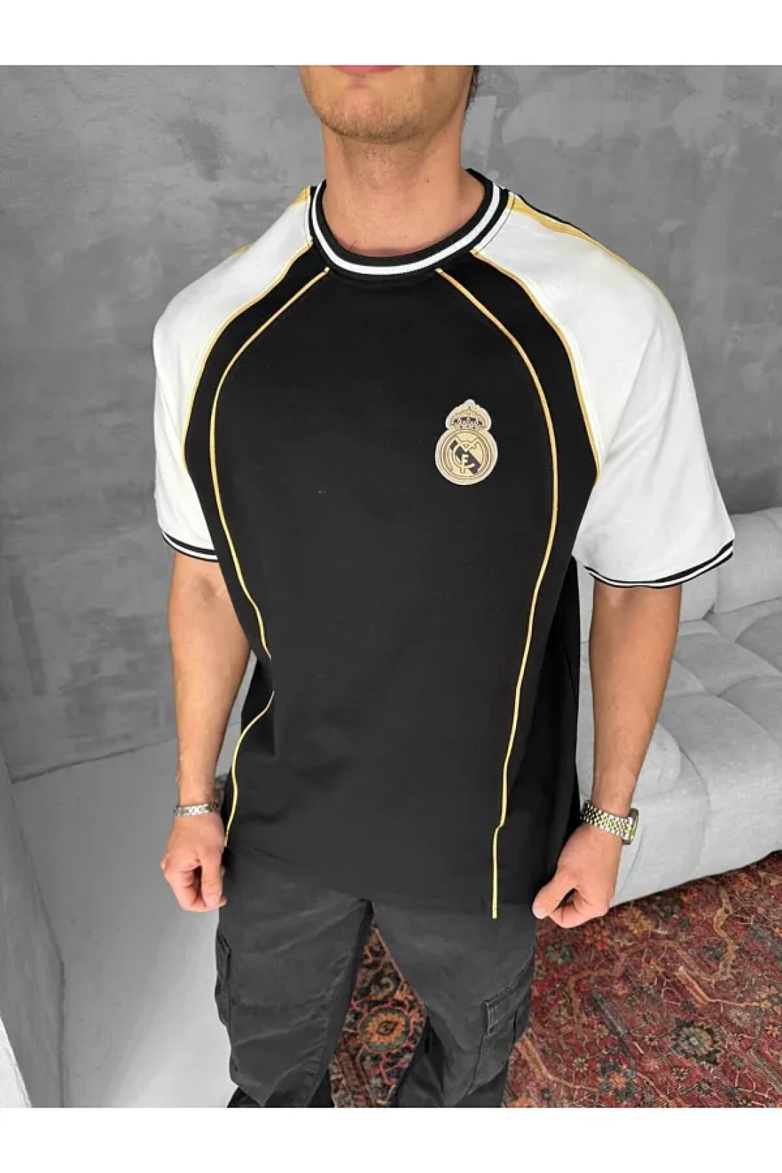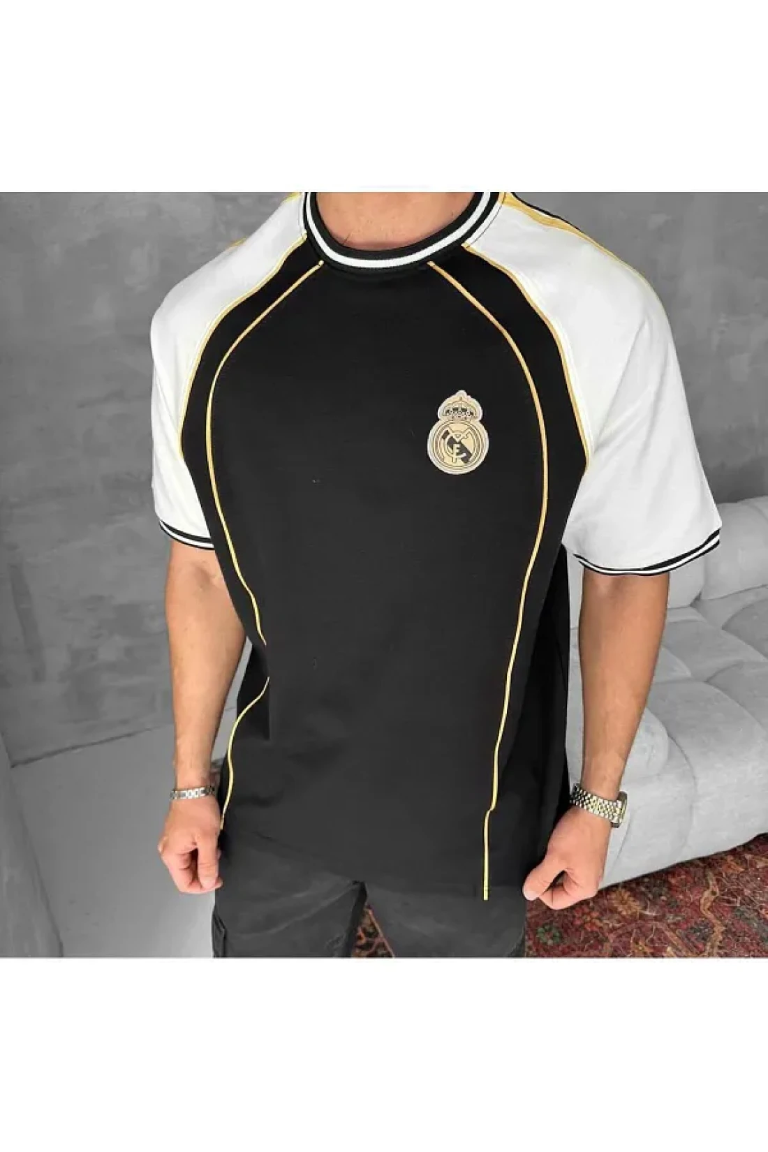 thus saving your time. This t-shirt, produced using mix embroidery technology, gives a modern and trendy look. The material, which consists of a mixture of 40% cotton, 40% polyester, and 20% elastane, is skin-friendly and provides flexibility.