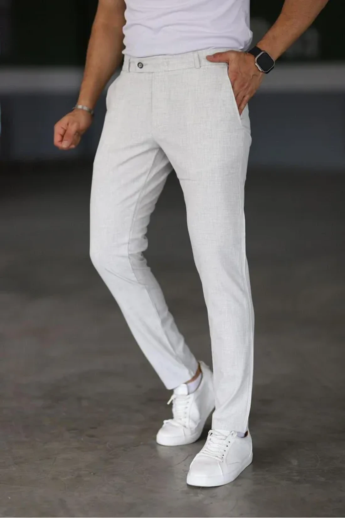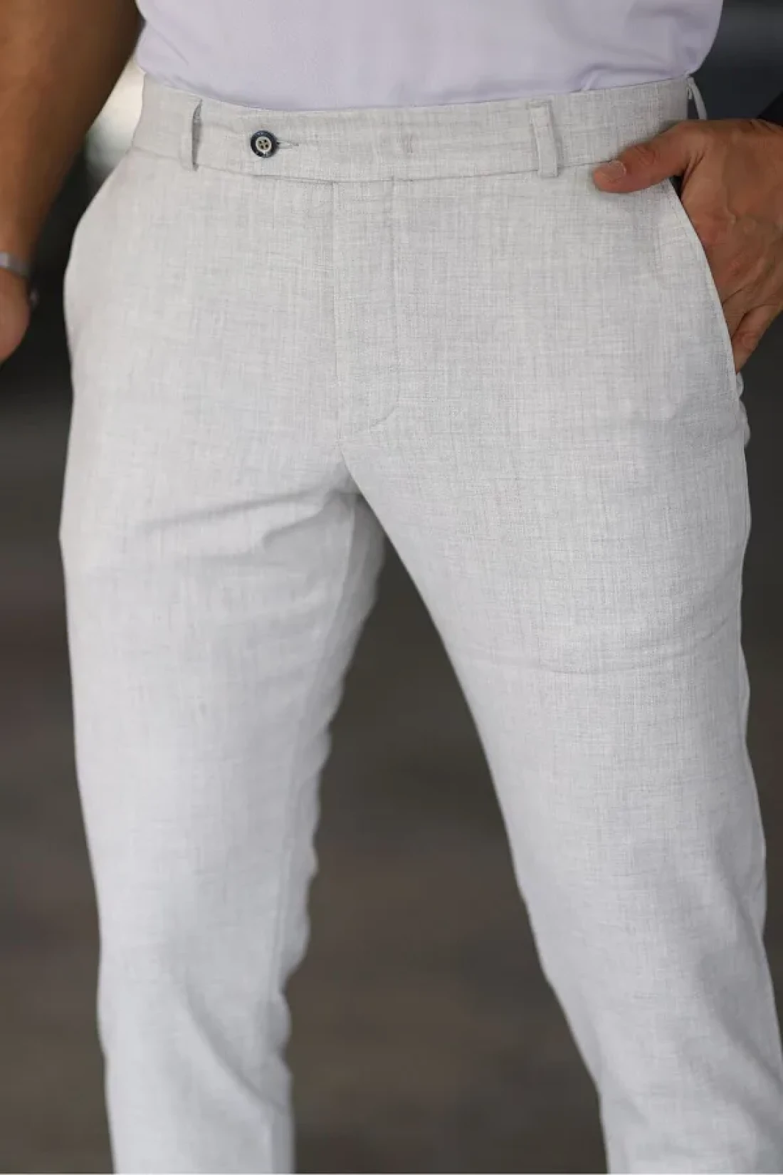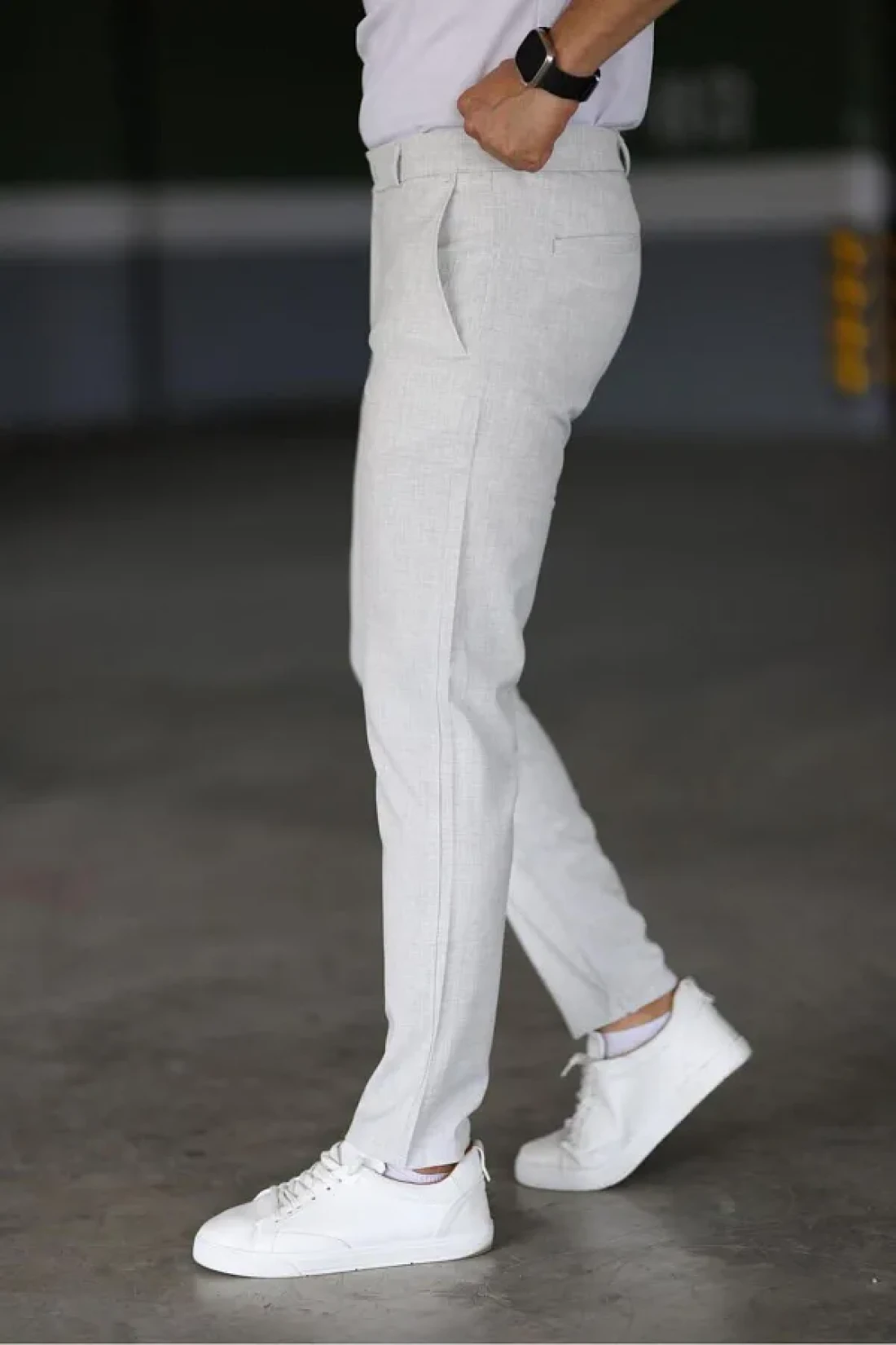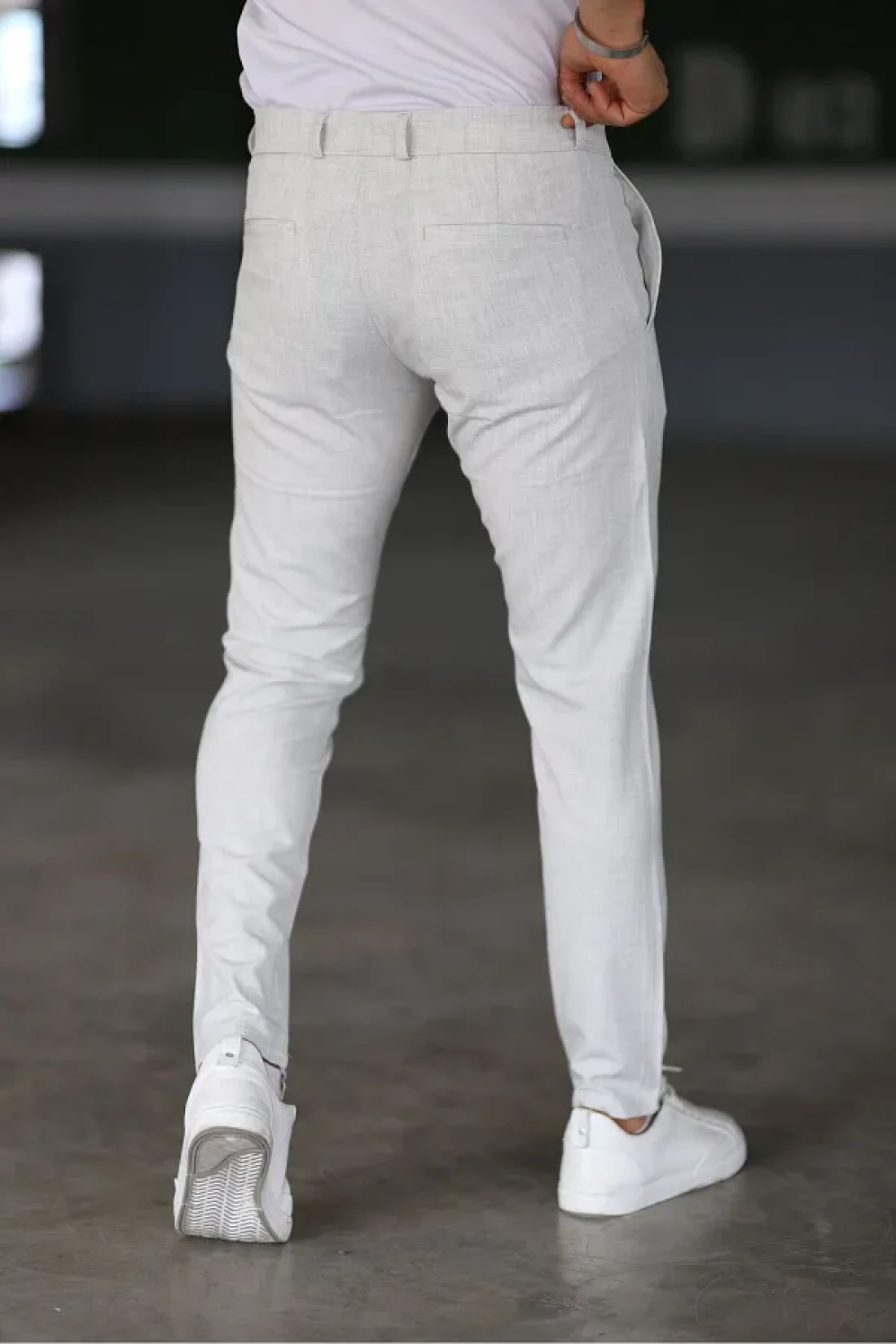 Bürke Men's Stone Color Italian Cut Quality Flexible Lycra Ankle Length Fabric Trousers