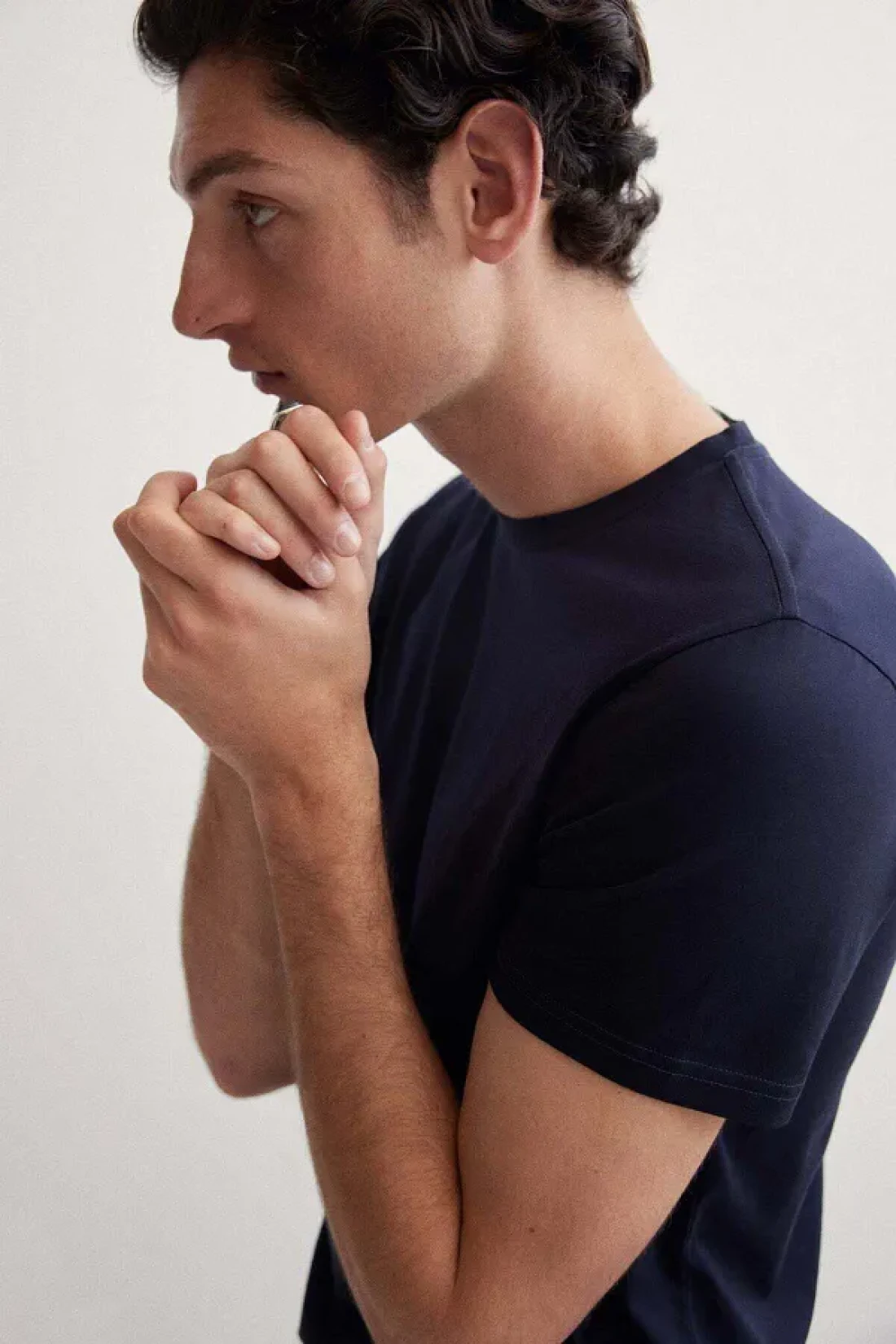 Round neckline with a finely-ribbed trim and a straight-cut hem.