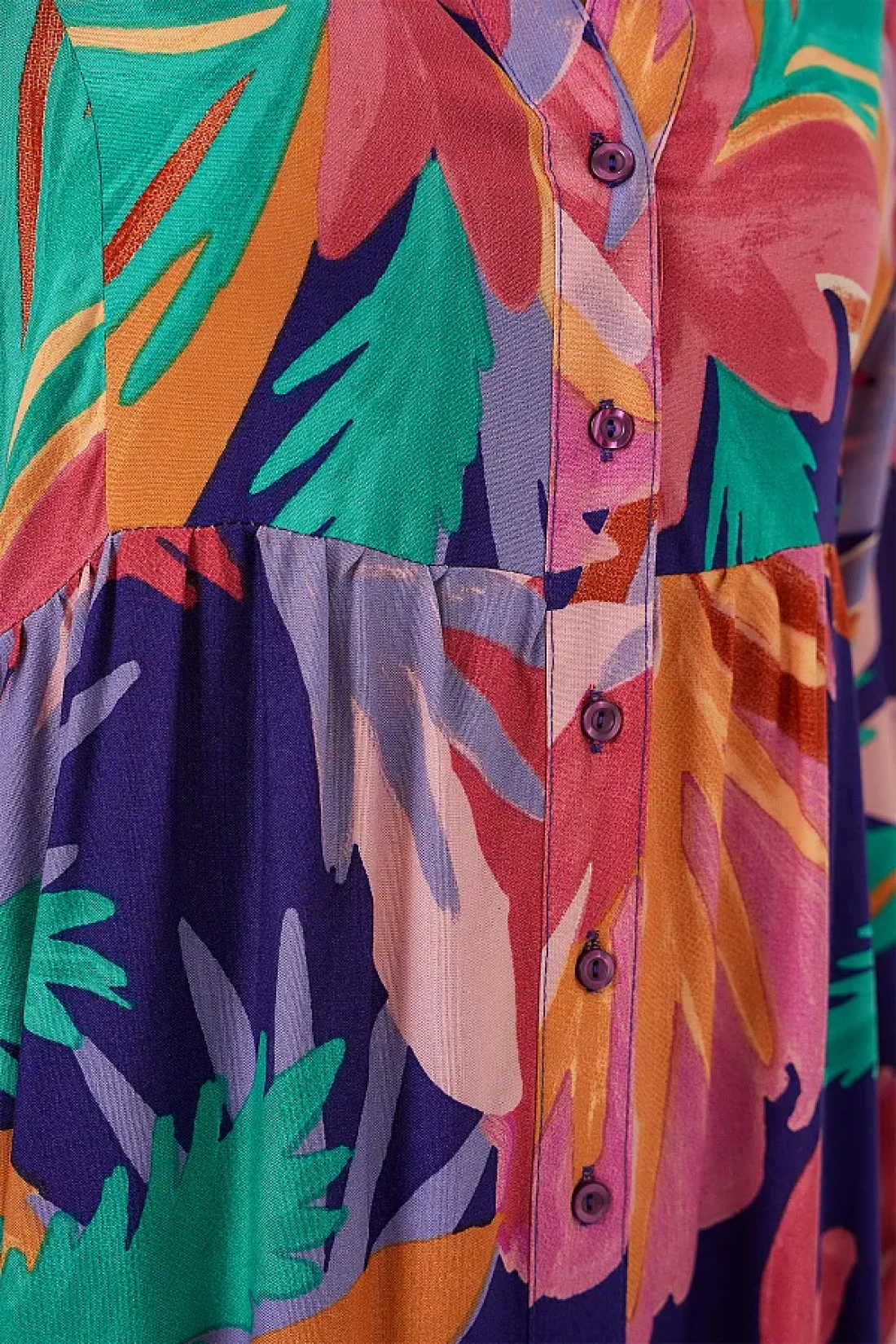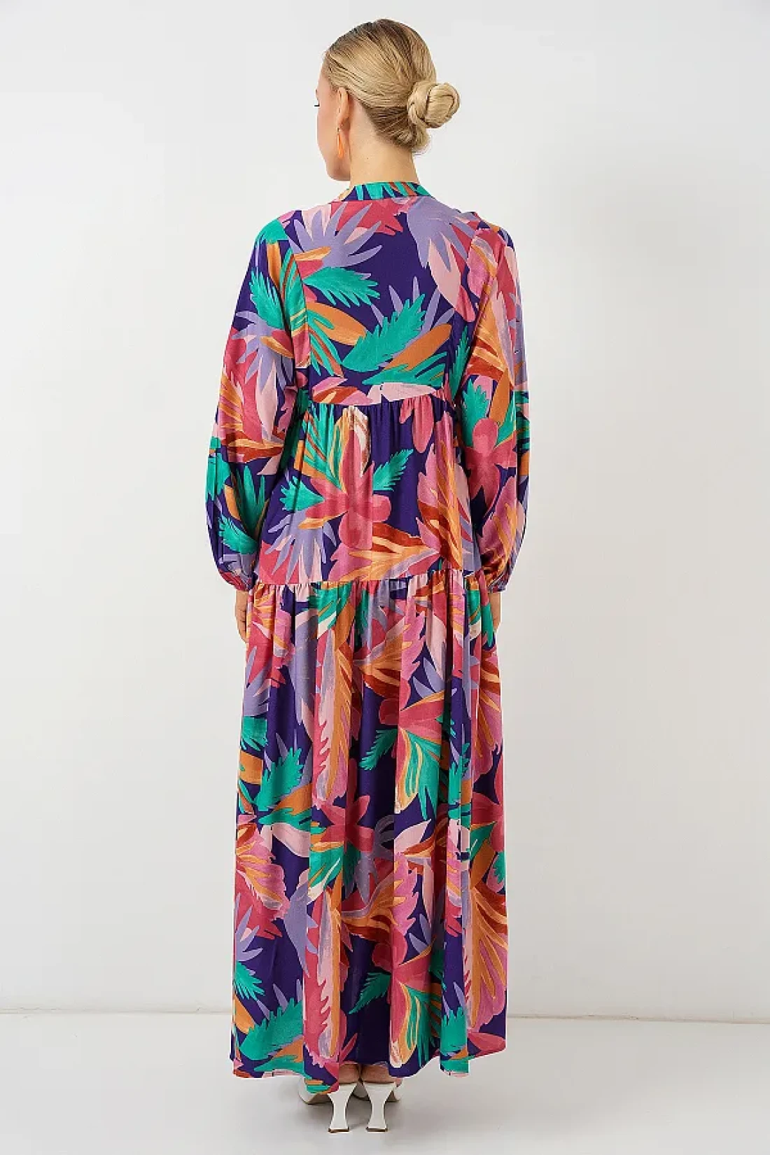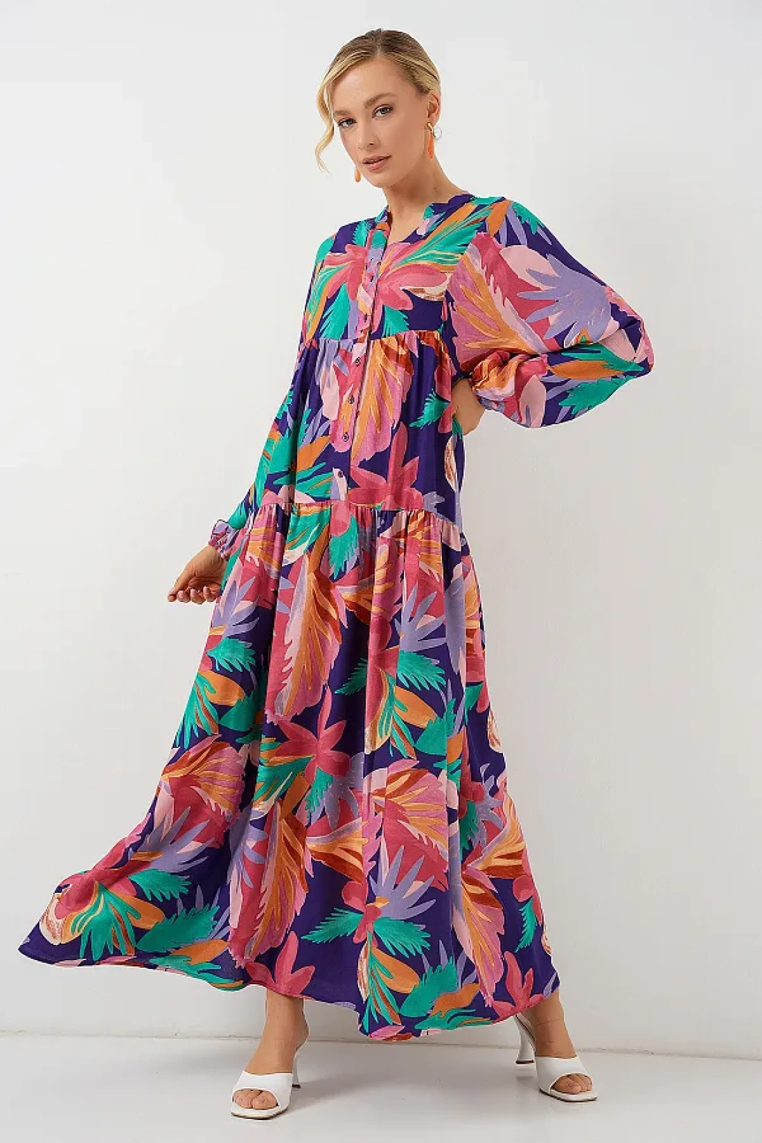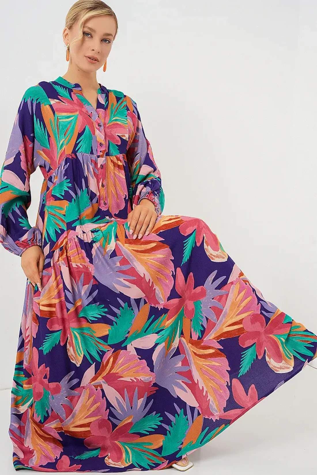 Product content % 100 viscose product features: authentic patterned dress model information size: 38 product length: 136 cm sleeve length: 60 cm our product is unlined. Model measurements: height: 176 chest: 90 waist: 63 hips: 94 general washing and usage instructions: do not exceed 30 c to avoid damaging the product during washing. wash the product according to the washing instructions. use appropriate detergent for colored products.