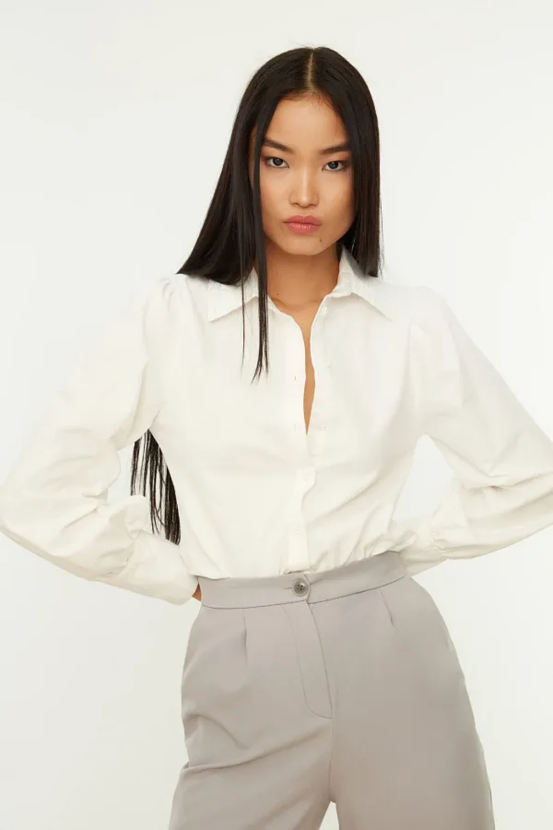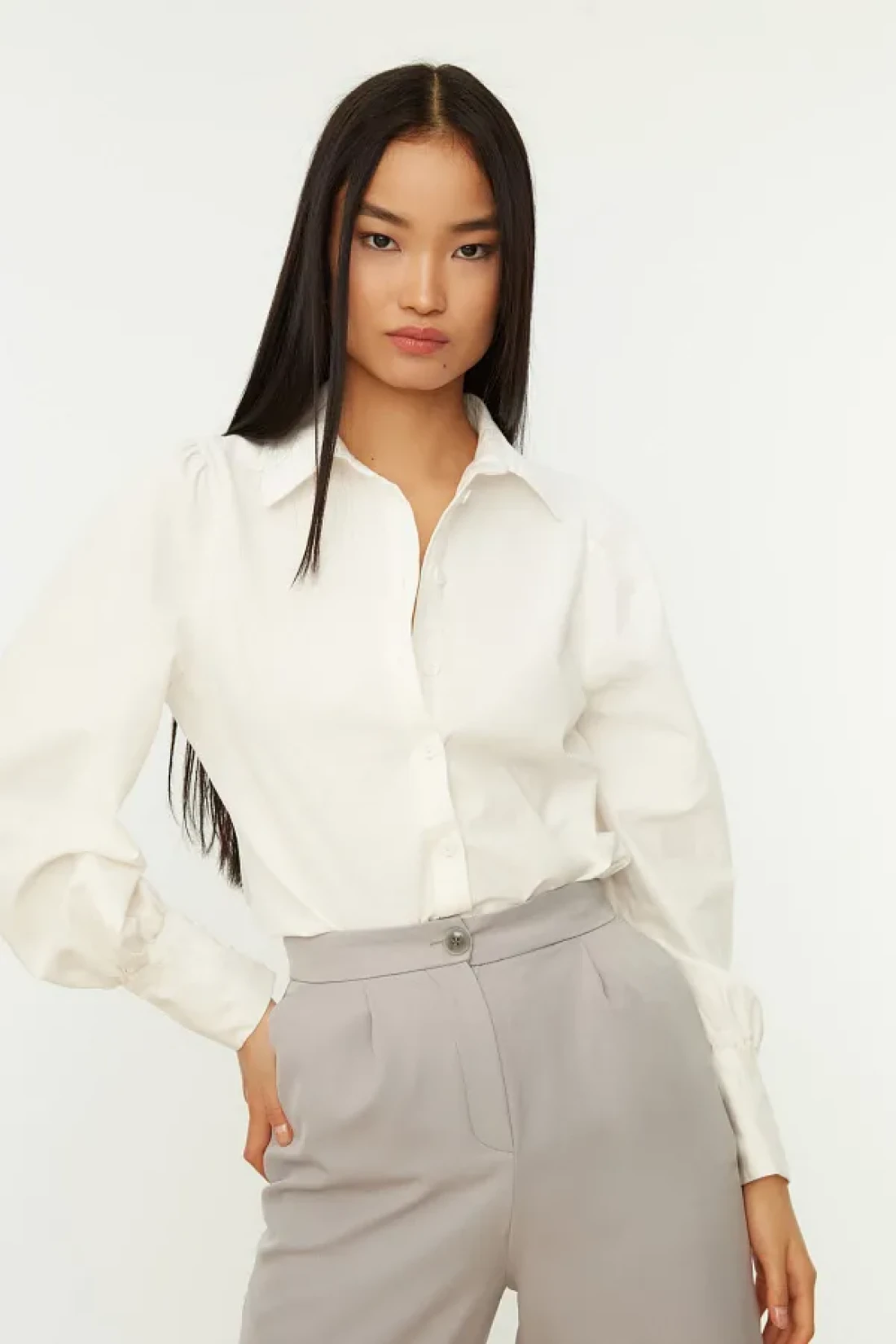 It offers a modern look with its long sleeves and balloon sleeve design. It is ideal for everyone with its wide range of uses that appeal to all age groups. Fabric structure that keeps you cool and comfortable in summer Gives a stylish and professional look, suitable for business settings
