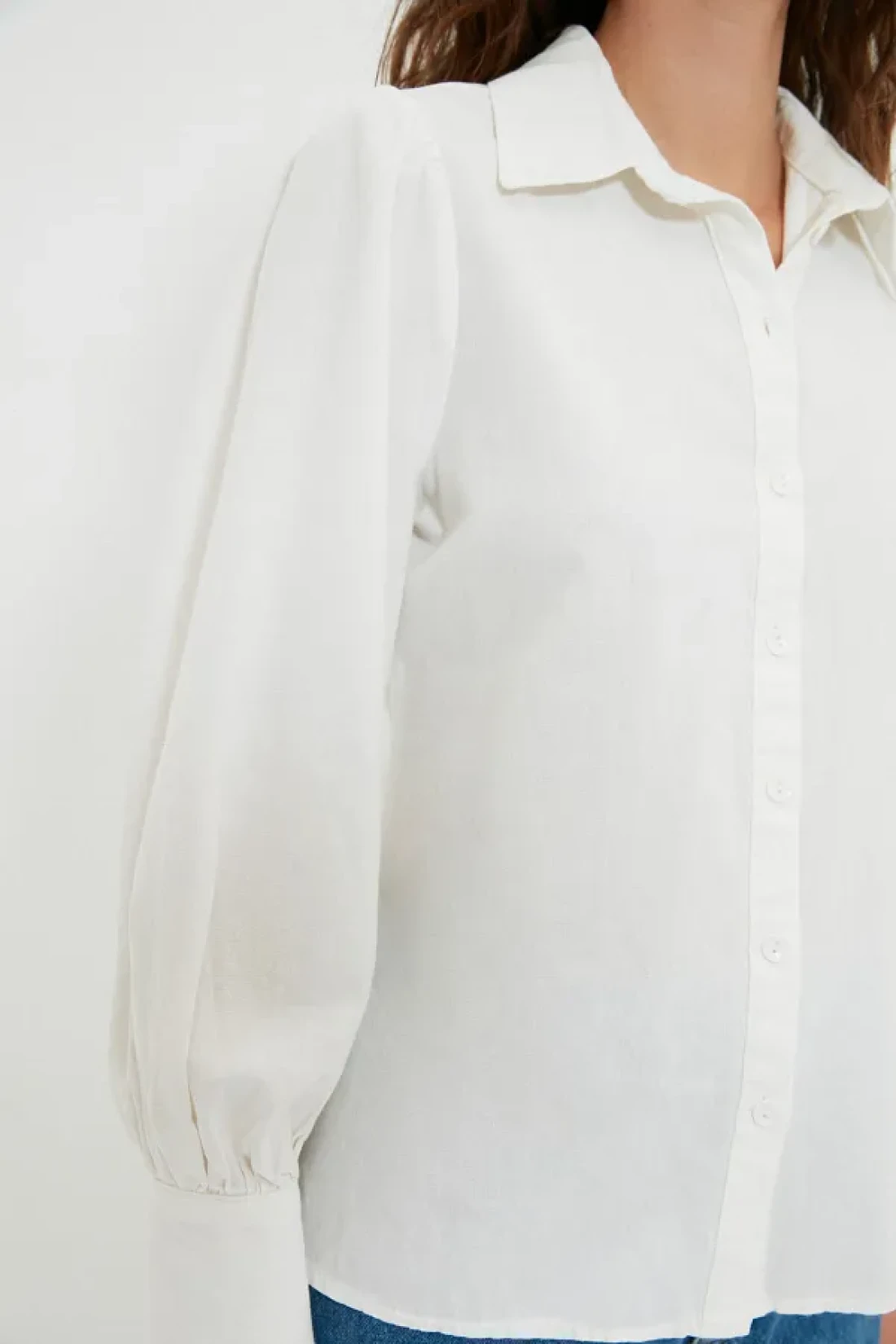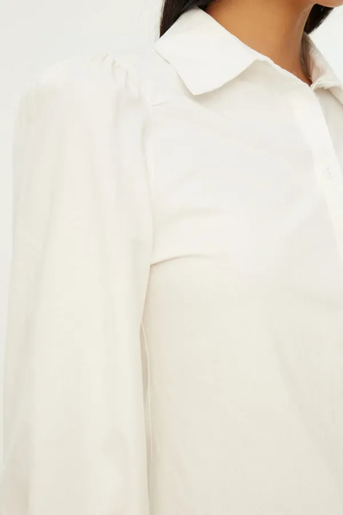 Collection White Balloon Sleeve Cotton Regular Regular Fit Woven Shirt Twoss20Go0065