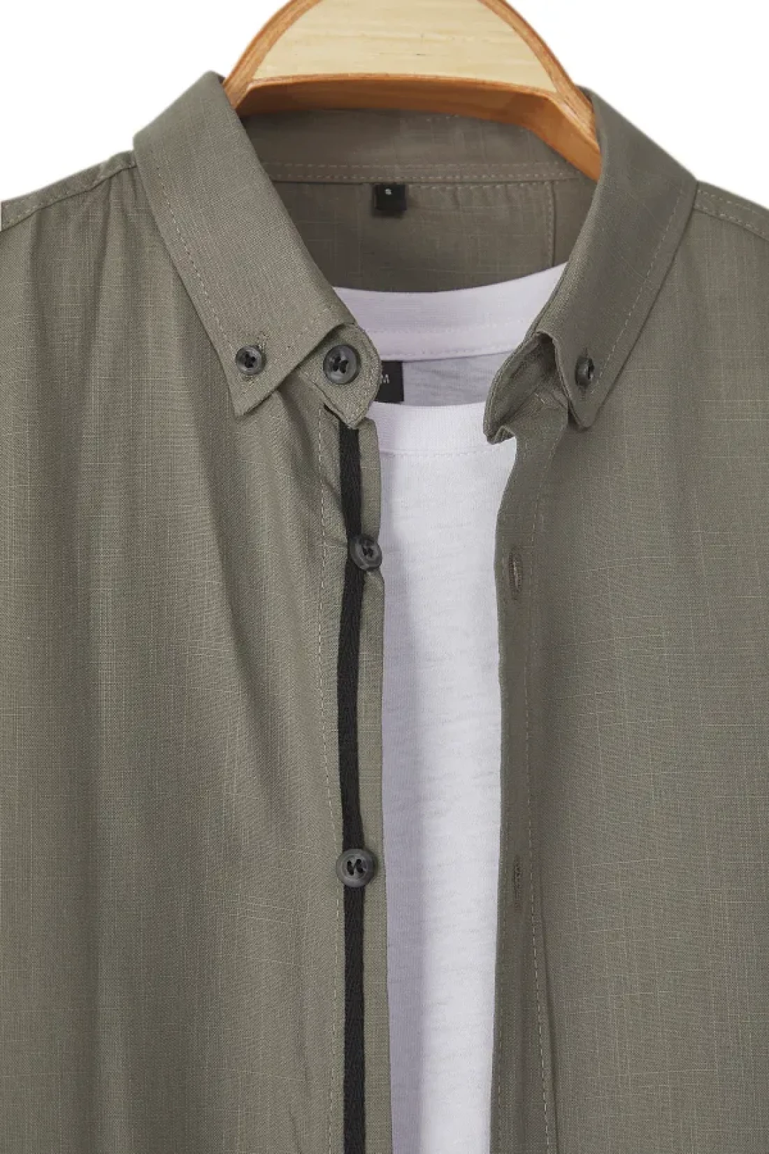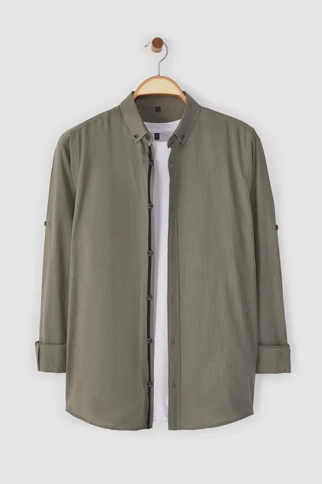 Collection Dark Button Collar Epaulette Slim Fit Long Sleeve 100% Cotton Linen Look Shirt Tmnss20Go0189