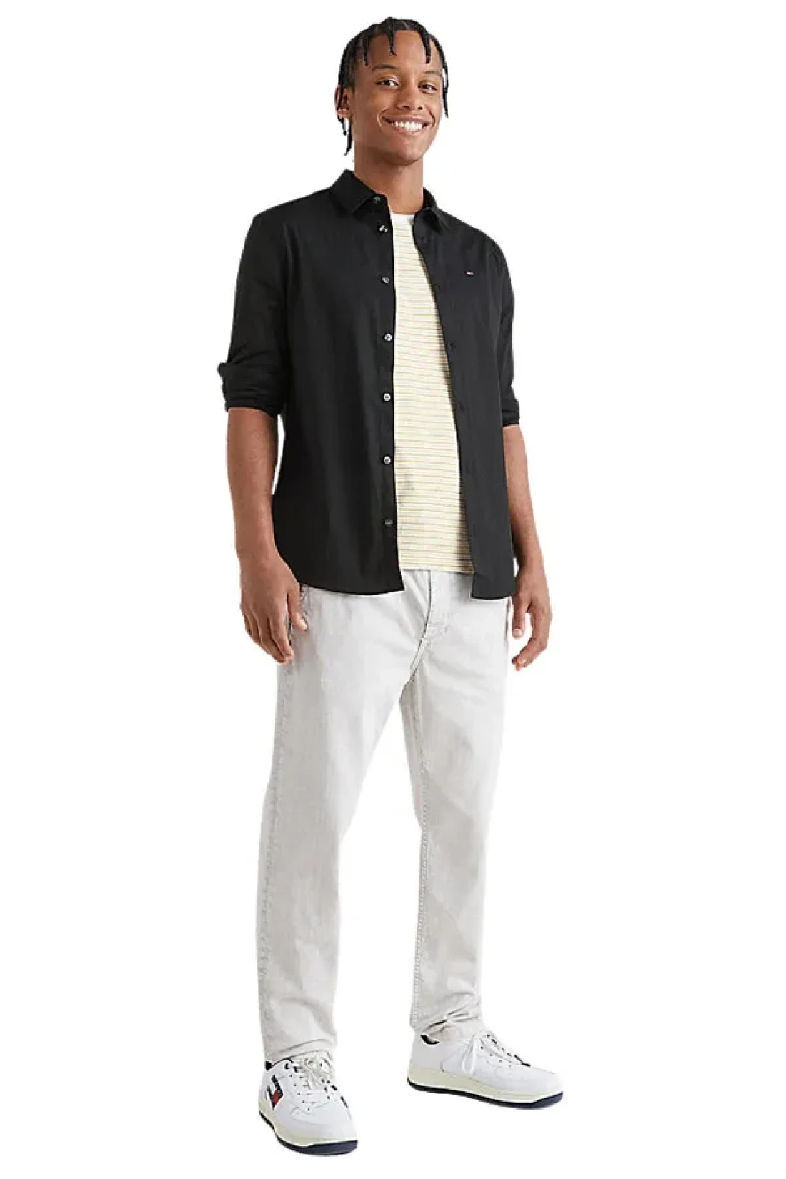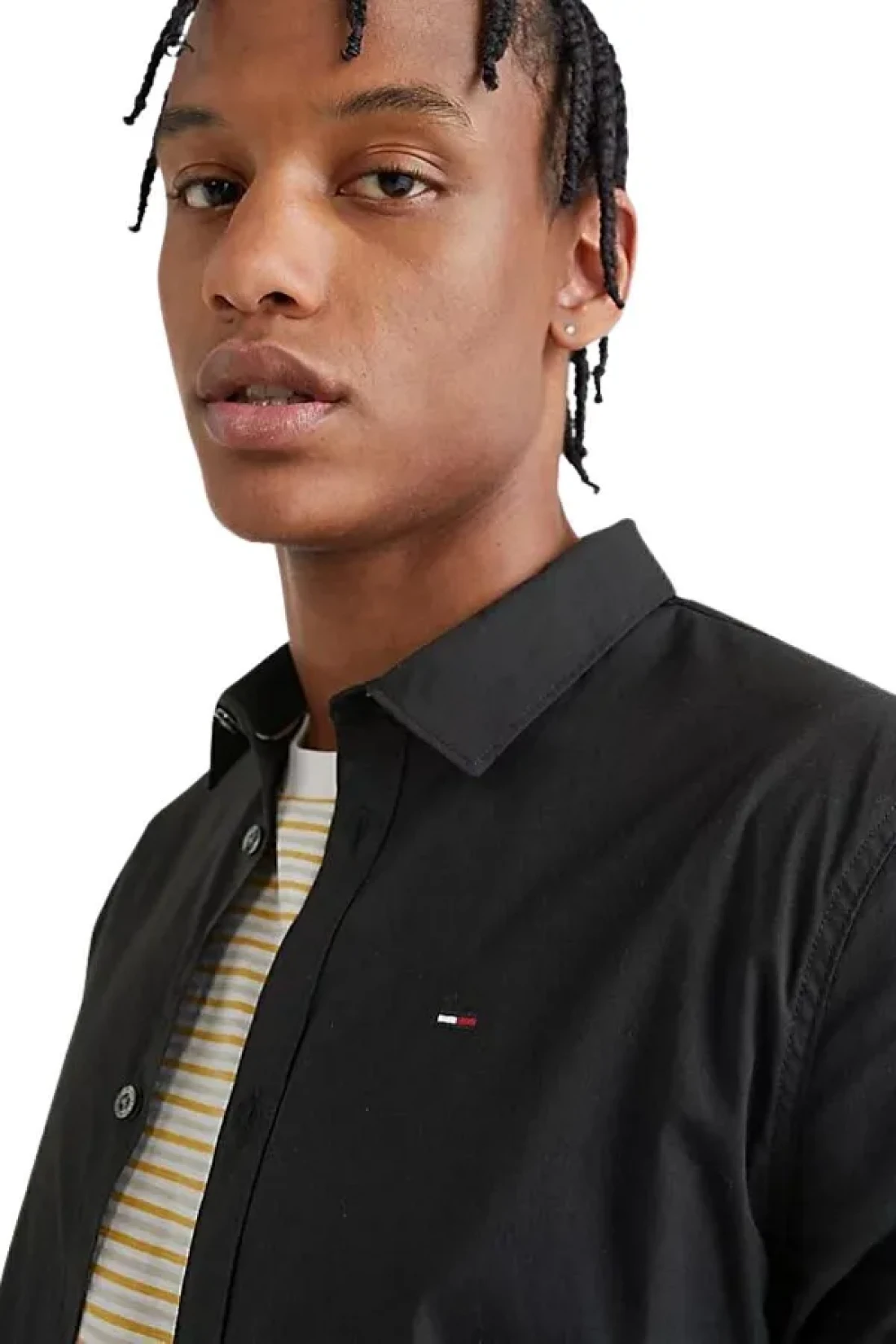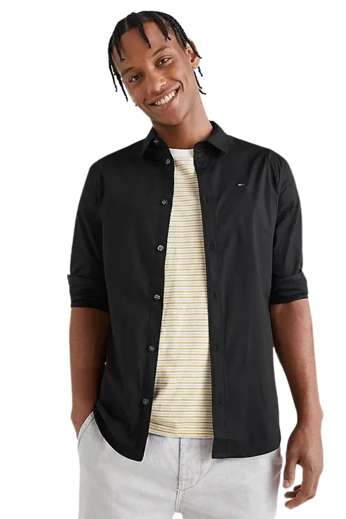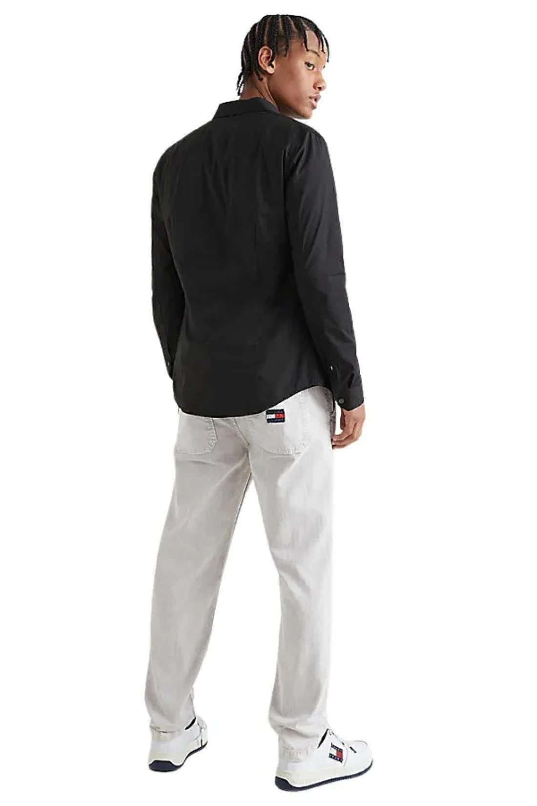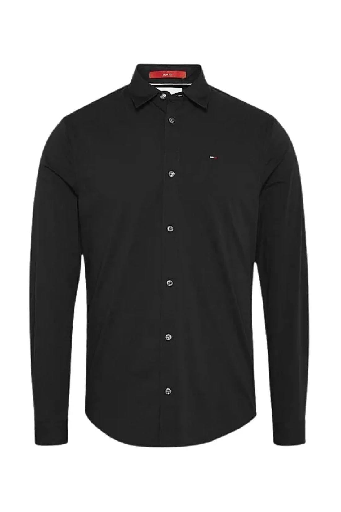 black shirt for men, stretch cotton shirt, Slim Fit shirt, semi-fitted collar shirt, tommy jeans shirt, poplin shirt, casual shirt, work shirt, modern design shirt, stylish men's shirt