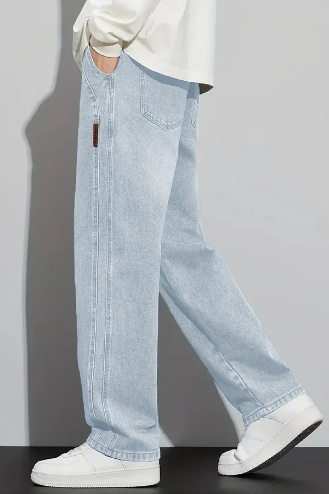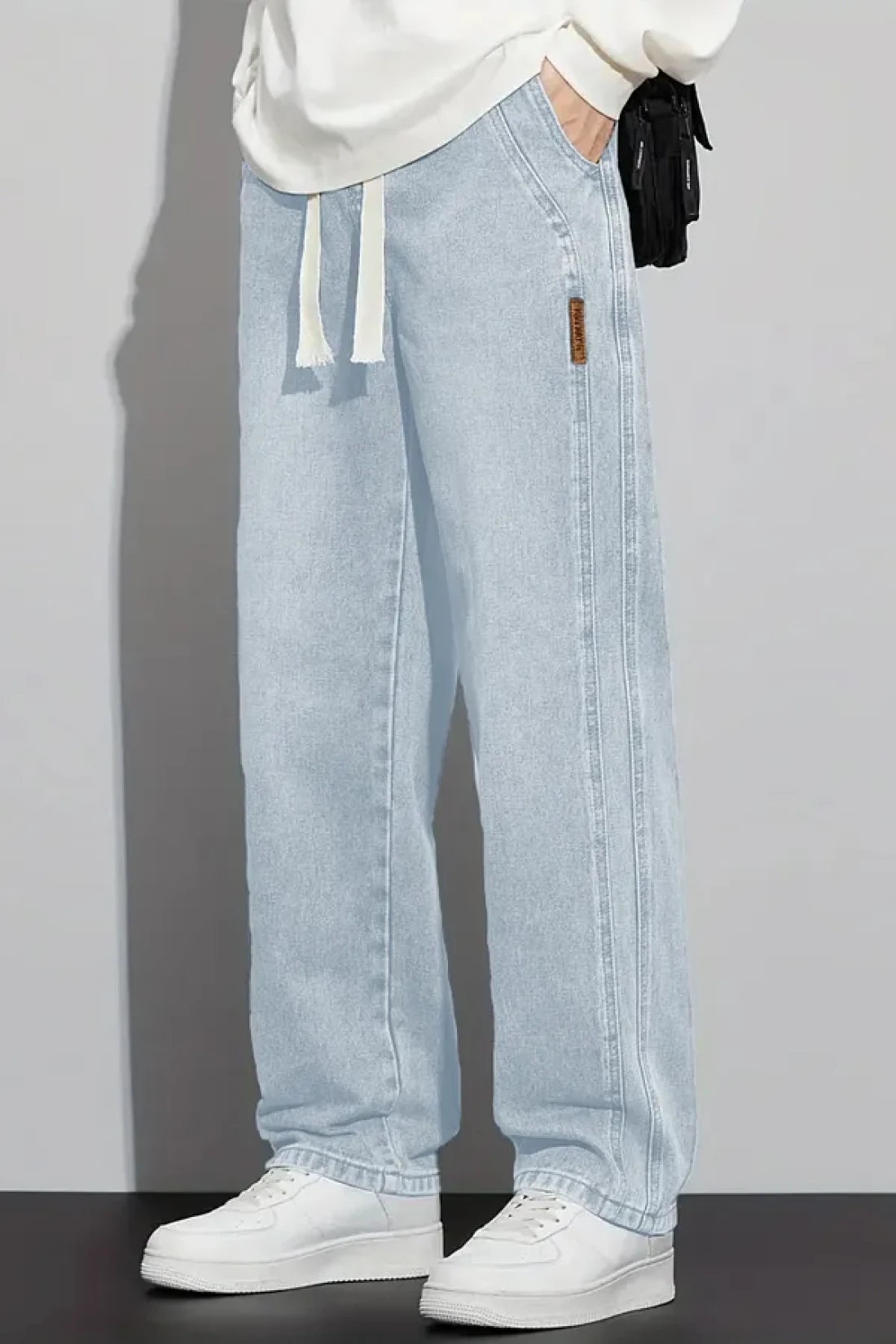THE RULE Men's Light Blue Baggy Elastic Waist Lycra Straight Leg Loose Fitting Stretchy Jean Denim Jeans Pants Rf0484