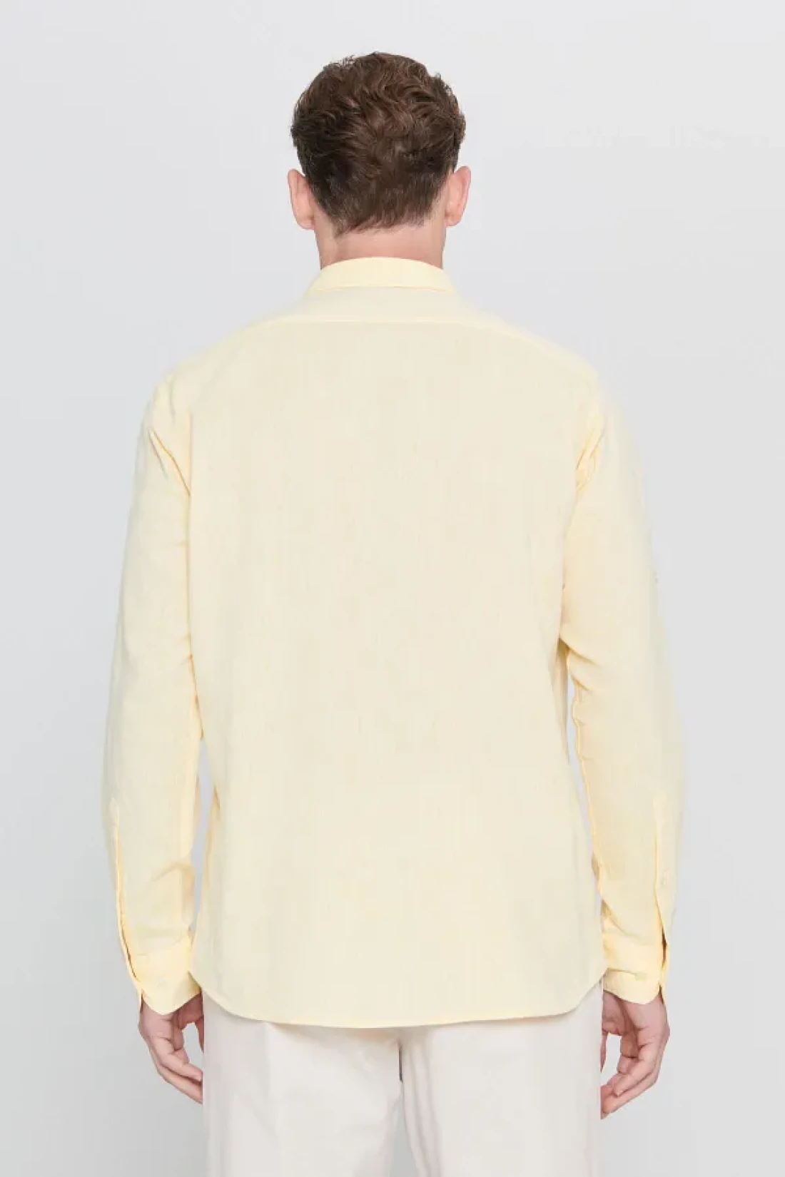 AC&Co / Altınyıldız Classics Yellow Linen Comfort Fit Men's Shirt - Relaxed Fit, Buttoned Collar