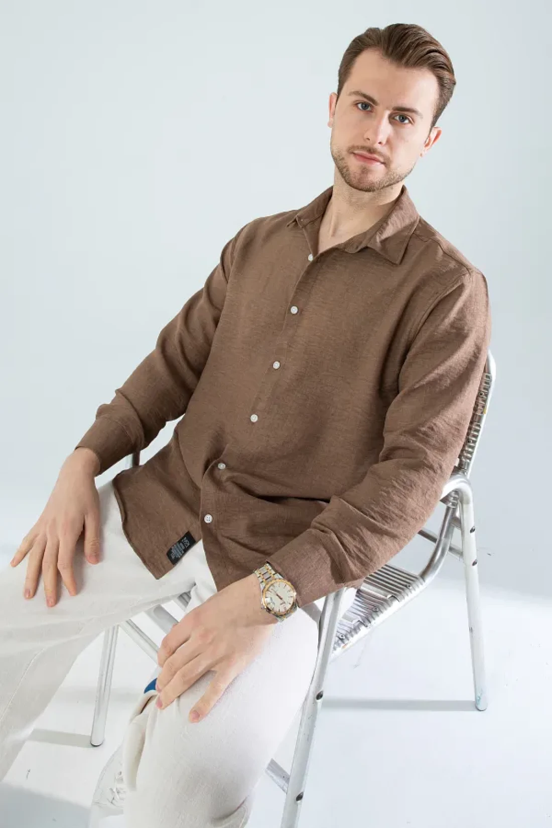 Seasonal linen textured long sleeve oversize men's wide fit shirt