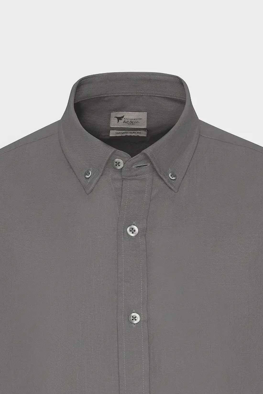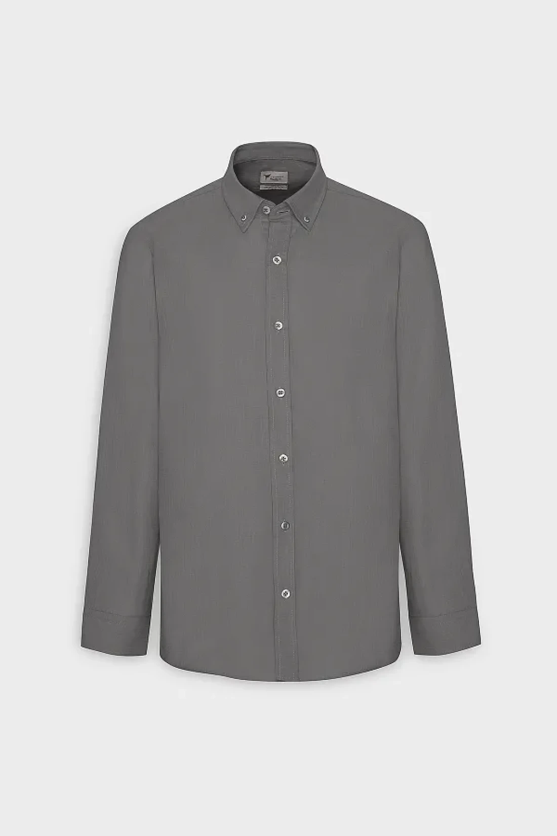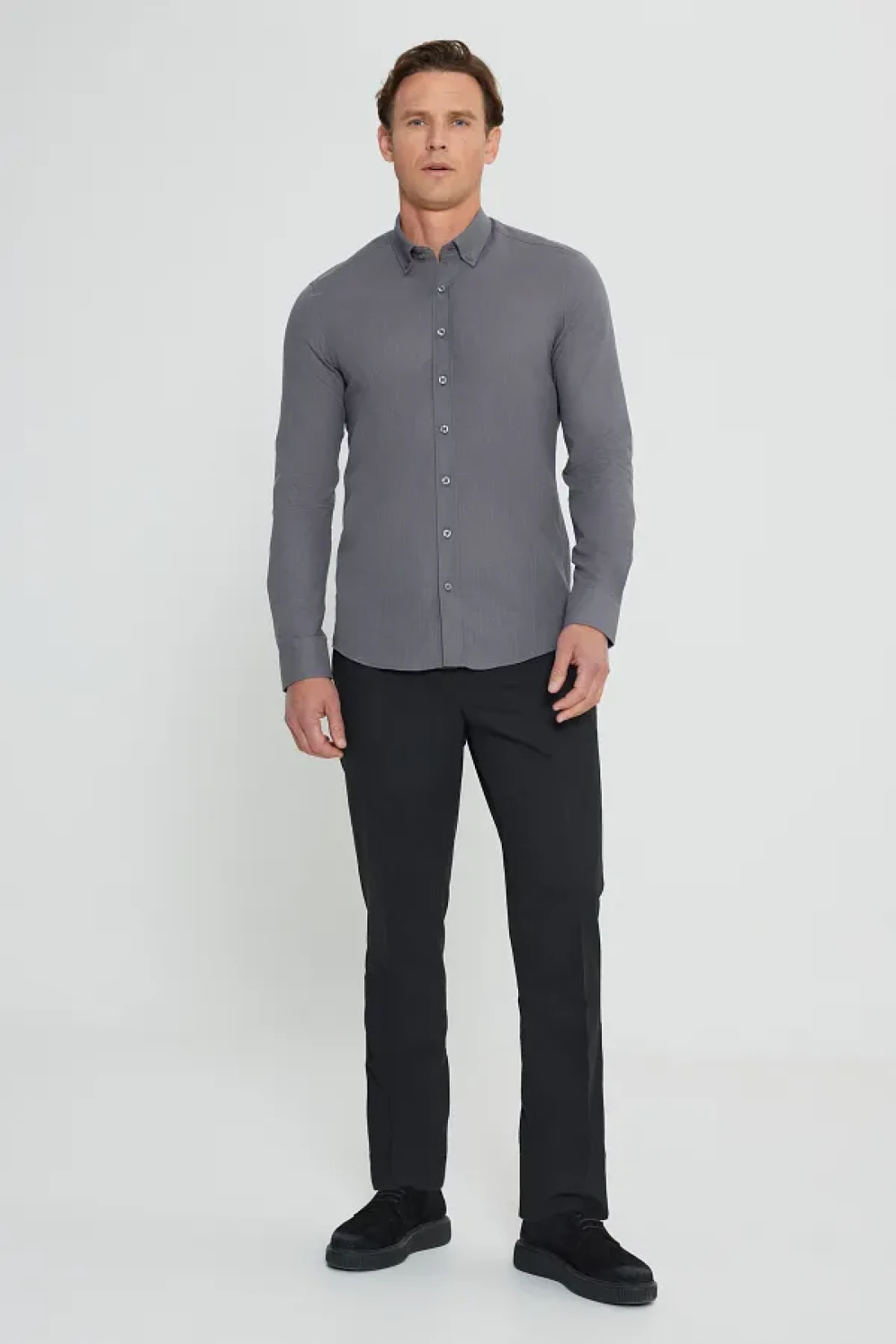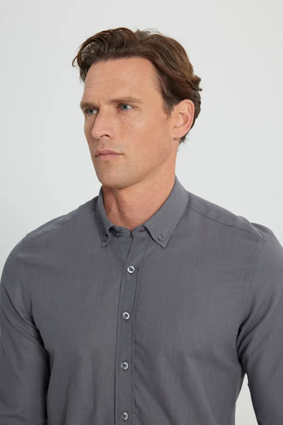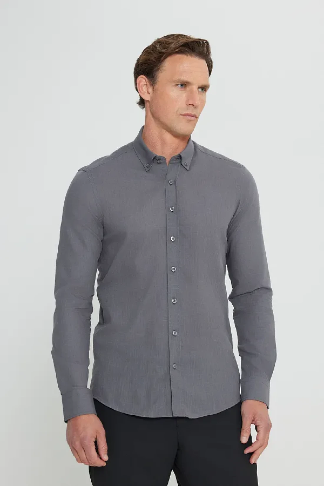 AC&Co / Altınyıldız Classics Men's Anthracite 100% Cotton Oxford Slim Fit Buttoned Collar Flamed Shirt