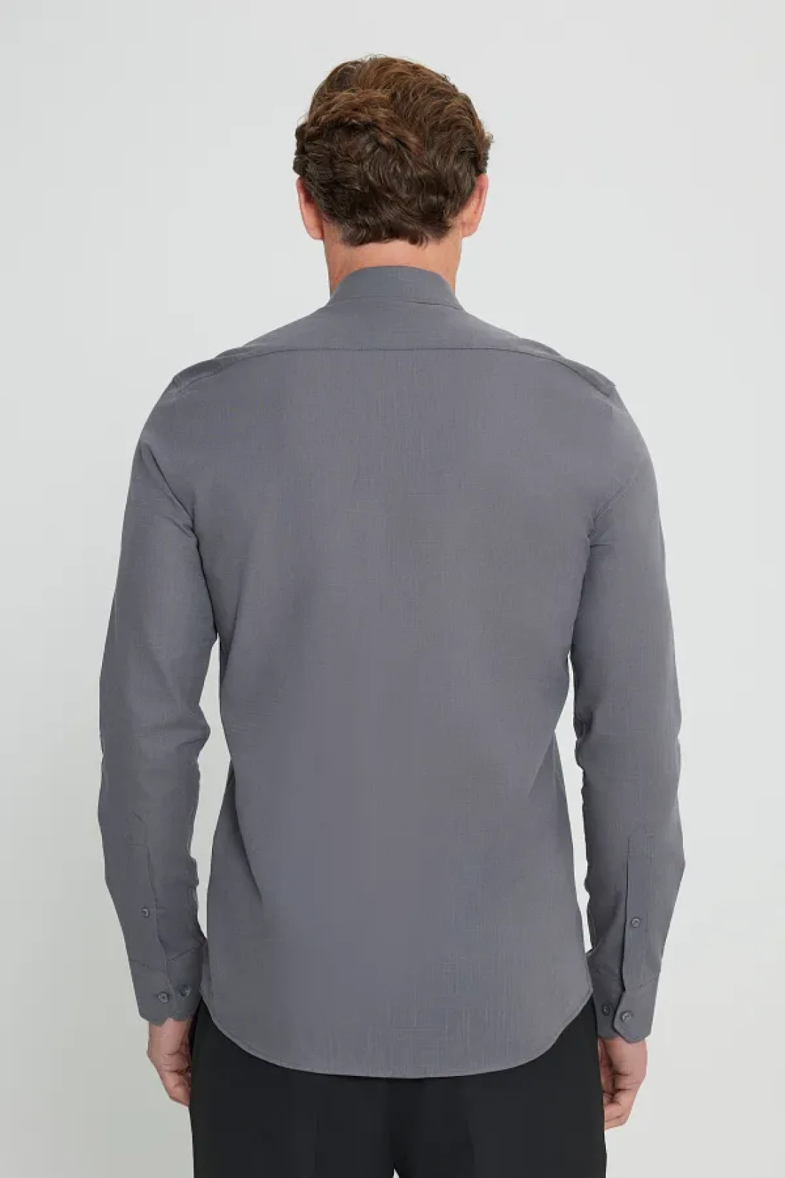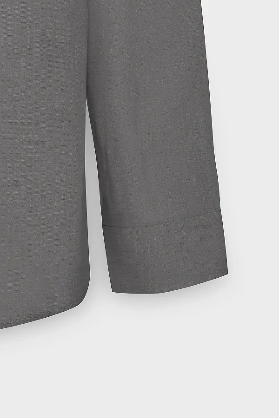 100% cotton, plain anthracite, casual model, tailored slim fit, buttoned stand collar, normal cuff, long sleeve, without pocket, summer collection, Casual style designs from the ac&co series are candidates to be your new favorites at every moment from your daily style to the weekend.