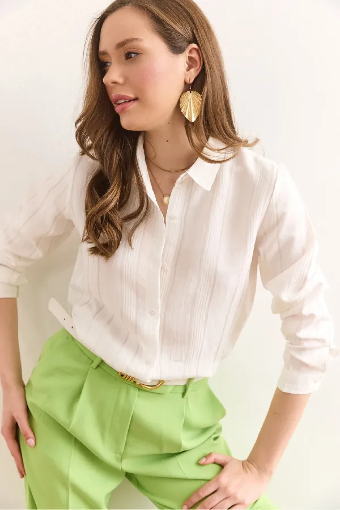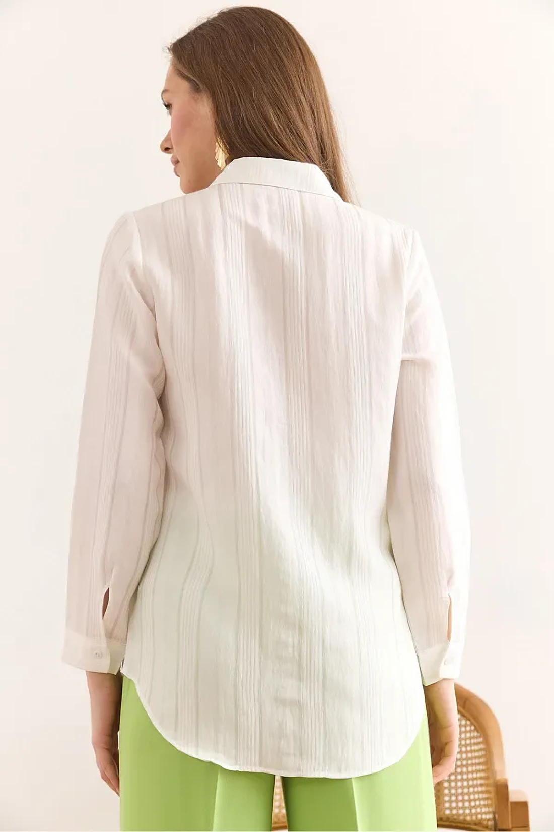 Olalook Women's Ecru Transparent Striped Regular Fit Draped Shirt Gml-19001334