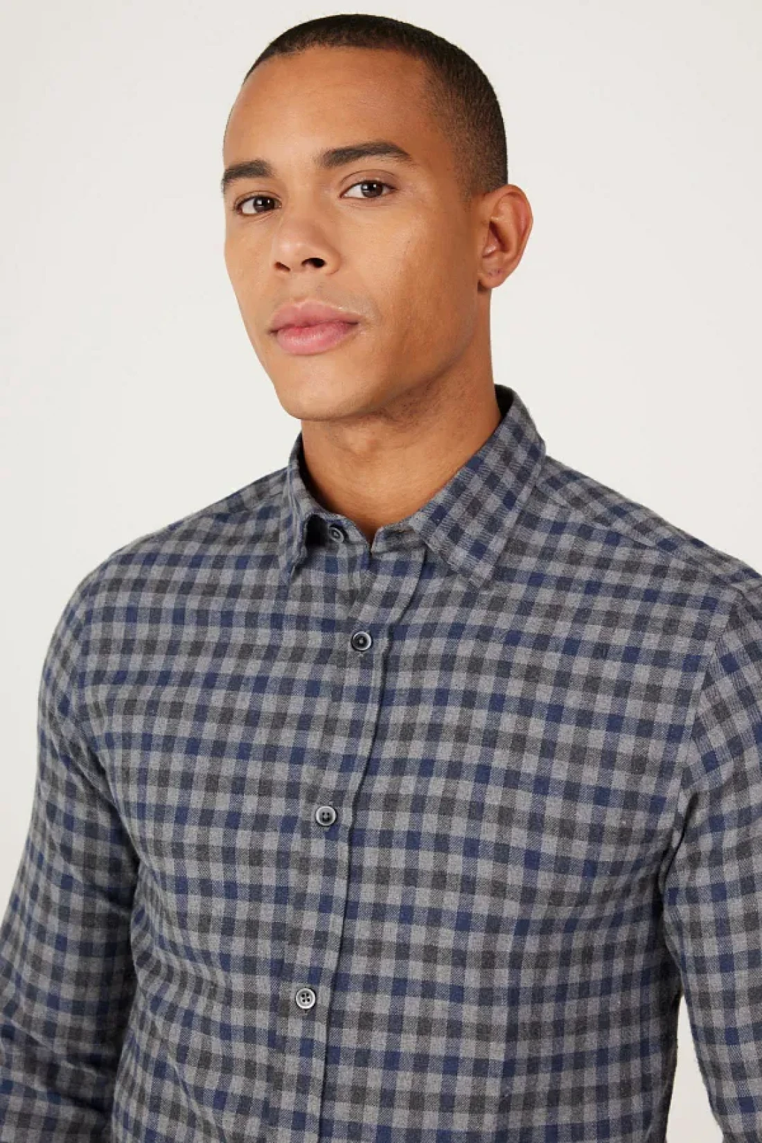 60% acrylic, 23% polyester, 8% viscose, 3% wool, 2% polyamide, checkered navy blue, Slim Fit cm, hidden button collar, long sleeve, pocketless, winter collection, acco / altınyıldız classics Slim Fit slim cut hidden button collar checkered thick buttoned winter shirt, product size: 50, model measurements: height: 1. 89cm, weight: 80kg, product code: et2024100032lac.