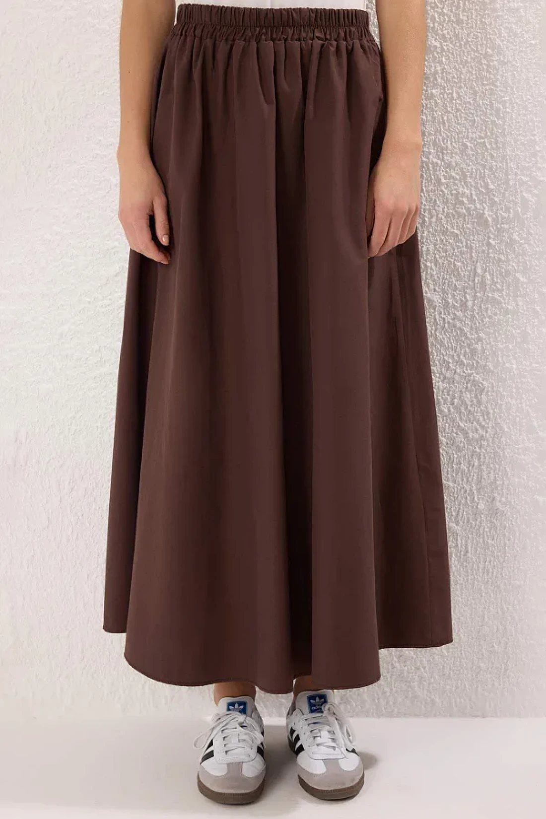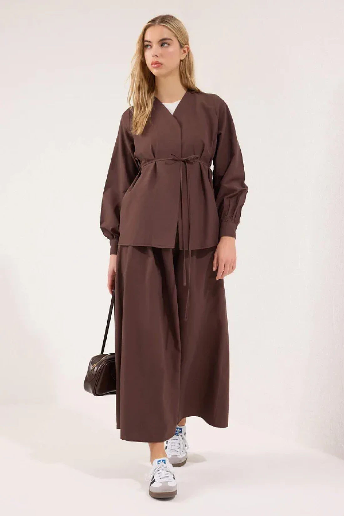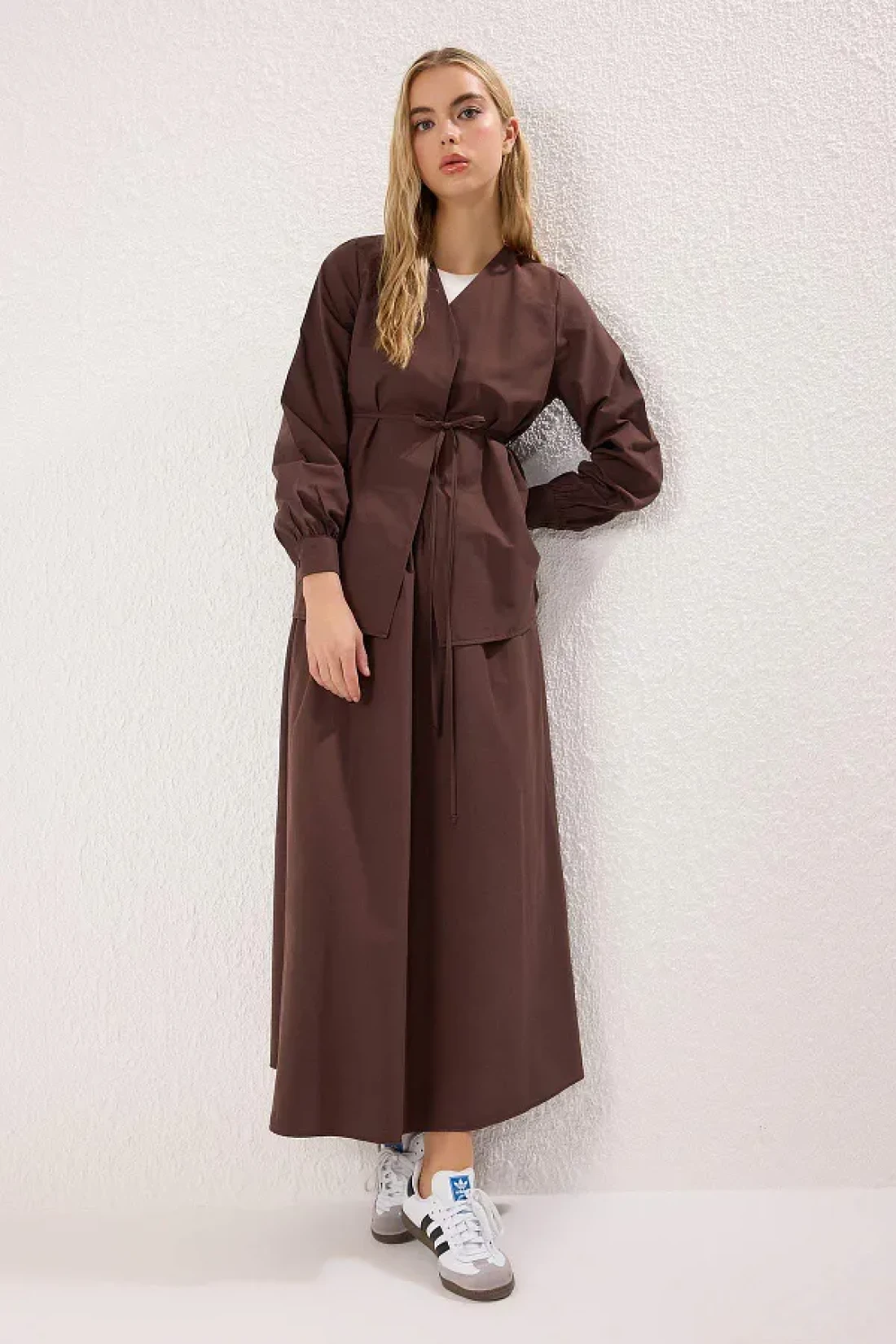 Modest Brown Cotton Woven Bottom-Top Skirt Suit Tctss25Us00051