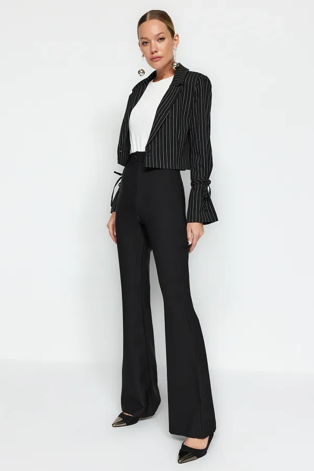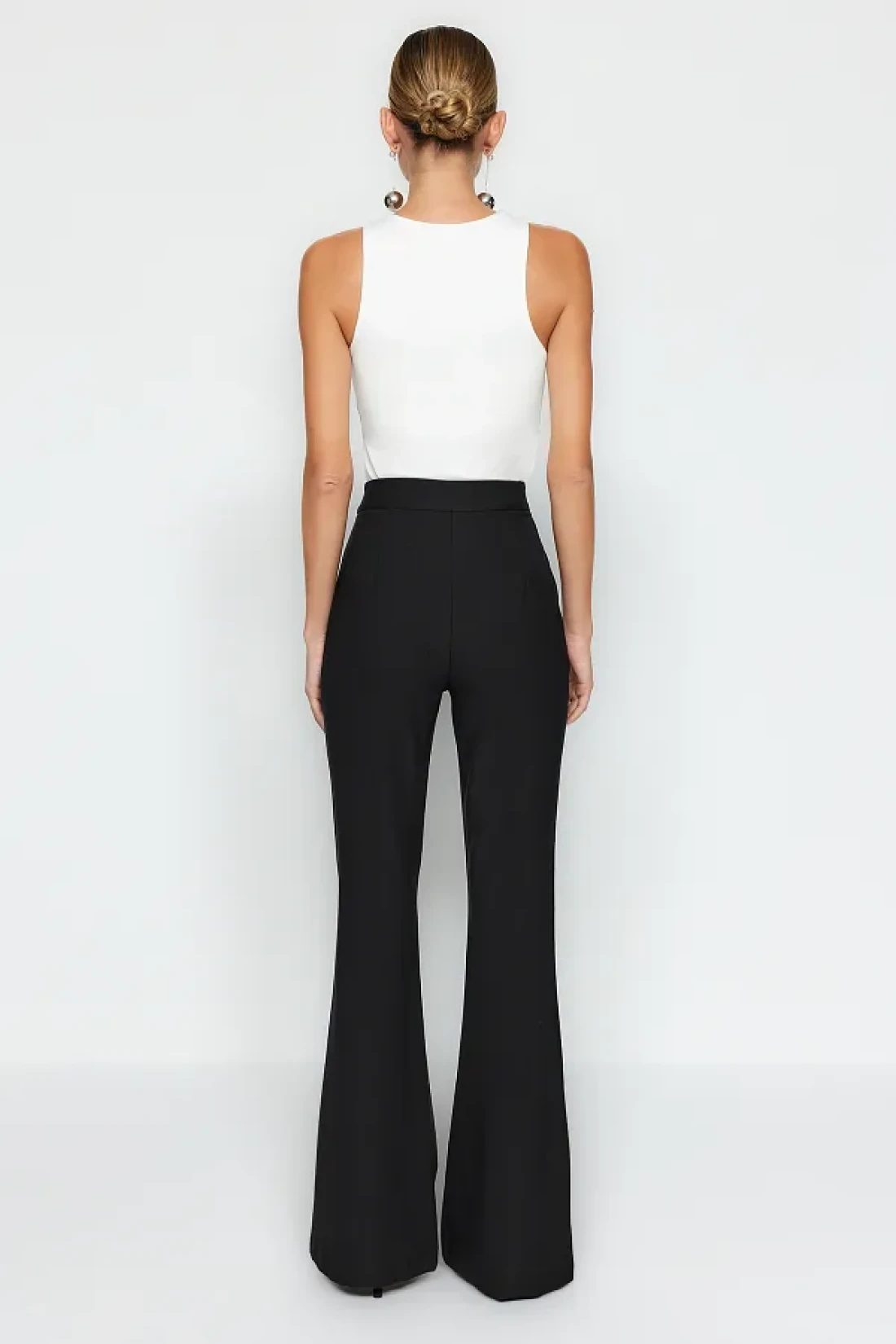 Collection High Waist Black Flare Woven Fabric Pants - Bell Bottom Twoaw20Pl0094