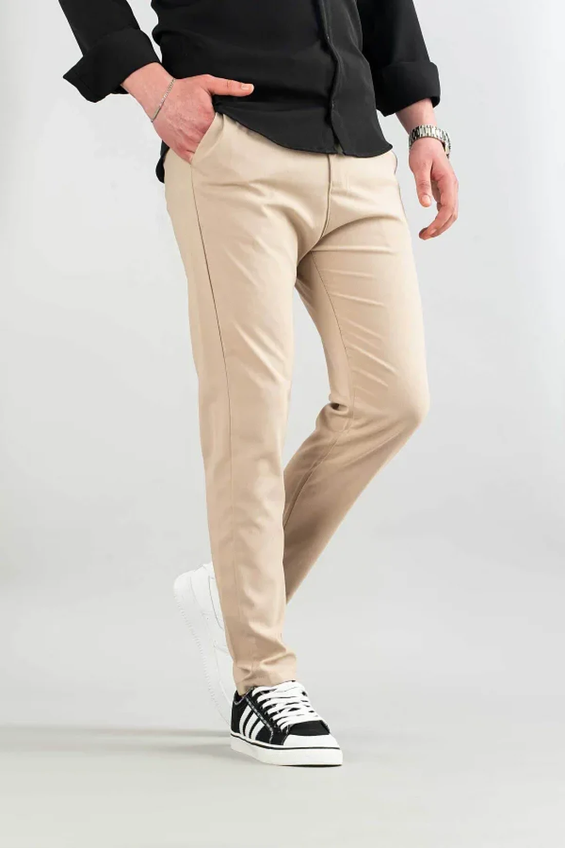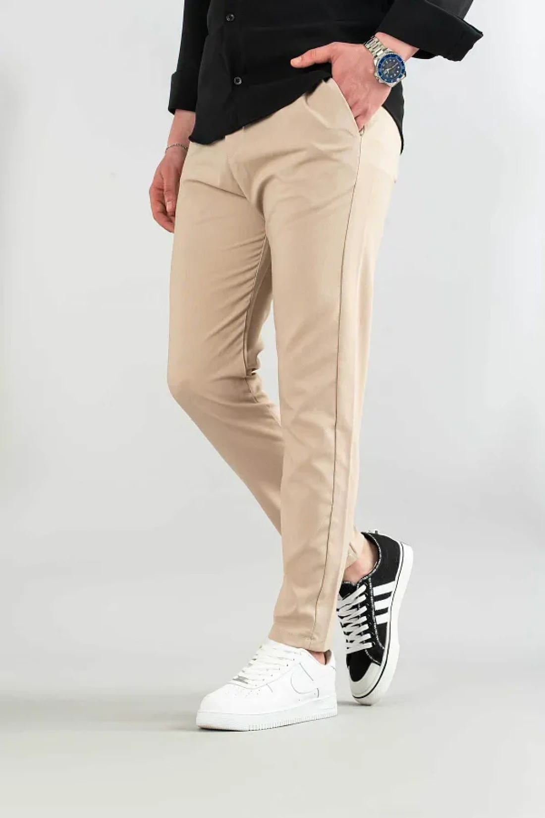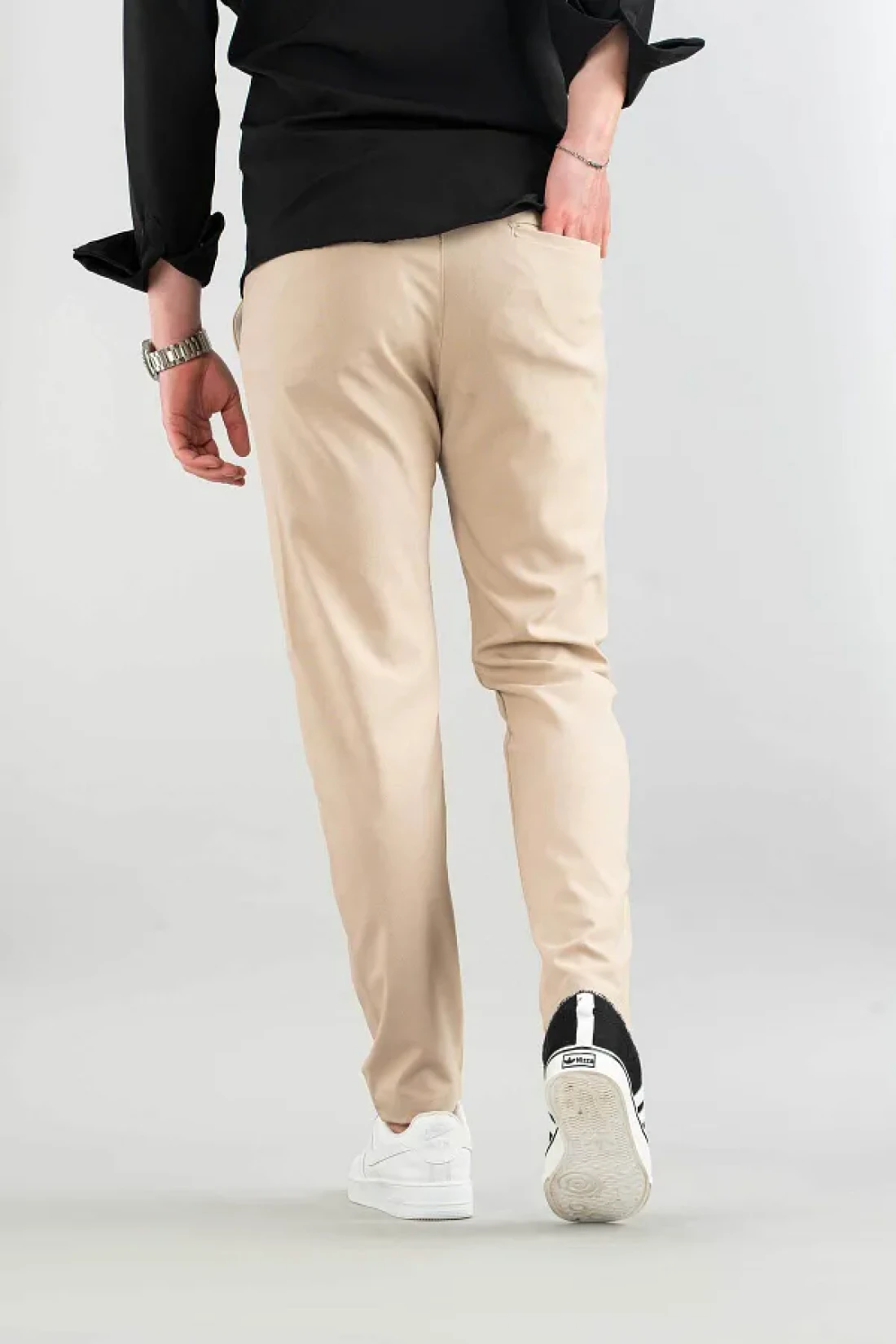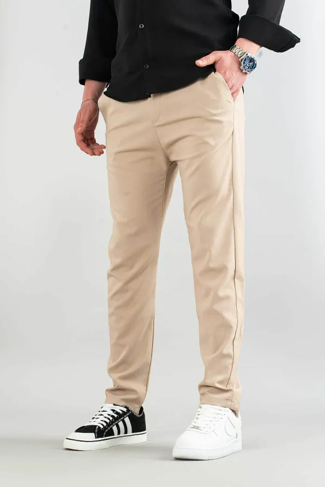 bombe Men's Beige Flexible Lycra Ankle Length Casual Comfortable Side Pocket Fabric Trousers