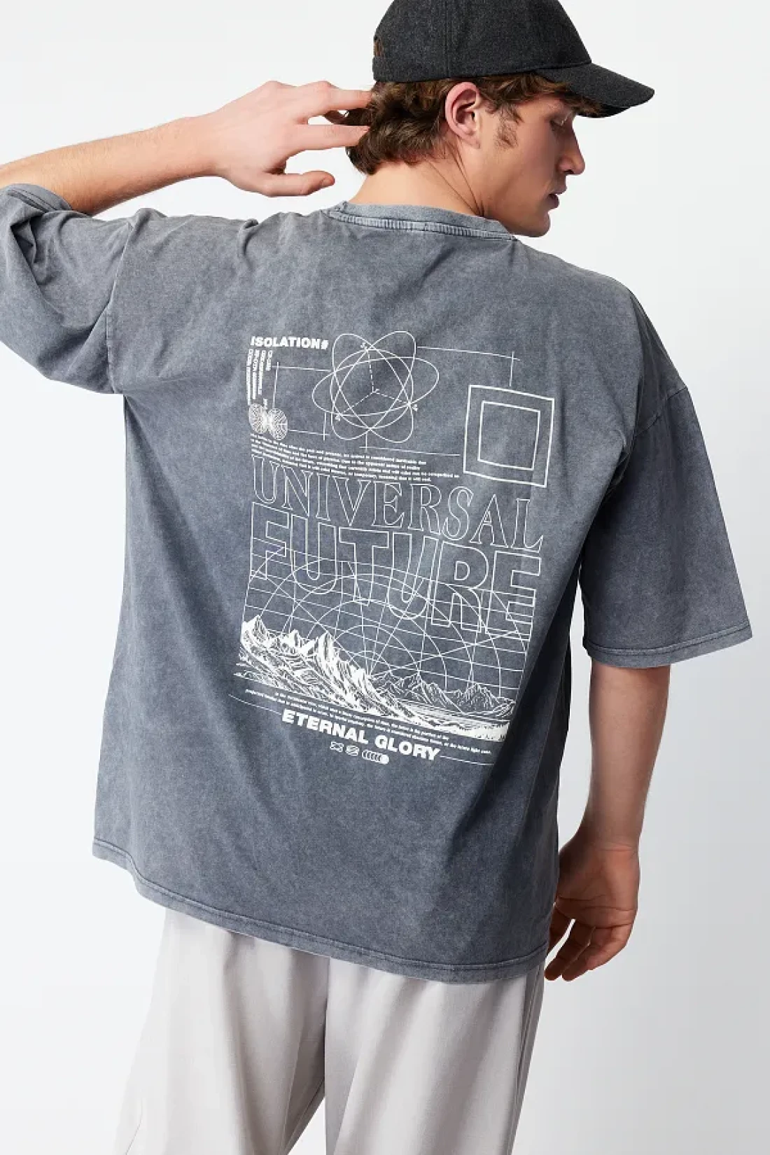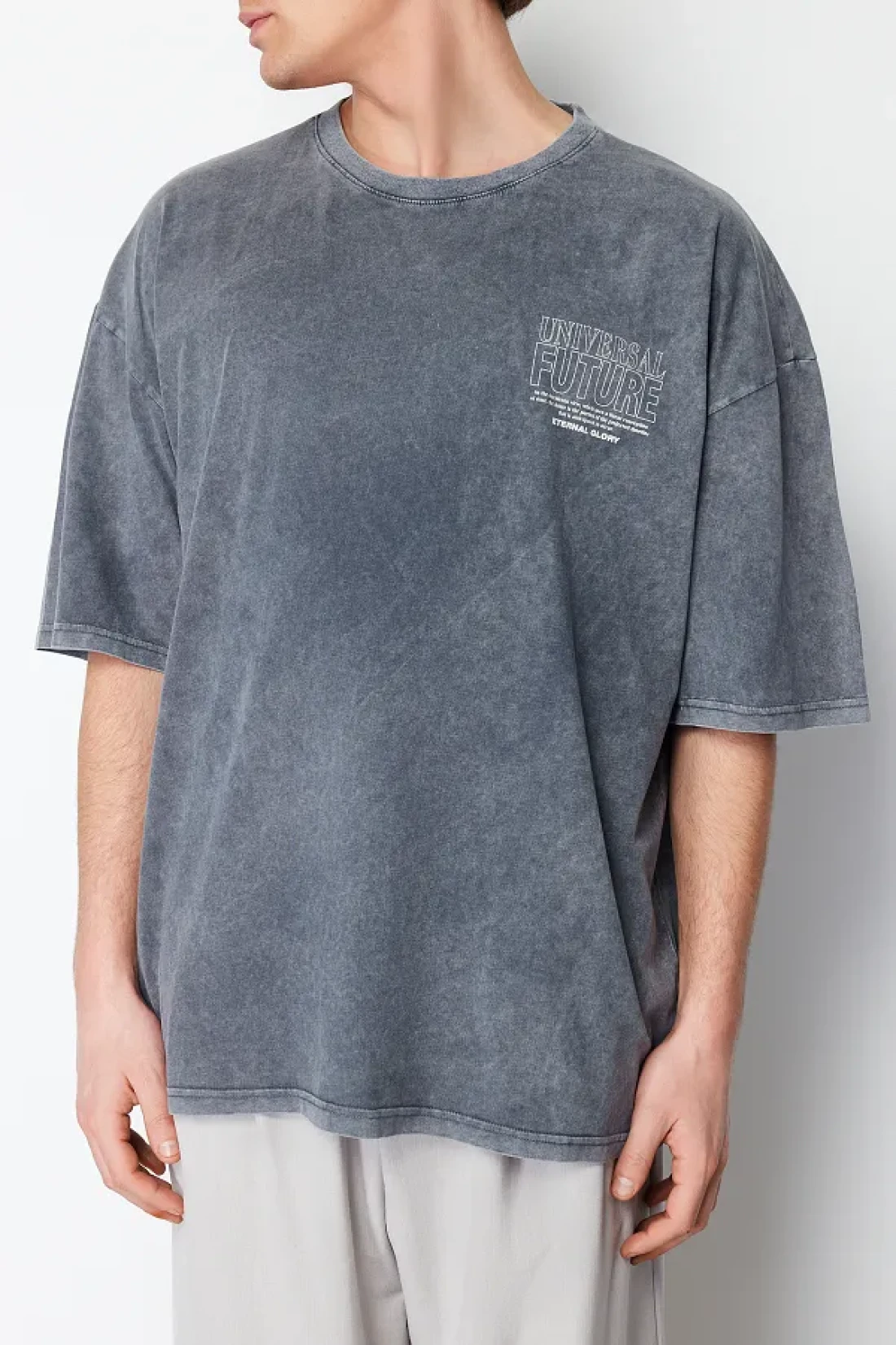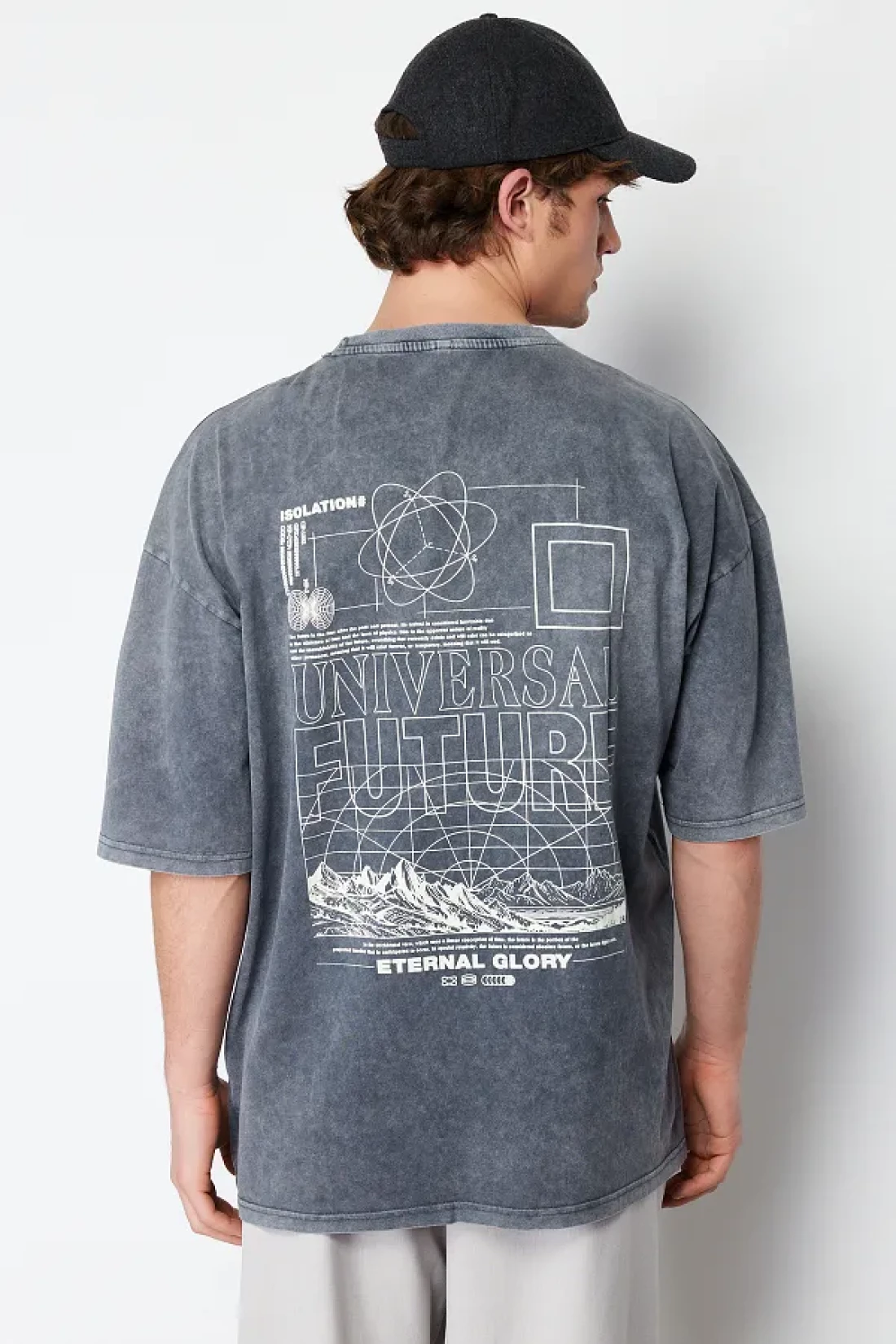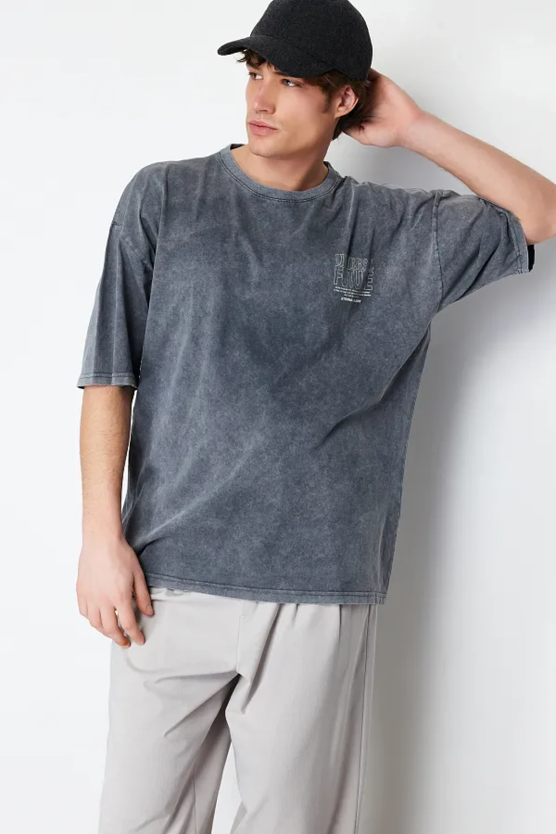 Collection Anthracite Color Oversize Printed Cotton T-Shirt - TMNSS24TS00043