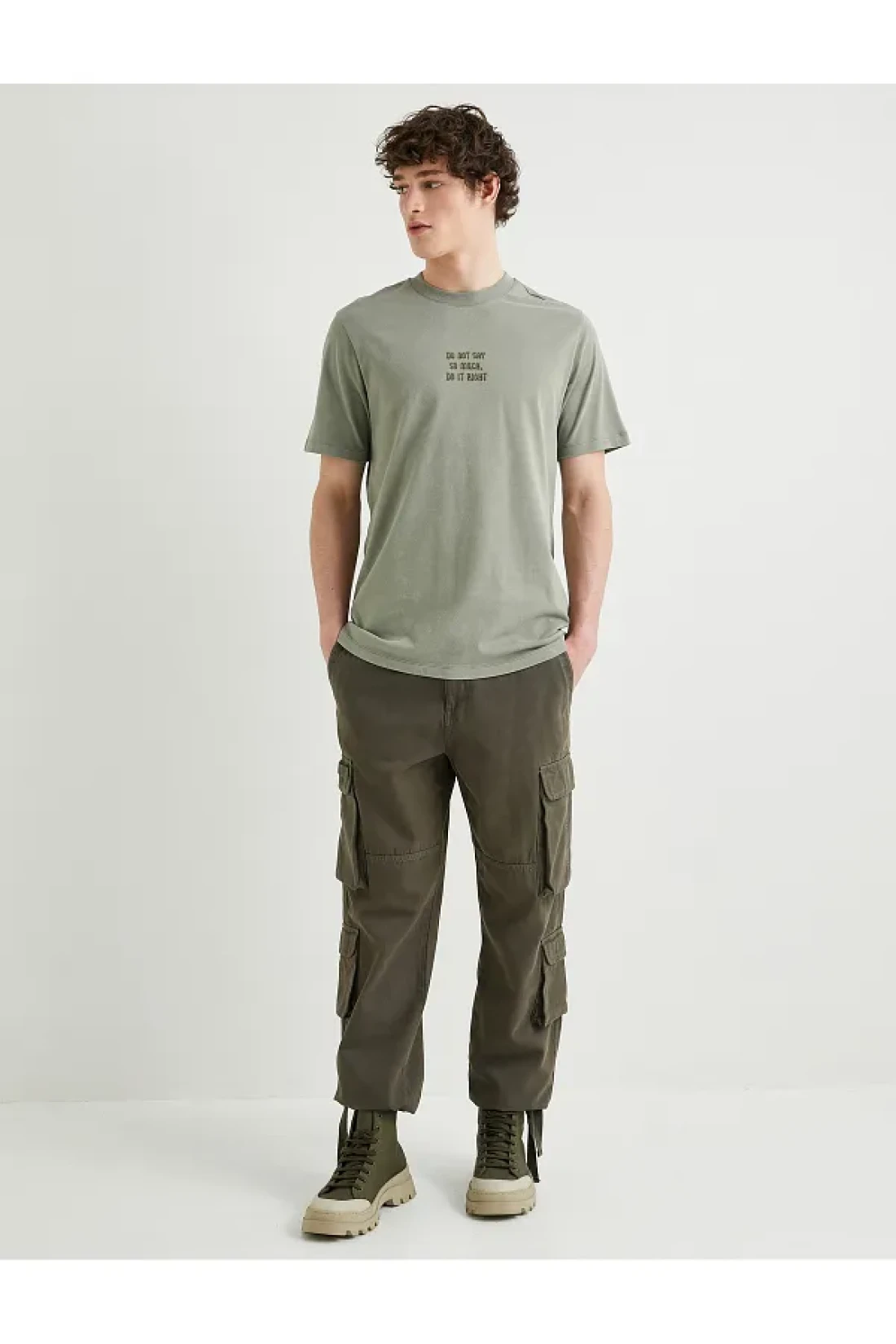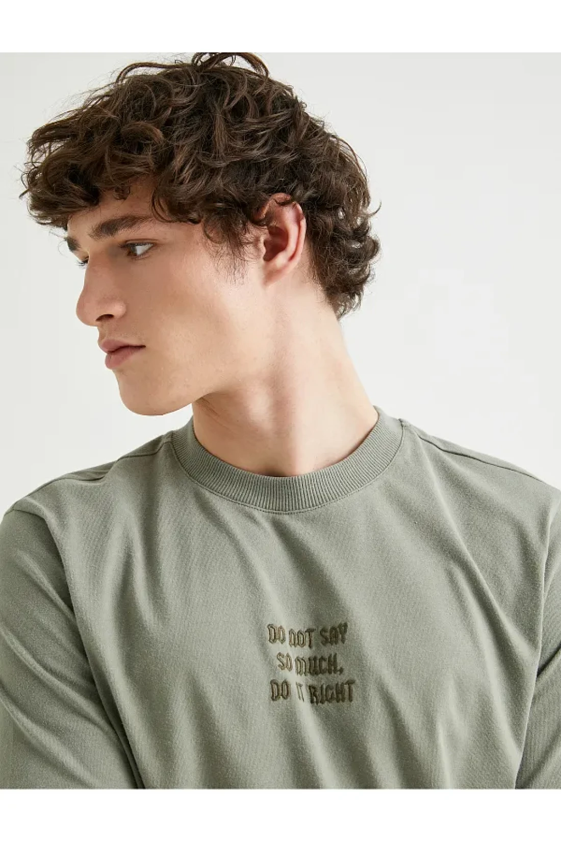 The slogan embroidered, bicycle collar, short-sleeved t-shirt is among the most favorite pieces. Show your style and style with the koton men's t-shirt collection! | Model height: 189 | Model hip: 96 | Model top: 76 | Model waist: l | Model bust: 98 | Jean model: 30/32