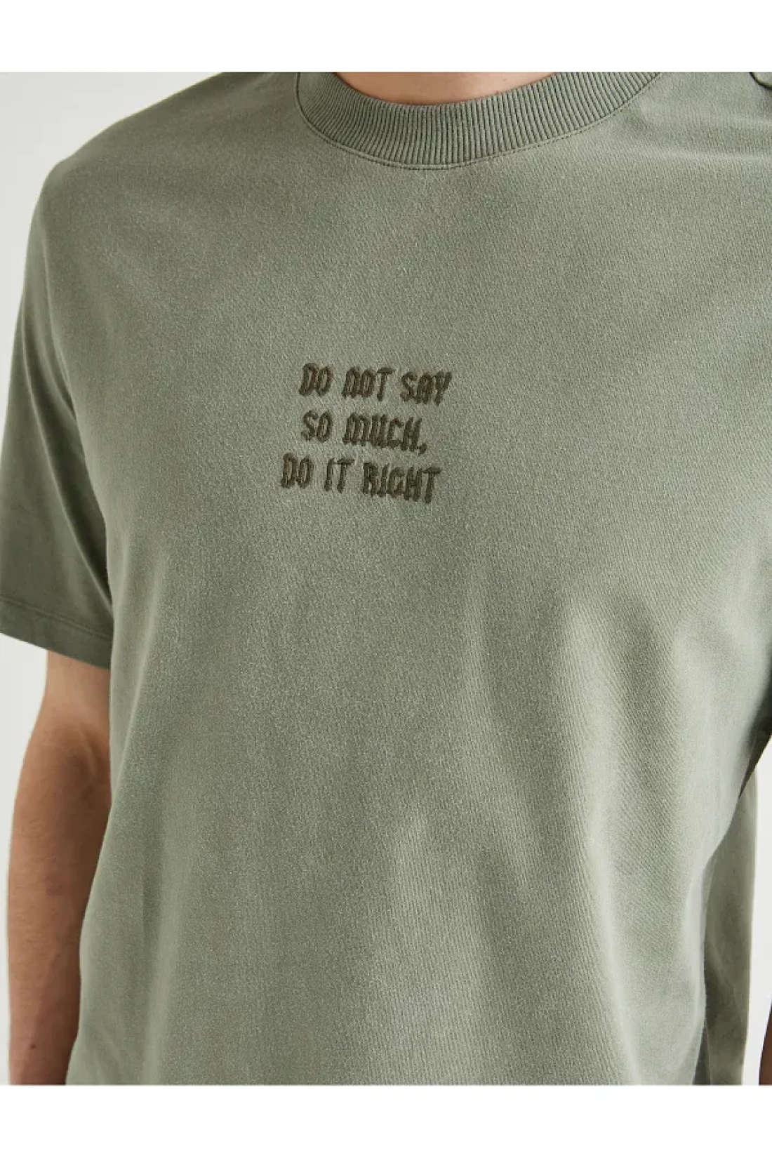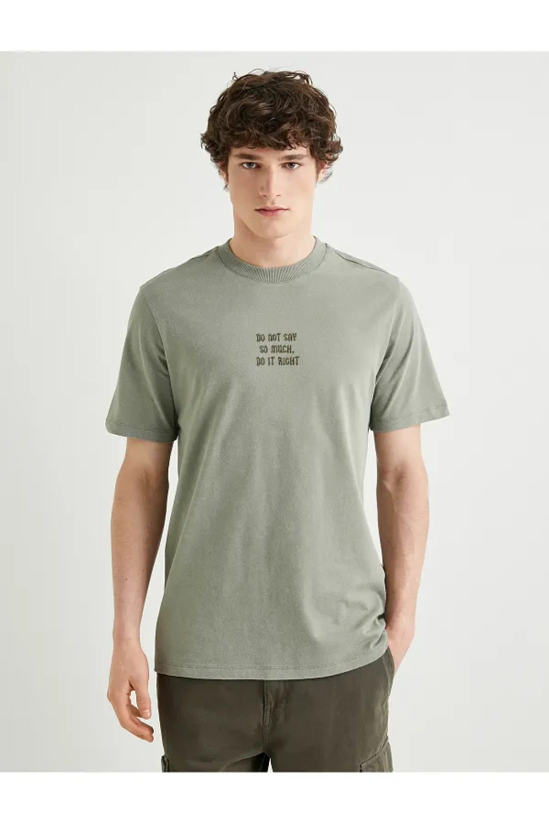 Koton Slogan Embroidered T-Shirt Washable Crew Neck Short Sleeve