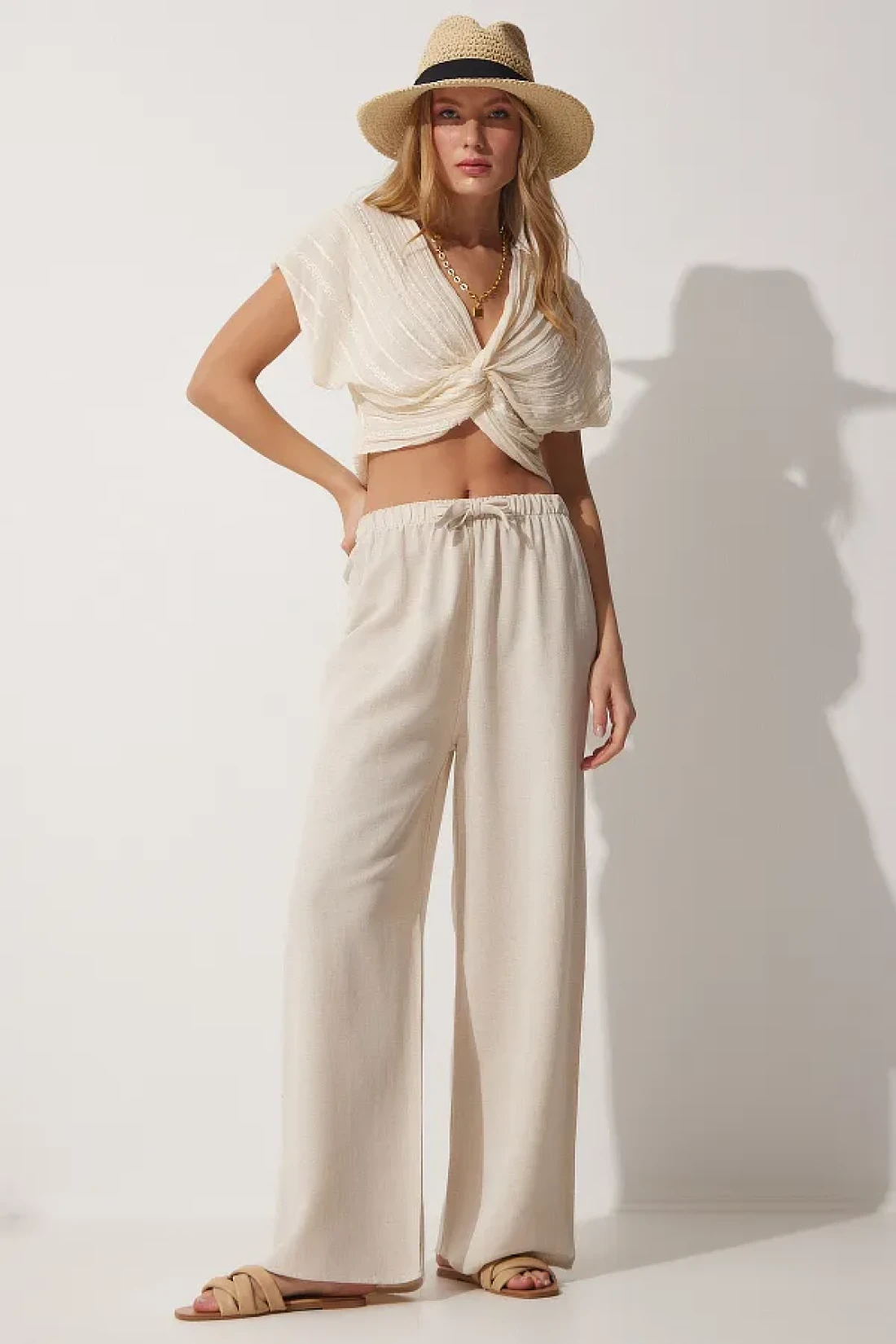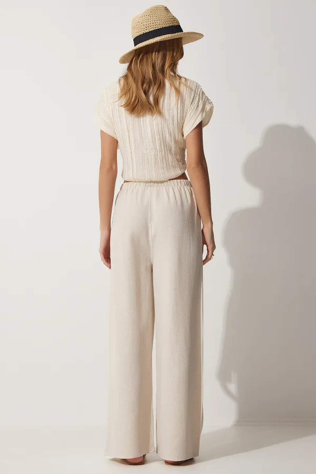 These trousers, produced with a blend of 50% viscose and 50% linen, offer both comfort and style. Thanks to its normal waist design, it provides a comfortable fit all day long and gently hugs the body lines. It creates a suitable option for everyone with its wide size range that appeals to all age groups. With the belt detail, you can adjust your waist as you wish and shape it according to your personal taste. With its stylish and straight pattern, it can be easily combined with different top clothing pieces and provides a timeless look