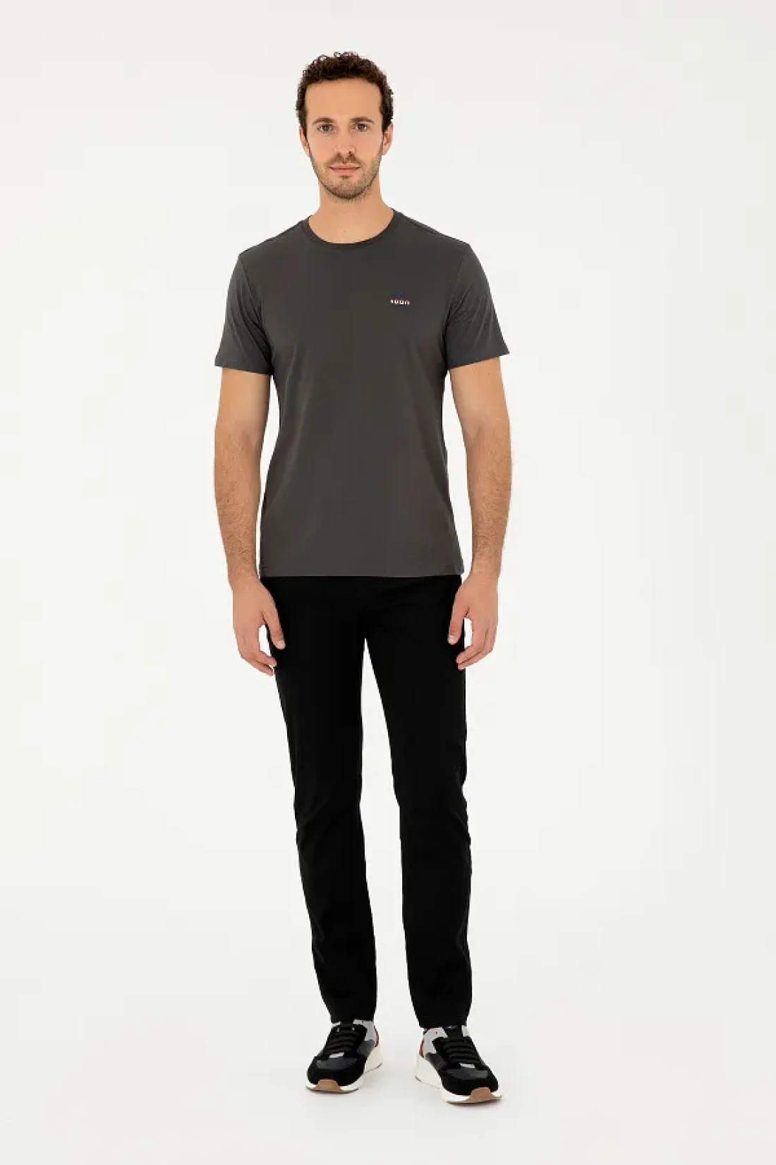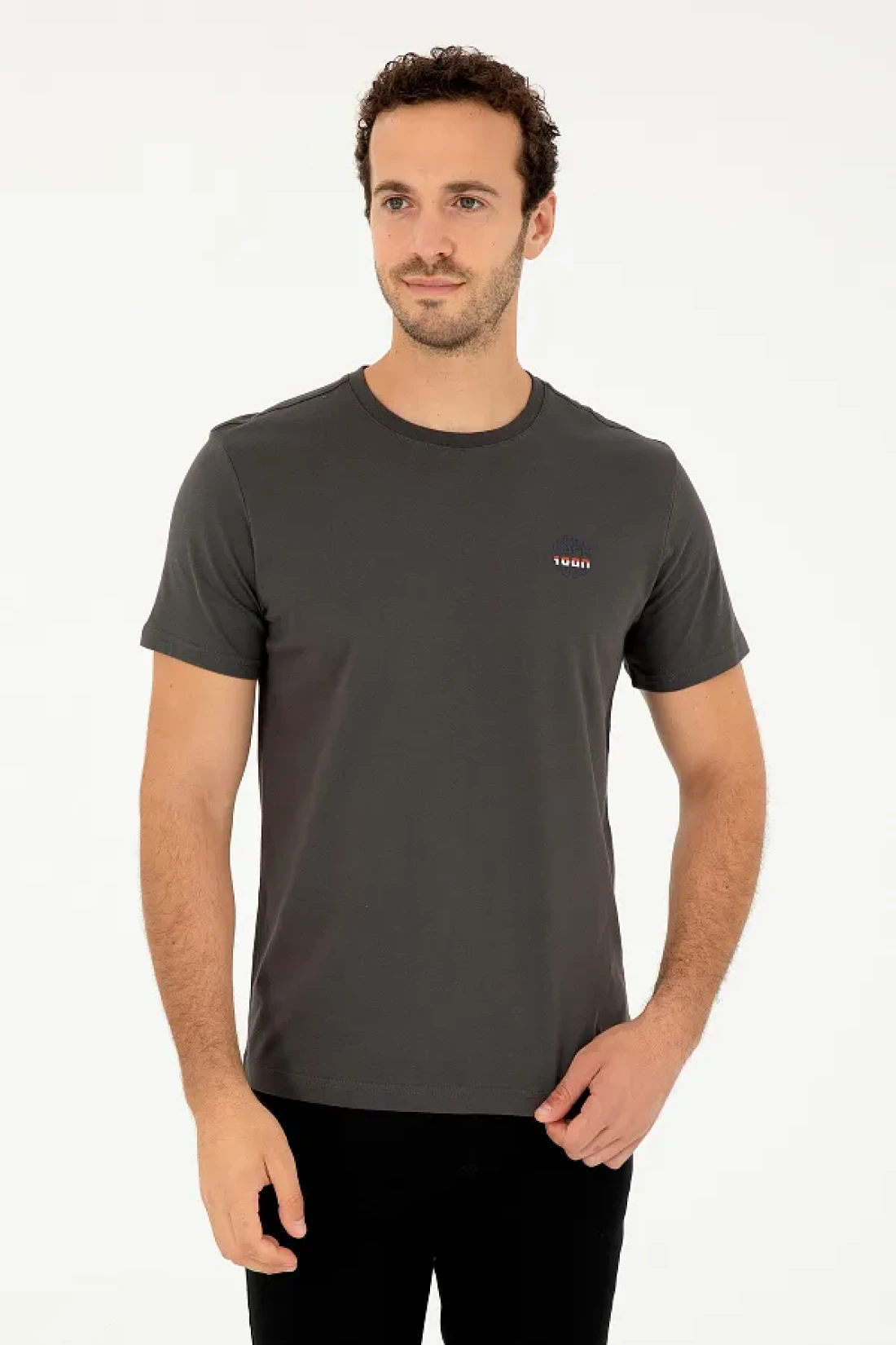 Anthracite t-shirt with an undetermined fabric type, ideal for comfortable and daily use. It offers a comfortable wearing experience with its regular fit suitable for all sizes. The straight pattern design reflects timeless elegance and matches with any combination