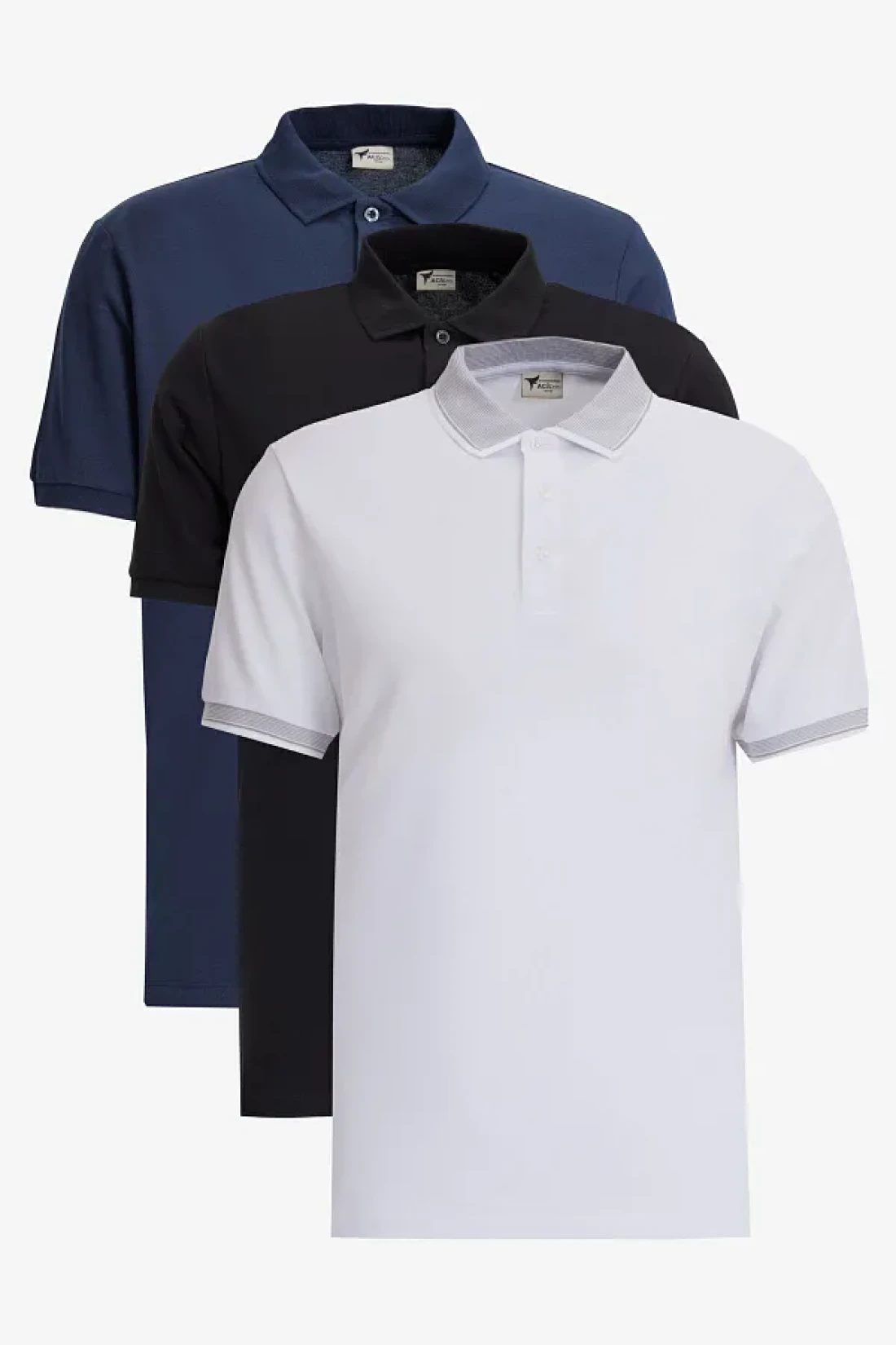 AC&Co / Altınyıldız Classics Men's Slim Fit Polo Collar T-Shirt Set of 3 - Black, White, Navy Blue, Non-Shrink Cotton