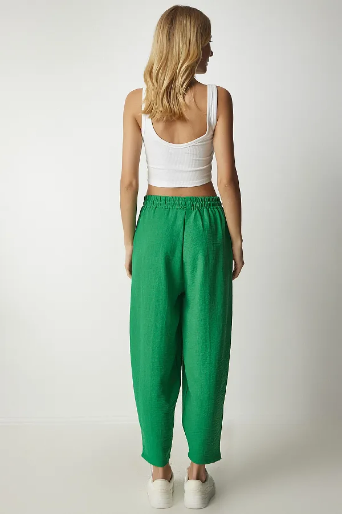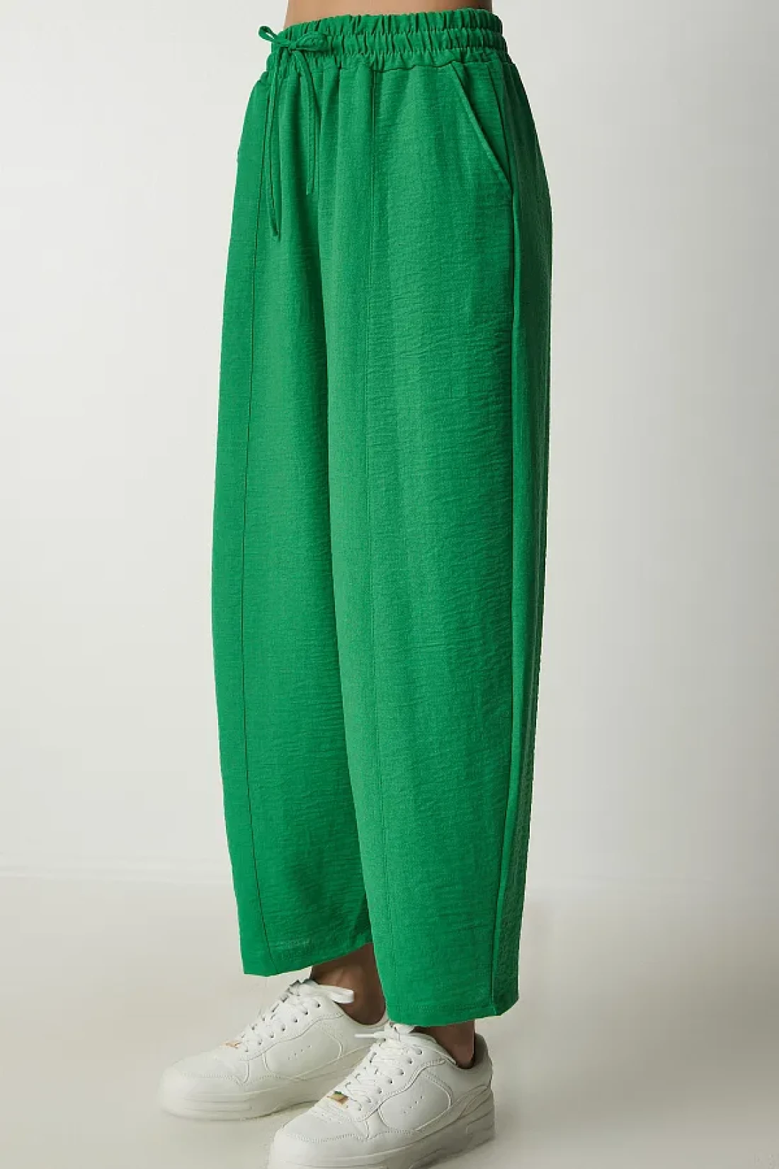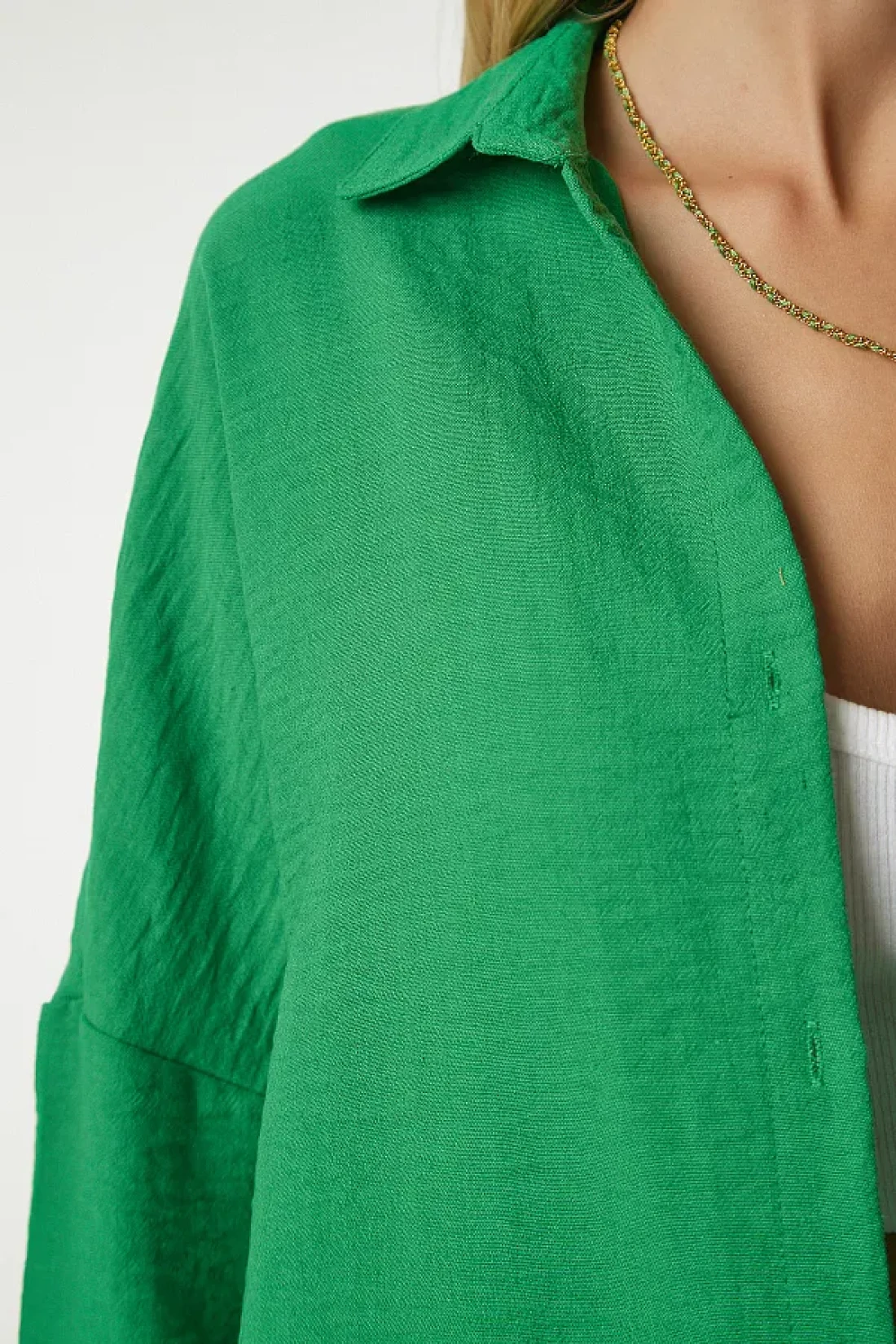 Happiness İstanbul Women's Green Linen Shirt Baggy Trousers Set DZ00080