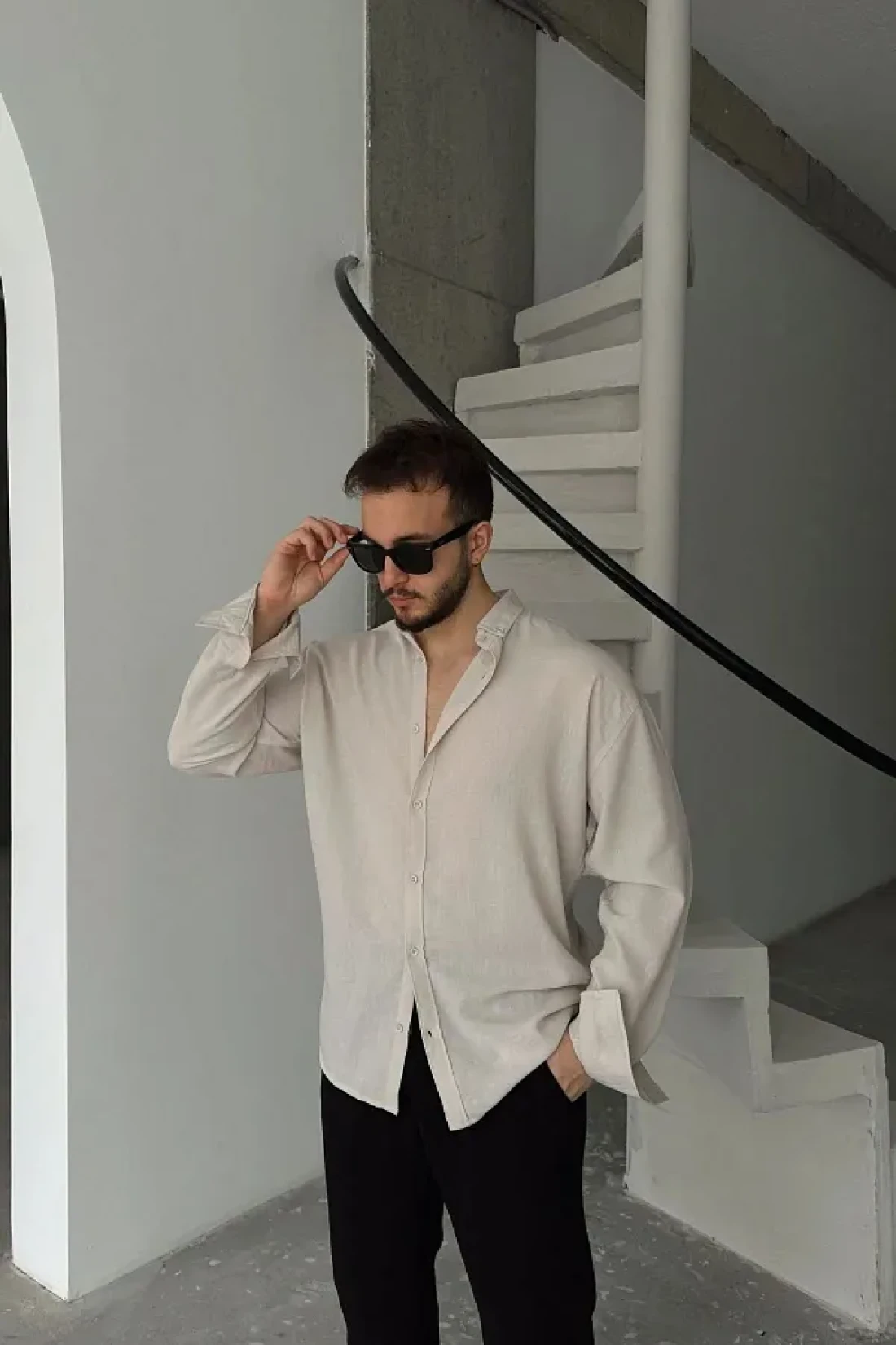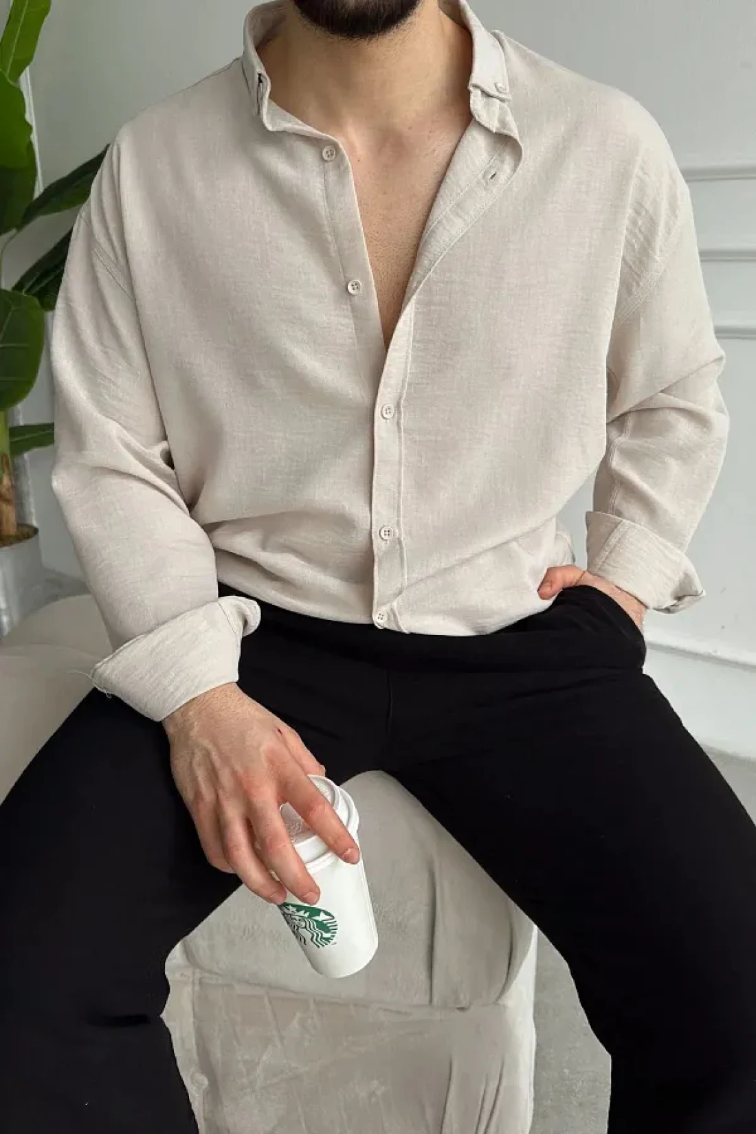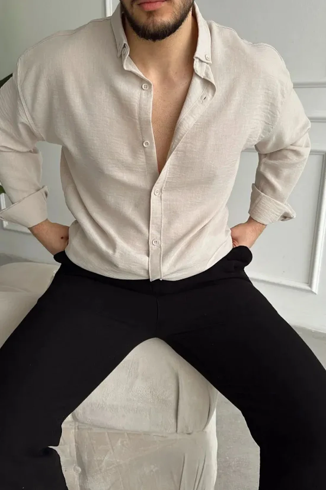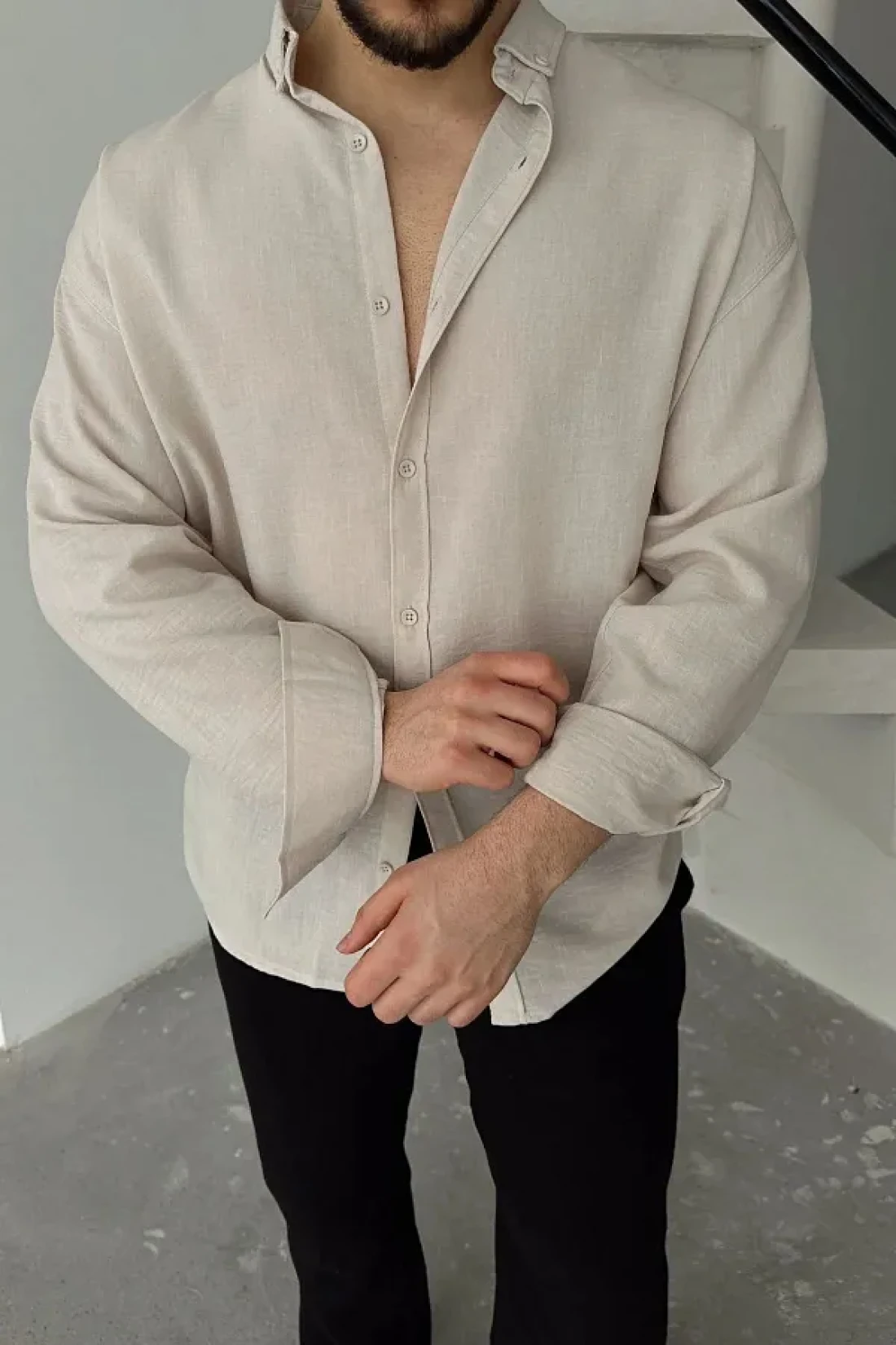 The beige Oversized shirt, offering elegance and comfort together with its textured pattern, stands out with its design suitable for daily use. Thanks to its regular cut, it provides comfortable use and adapts to different body types. With its flat design, it offers a simple and timeless look, while the linen material promises a comfortable experience with its lightness and breathability. This shirt, which can be easily preferred in casual environments, is an ideal option during seasonal transitions with its long-sleeved structure. Thanks to its knitted fabric type, it offers flexibility and durability, while its textured texture adds an eye-catching detail. It stands out as a piece that can take its place in everyone's wardrobe with its wide pattern that appeals to all age groups. The shirt maintains its distance from classic and formality with its collar detail, while the Oversized pattern creates a modern and comfortable style