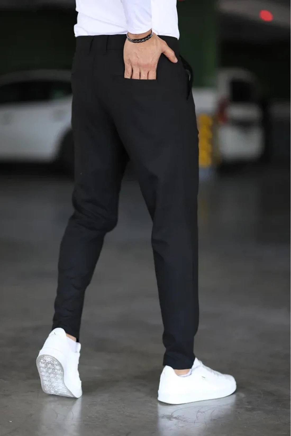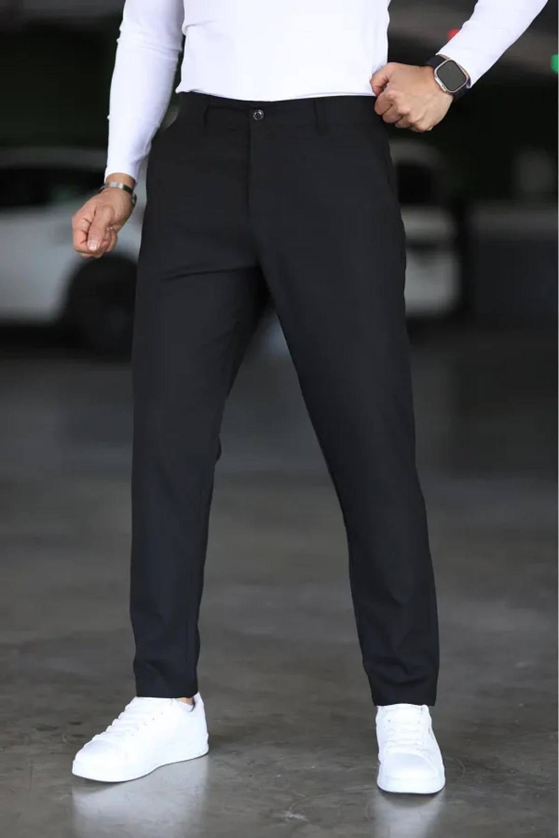 Bürke Men's Black Color Italian Cut Slim Fit Quality Fabric Trousers