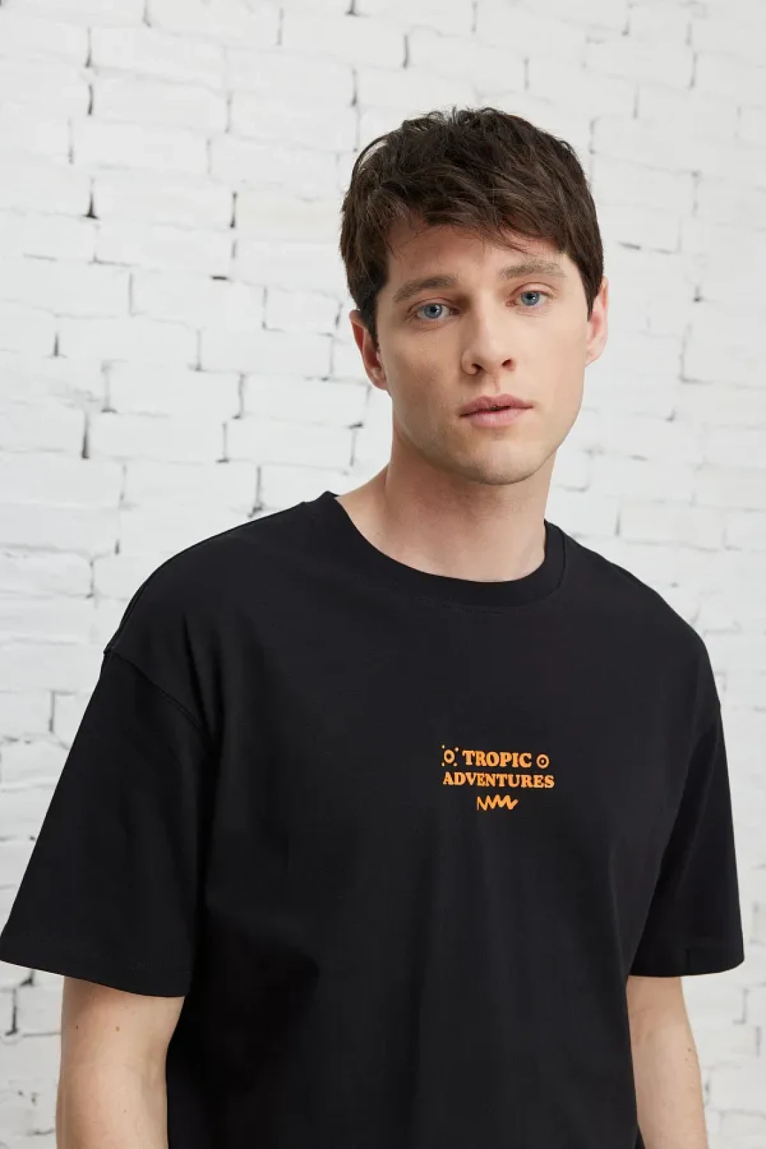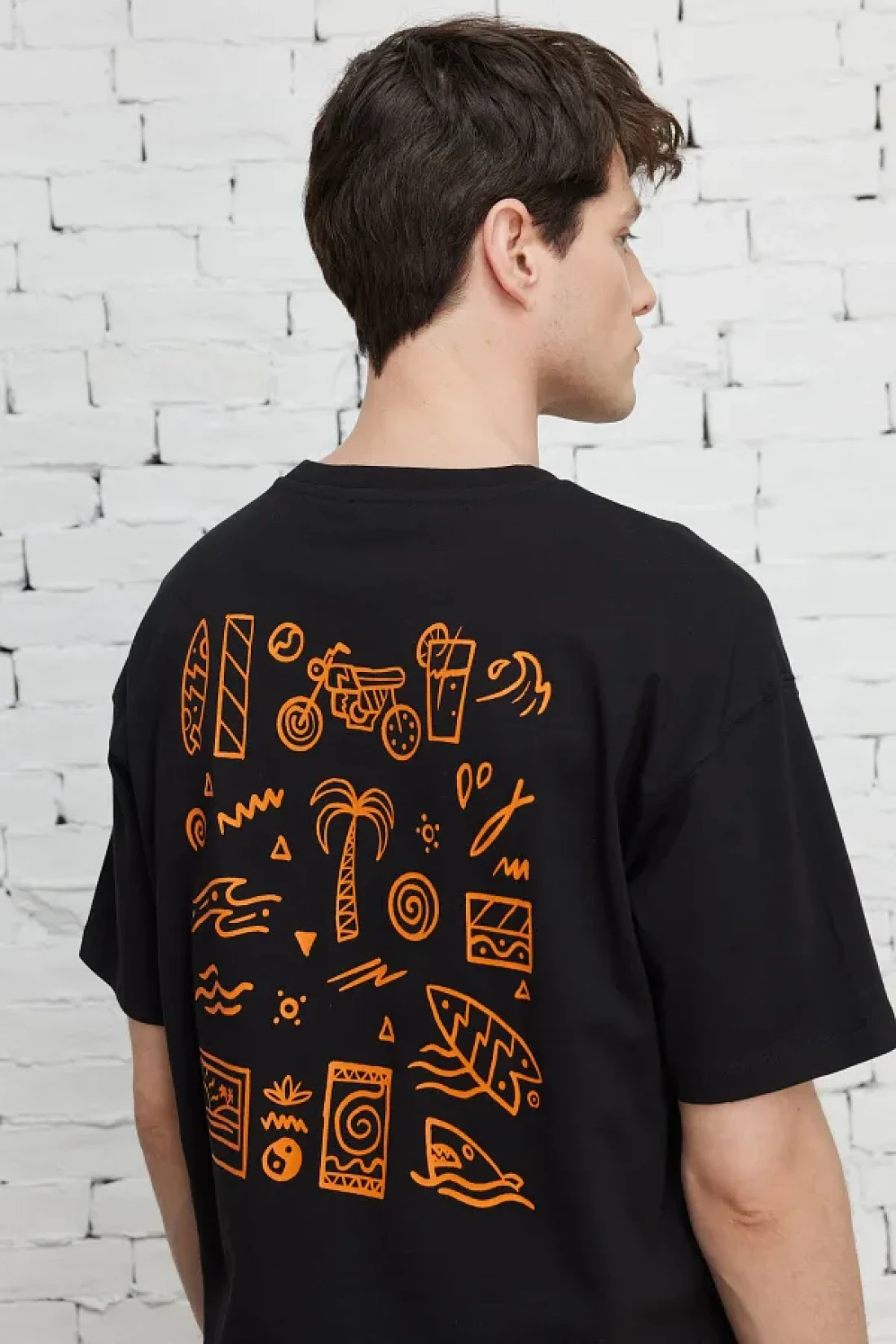 100% cotton, Printed black, boxy fit, short sleeve, crew neck, summer collection, casual model, no pocket, altınyıldız classics / acco boxy fit crew neck short sleeve 100% cotton t-shirt, product size: l, model information: height: 1. 89cm, weight: 80kg, product code: 4a4823200208syh.