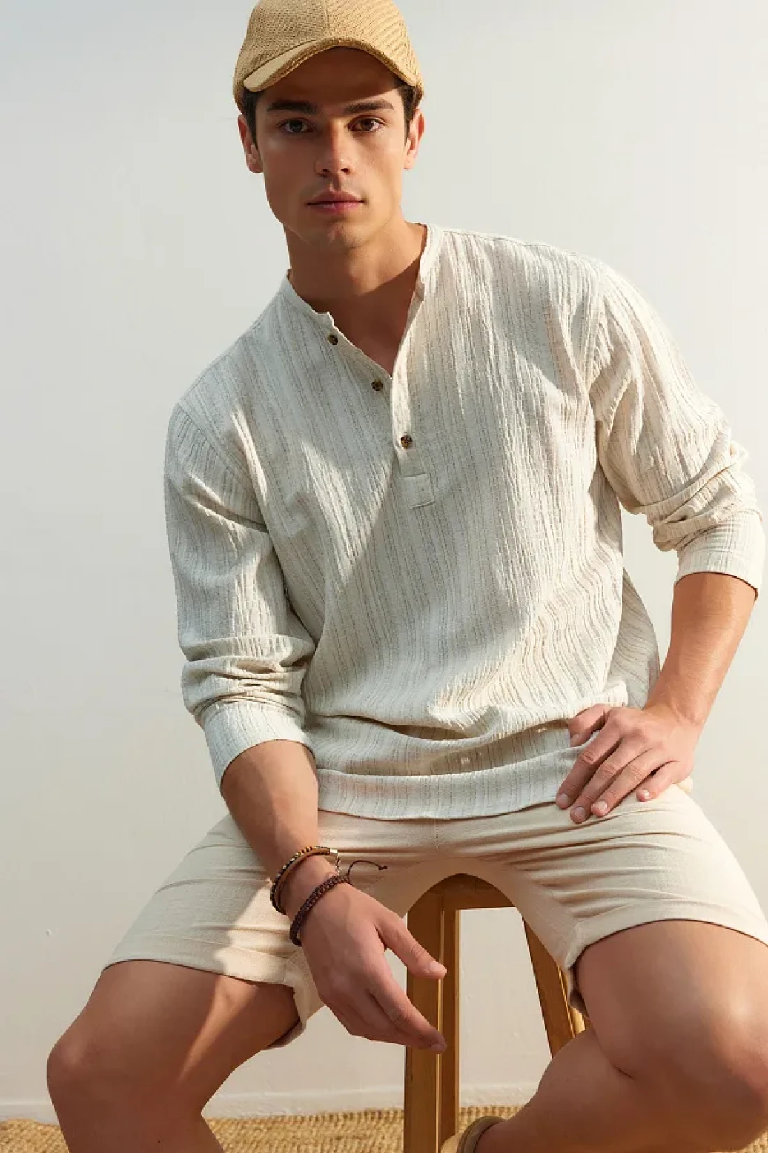 Collection Ecru Relaxed Fit Linen Content Shirt TMNSS23GO00121