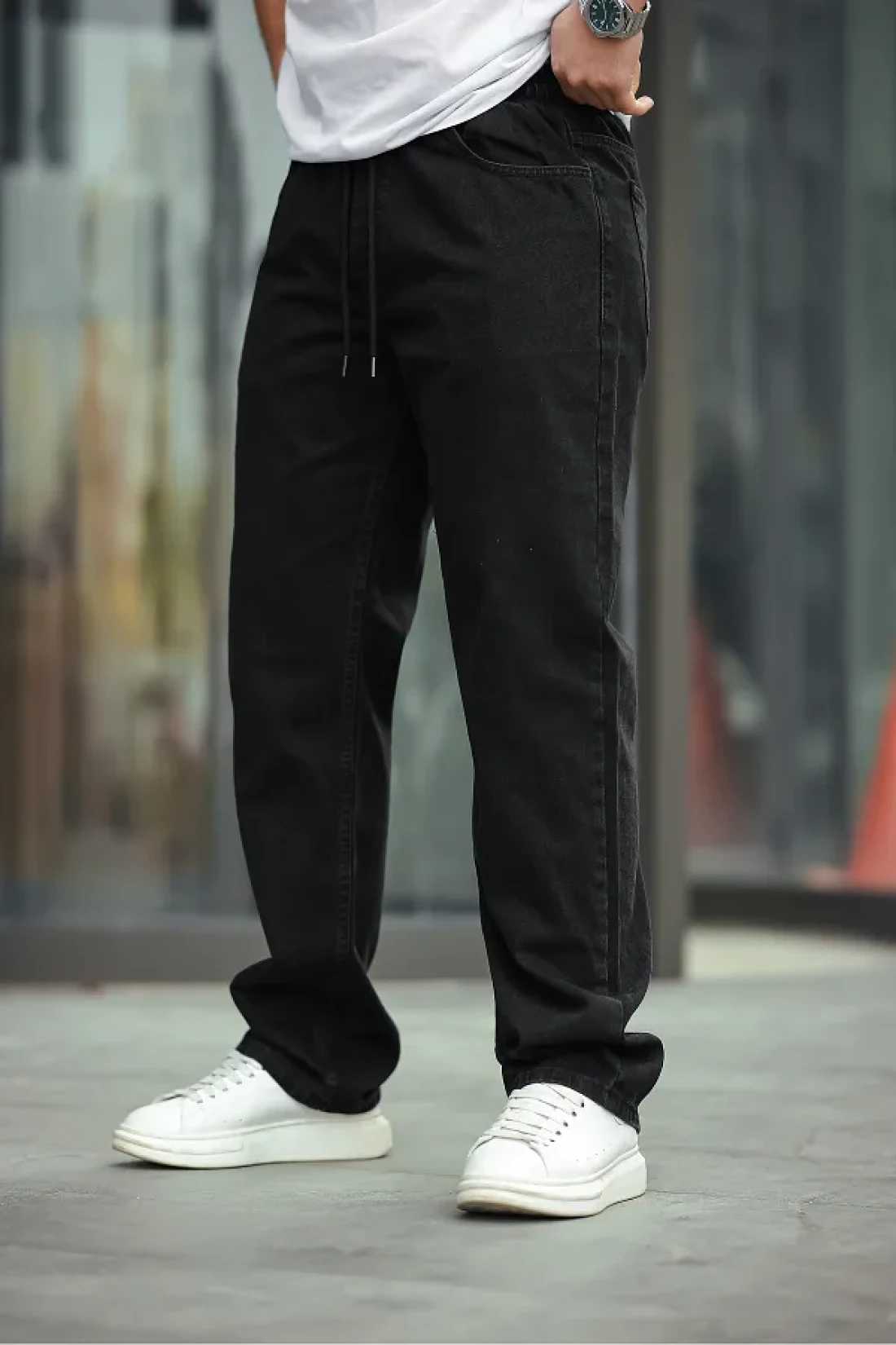 Men's baggy casual fit elastic waist pants