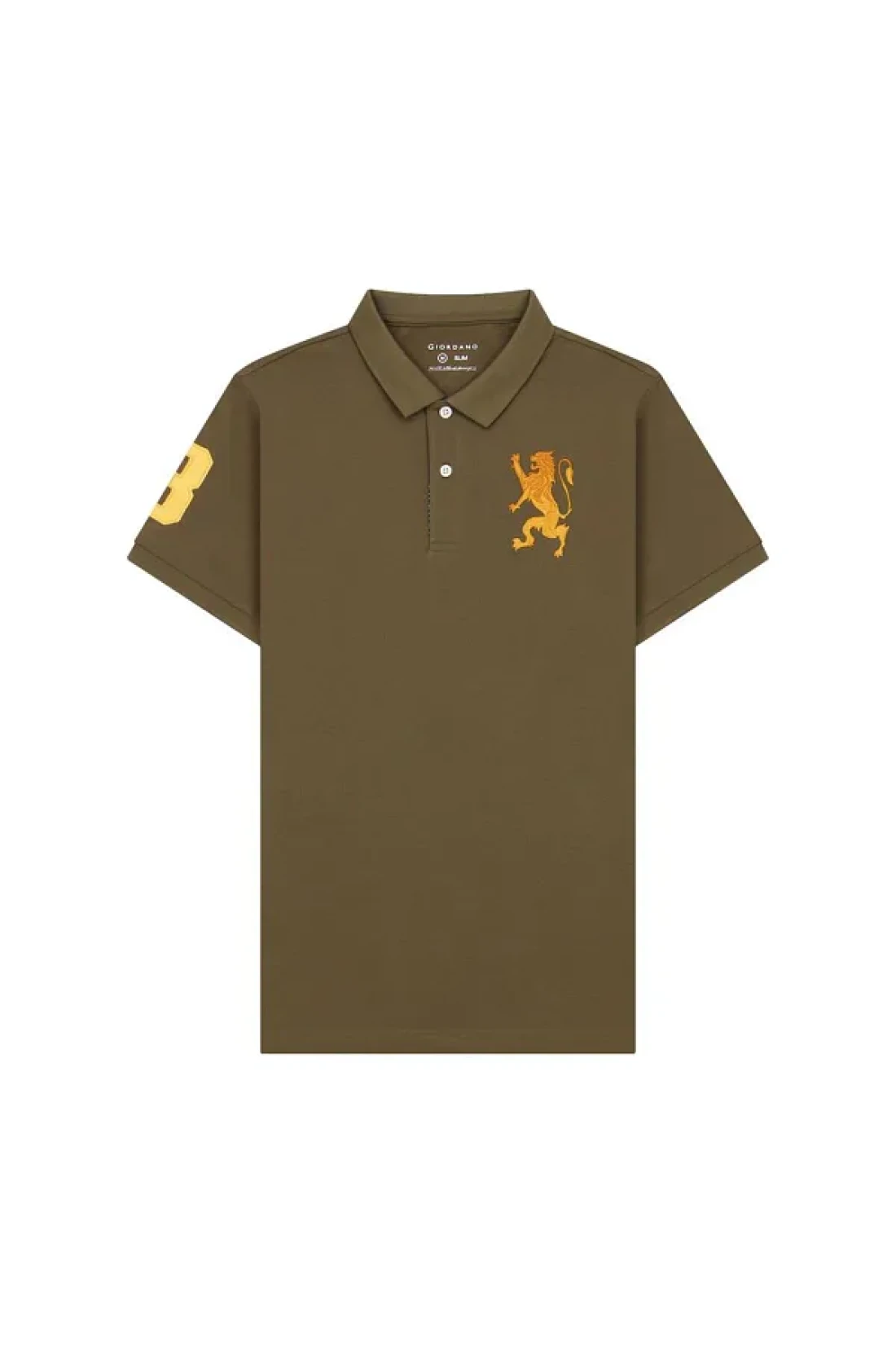 Giordano Men's 3D Lion Polo: Slim Fit, Bold Embroidery, Premium Pique