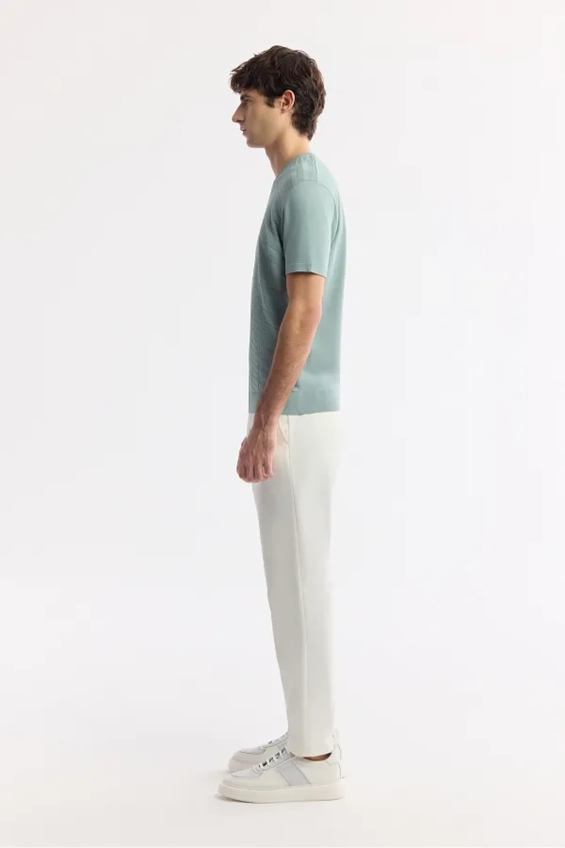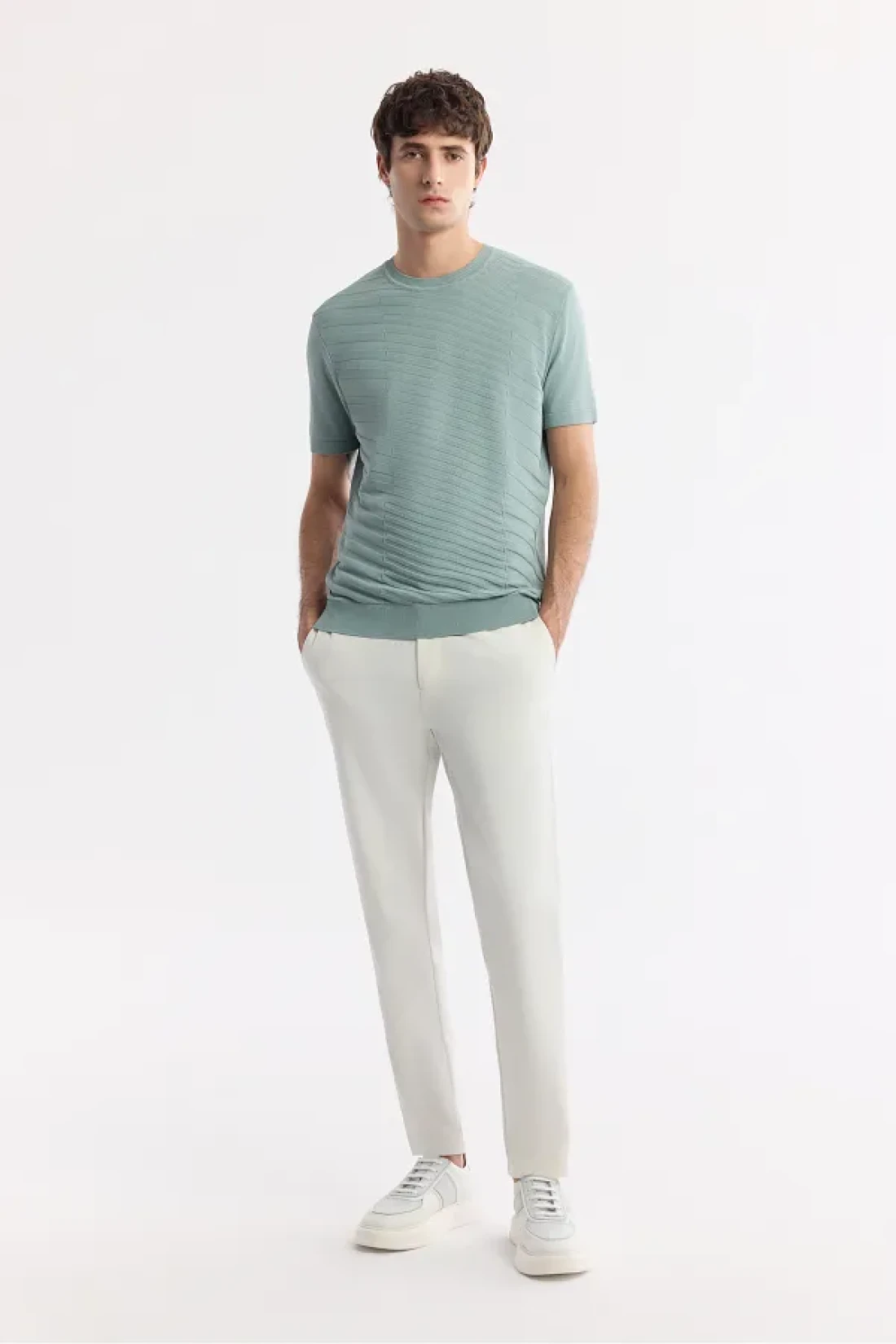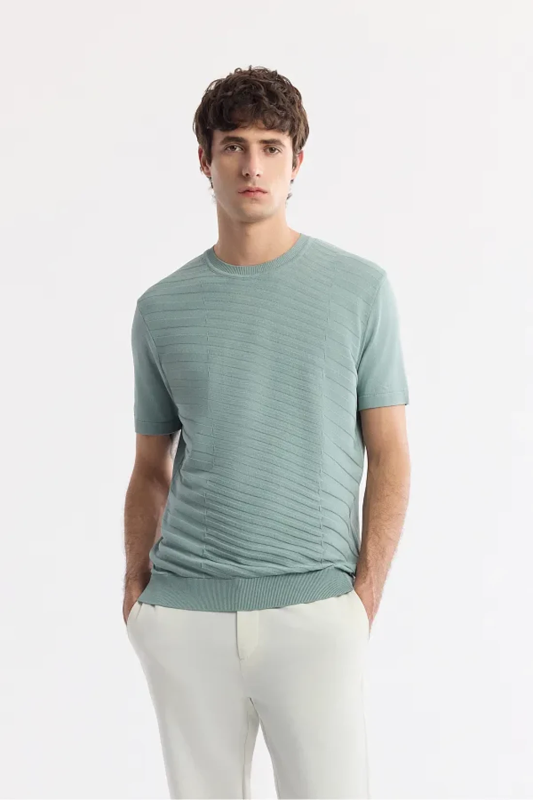 Avva Men's Nile Green Regular Fit Crew Neck Front Jacquard Detailed Rayon Knitwear T-Shirt A51Y5004