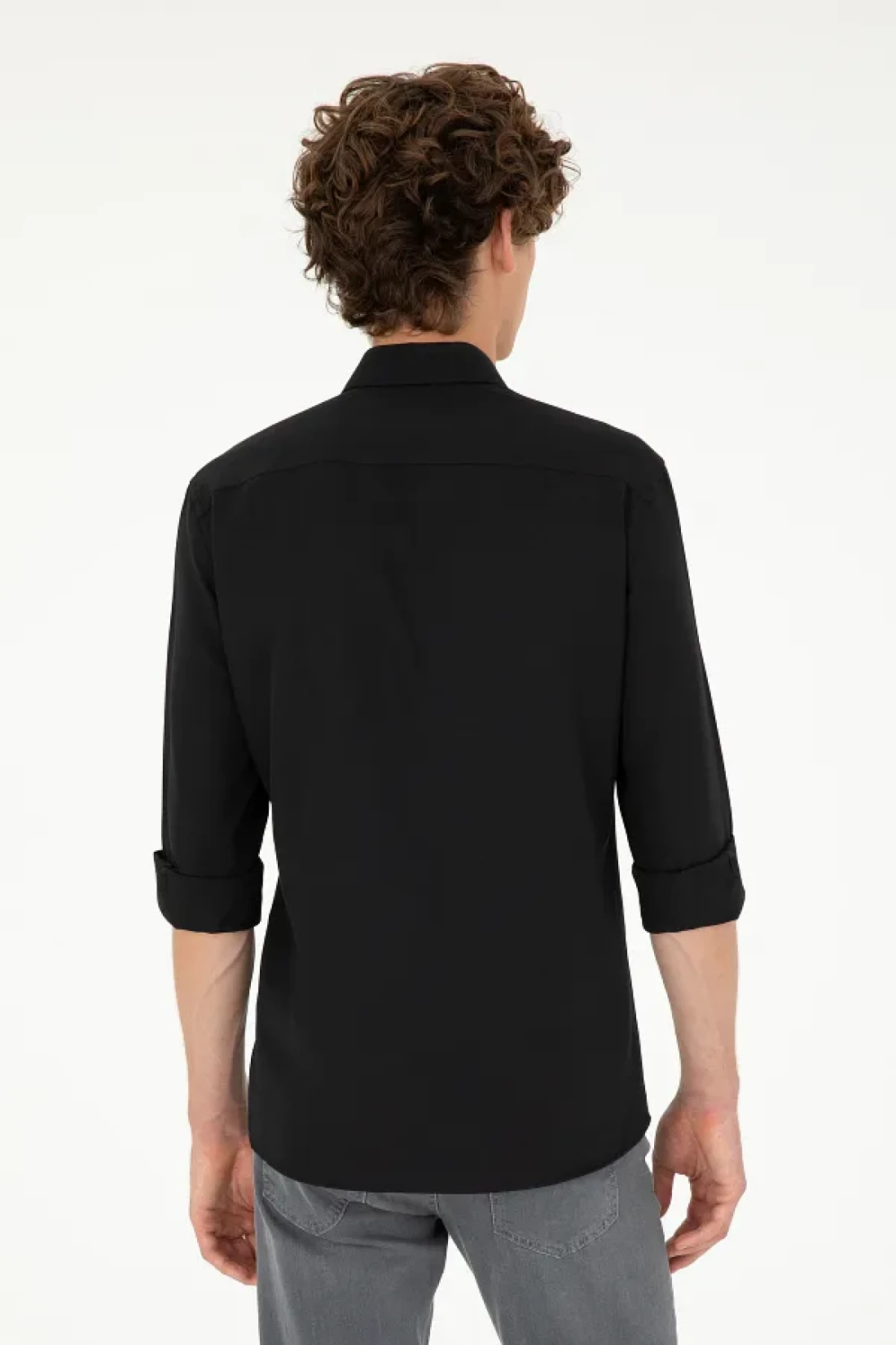 The black men's shirt, which can be comfortably preferred in every season with its long-sleeved design, is ideal for daily use. Thanks to its woven fabric, it offers a durable and comfortable structure