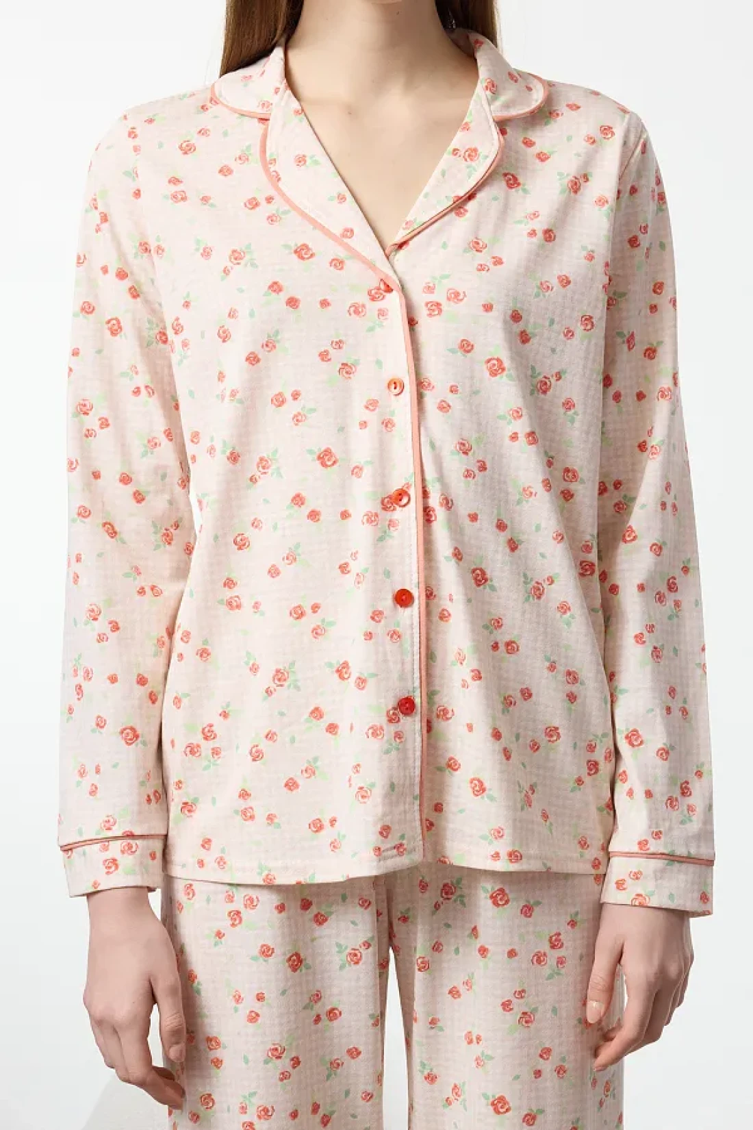 Collection 100% Cotton Ecru Floral Print Pajamas Set - Thmaw25Pt00202