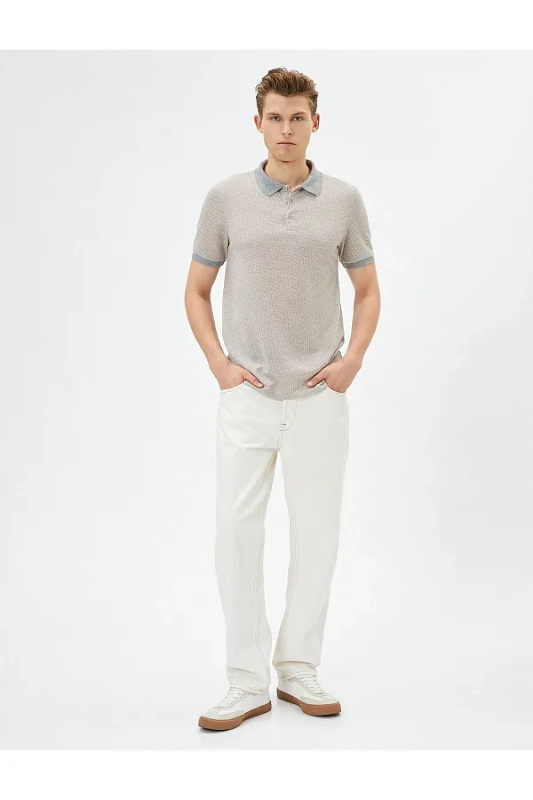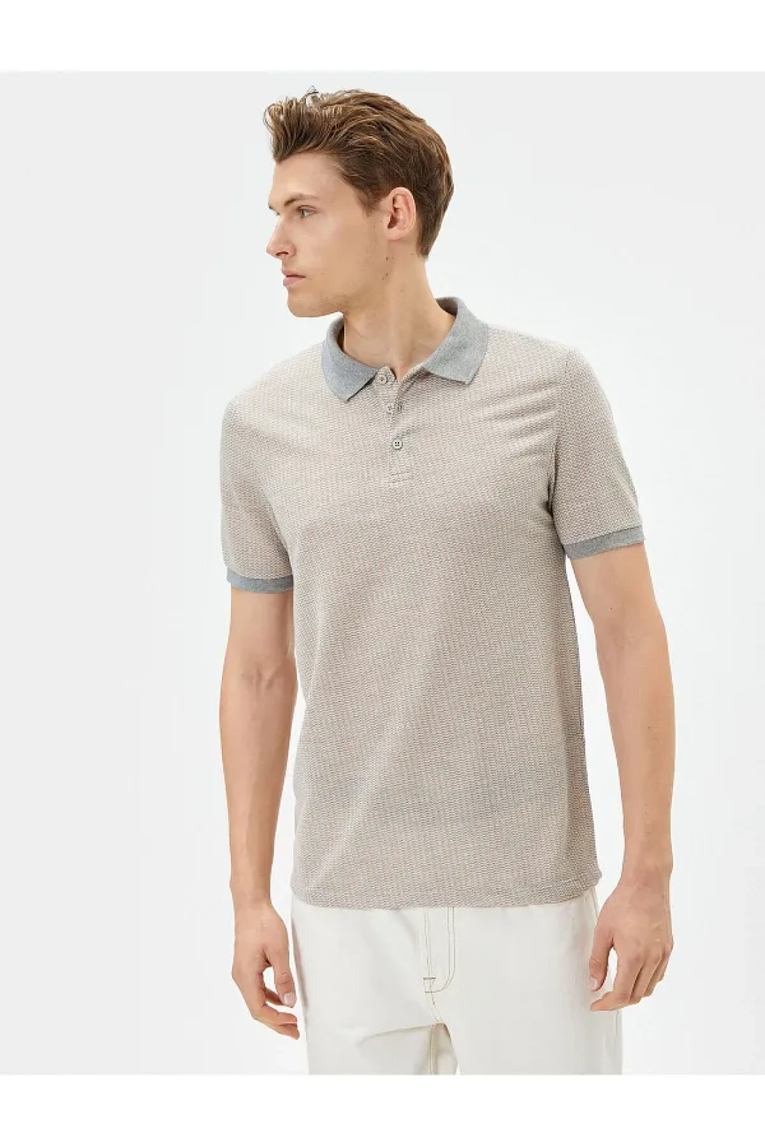 Koton Collared T-Shirt Minimal Print Slim Fit Short Sleeve