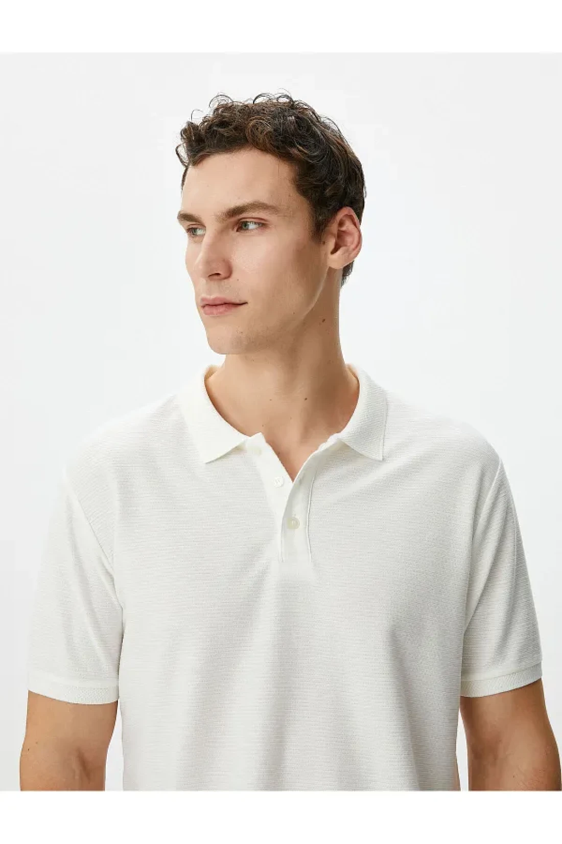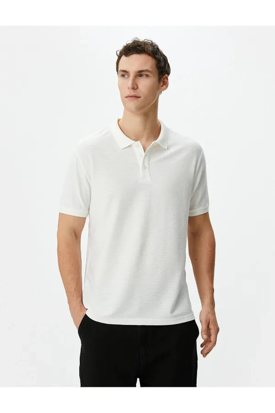 Koton Collared T-Shirt Slim Fit Button Detailed Short Sleeve