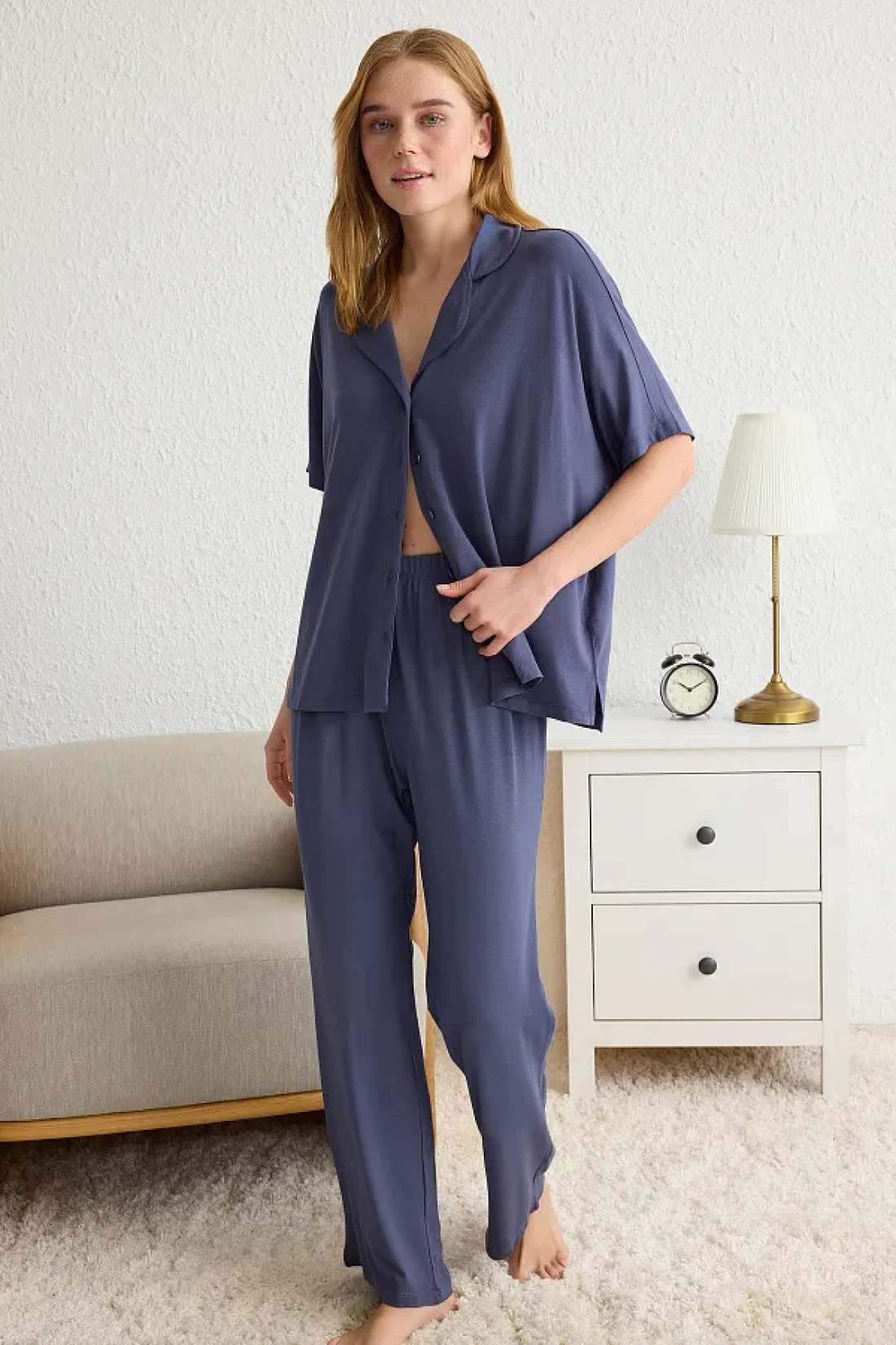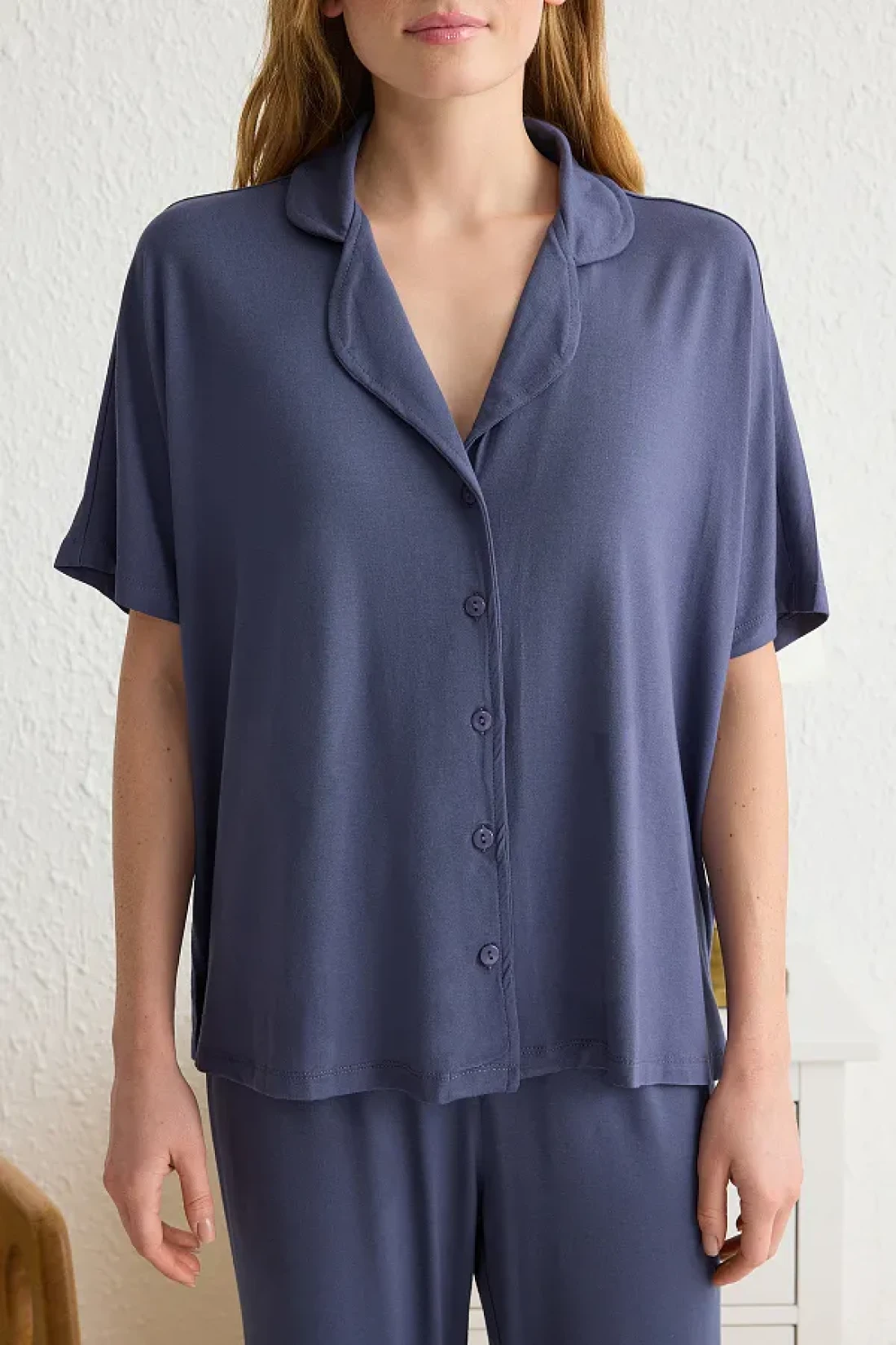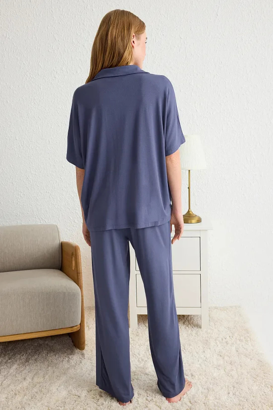 Collection Navy Blue Comfortable Fit Viscose Maternity Knitted Pajamas Set Thmss25Pt00165