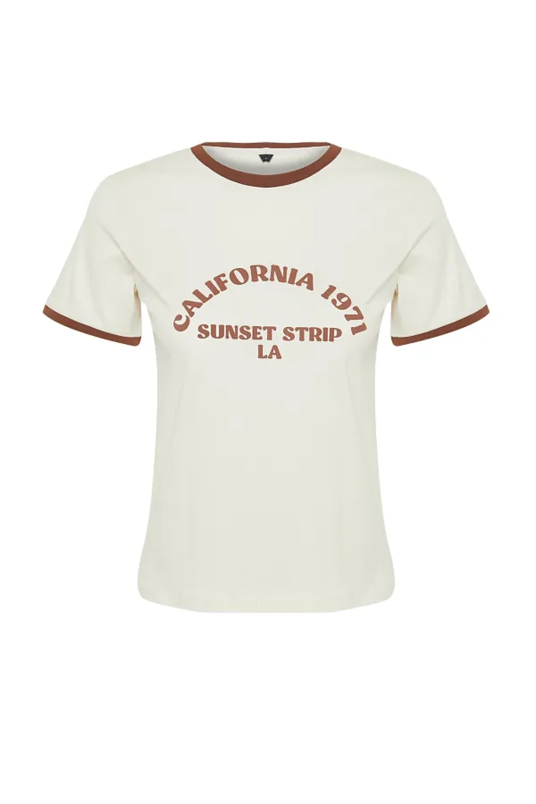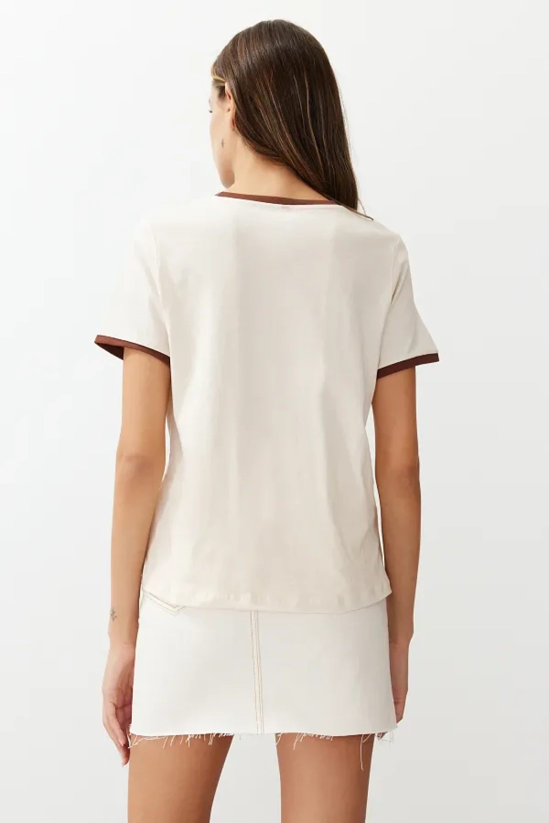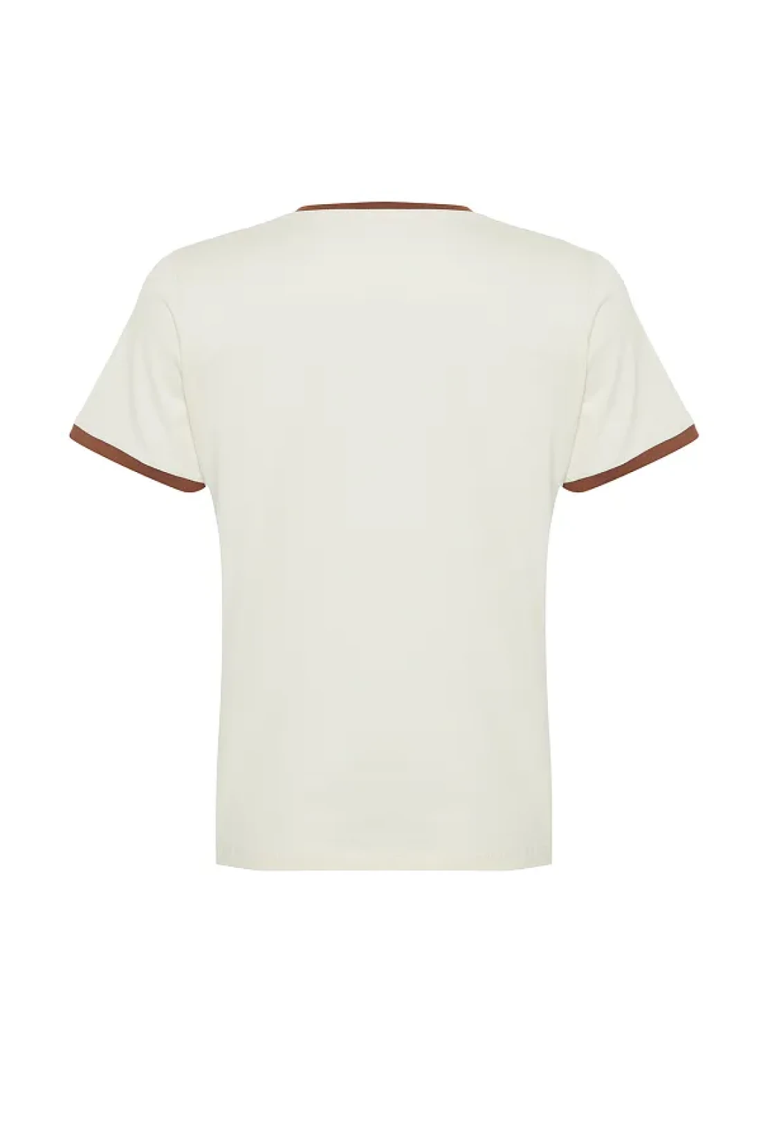 Collection Stone 100% Cotton Slogan Printed Knitted T-Shirt with Contrast Piping Detail TWOSS24TS00105