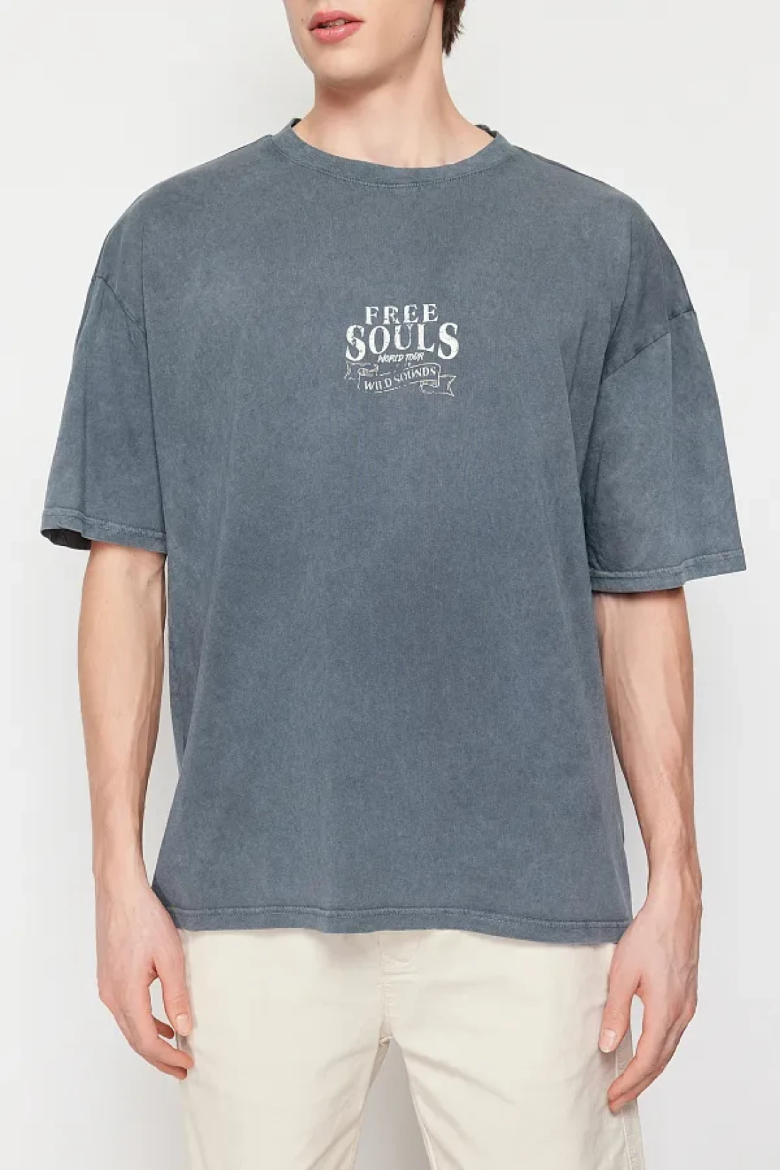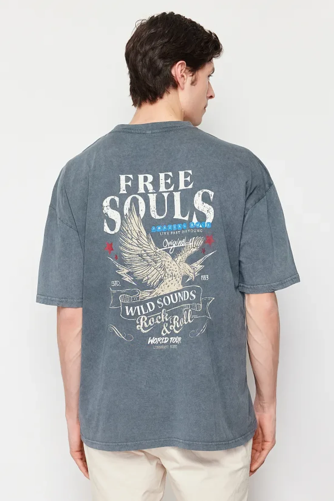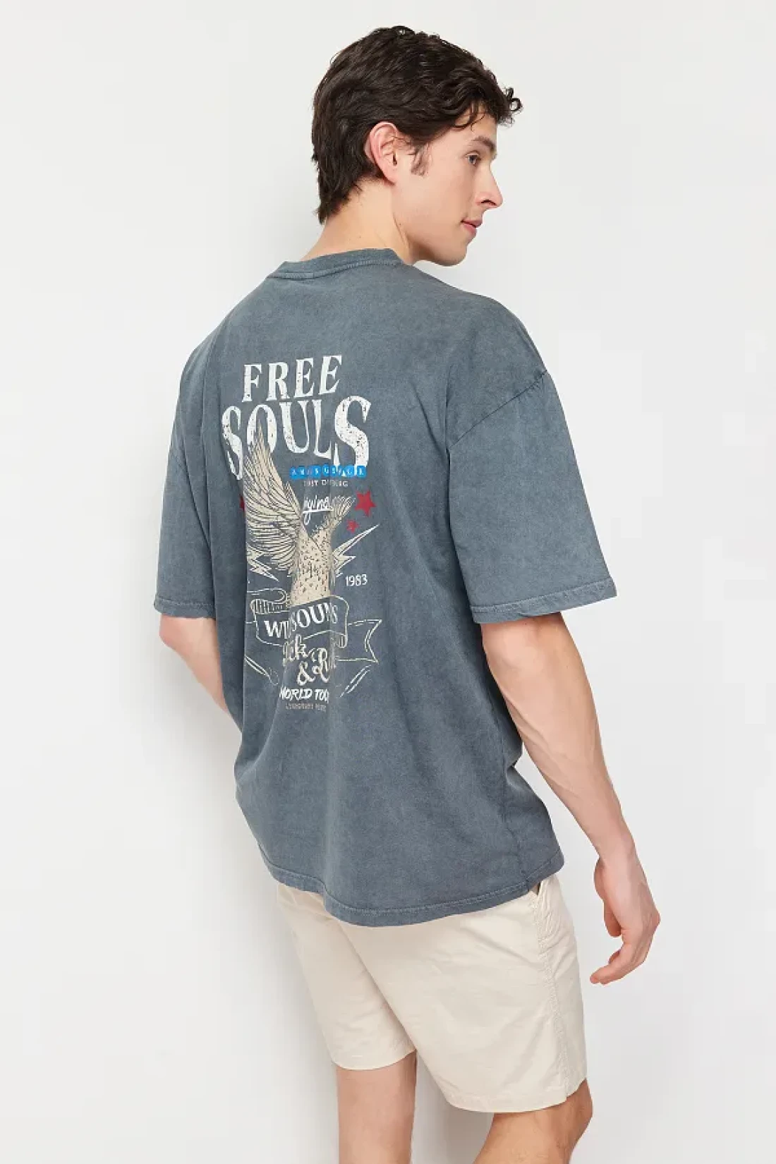 Collection AnThraciTe Eagle PrinTed Pale EffecT Oversize CoTTon T-Shirt - TMNSS24TS00006