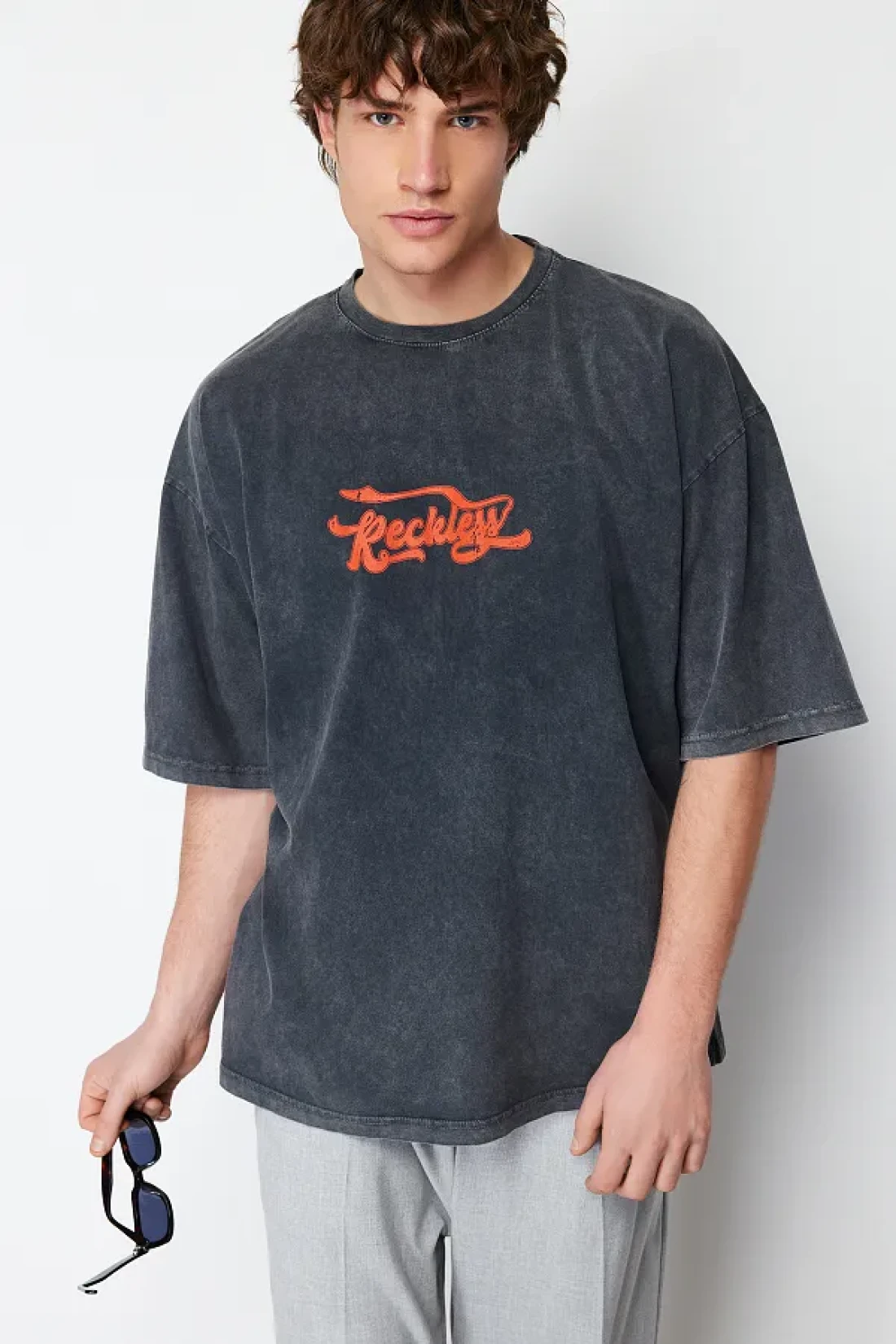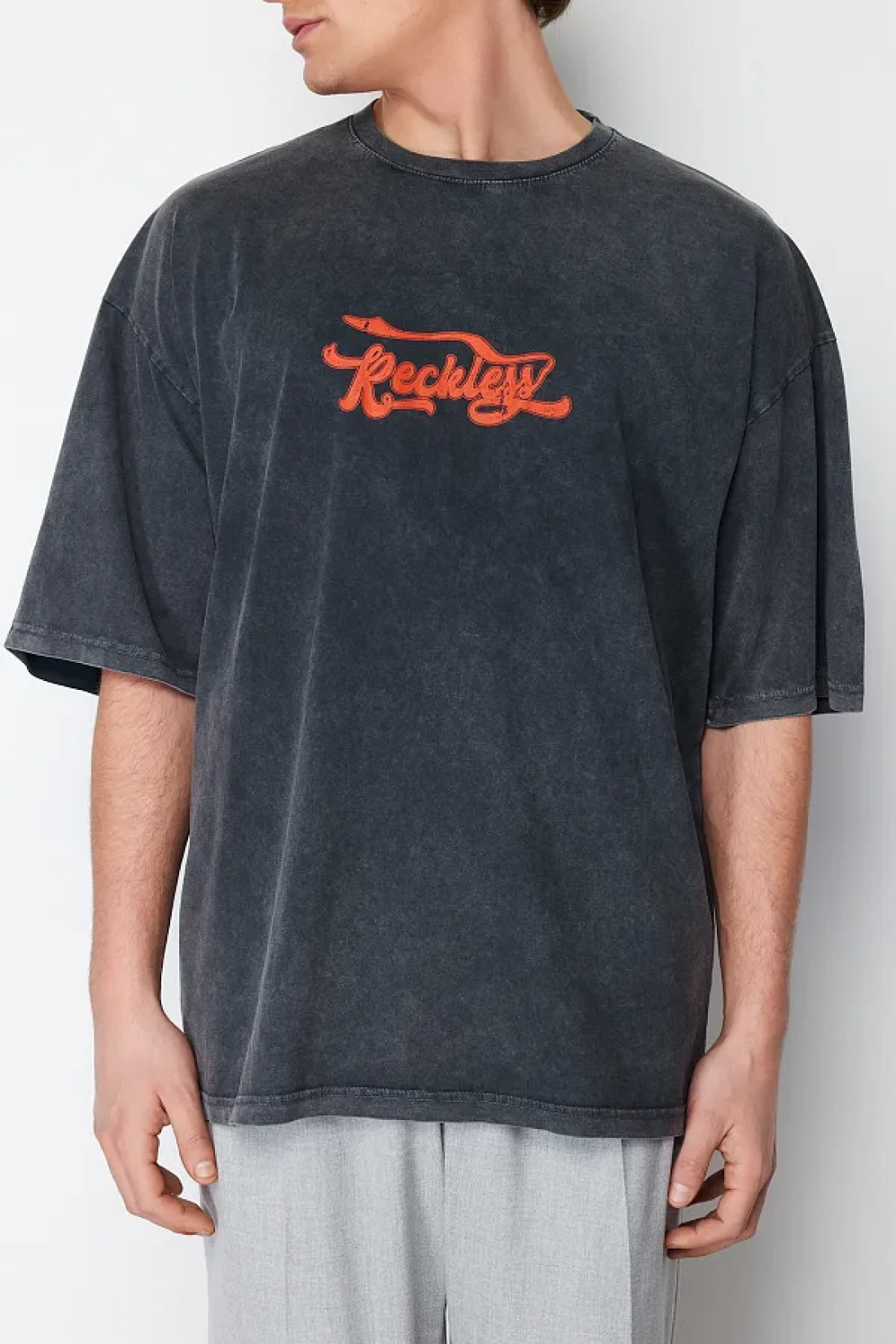 Collection Anthracite Color Oversize Printed Cotton T-Shirt - TMNSS24TS00120