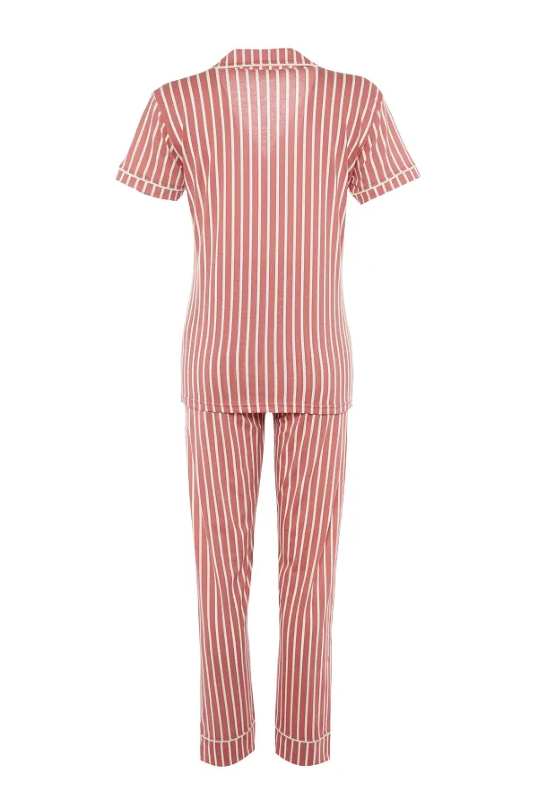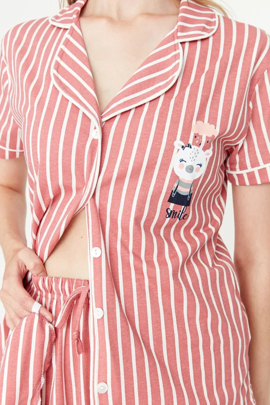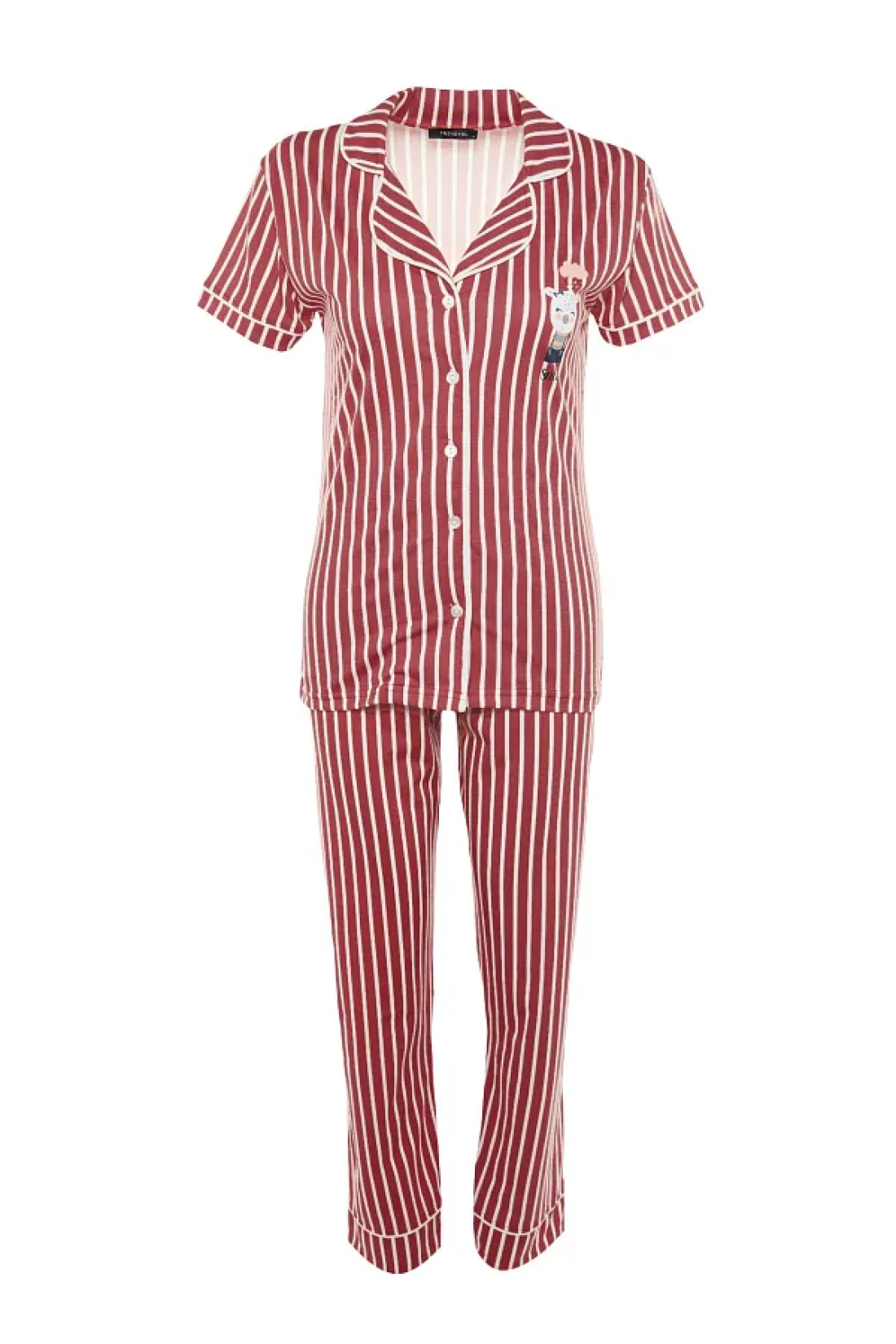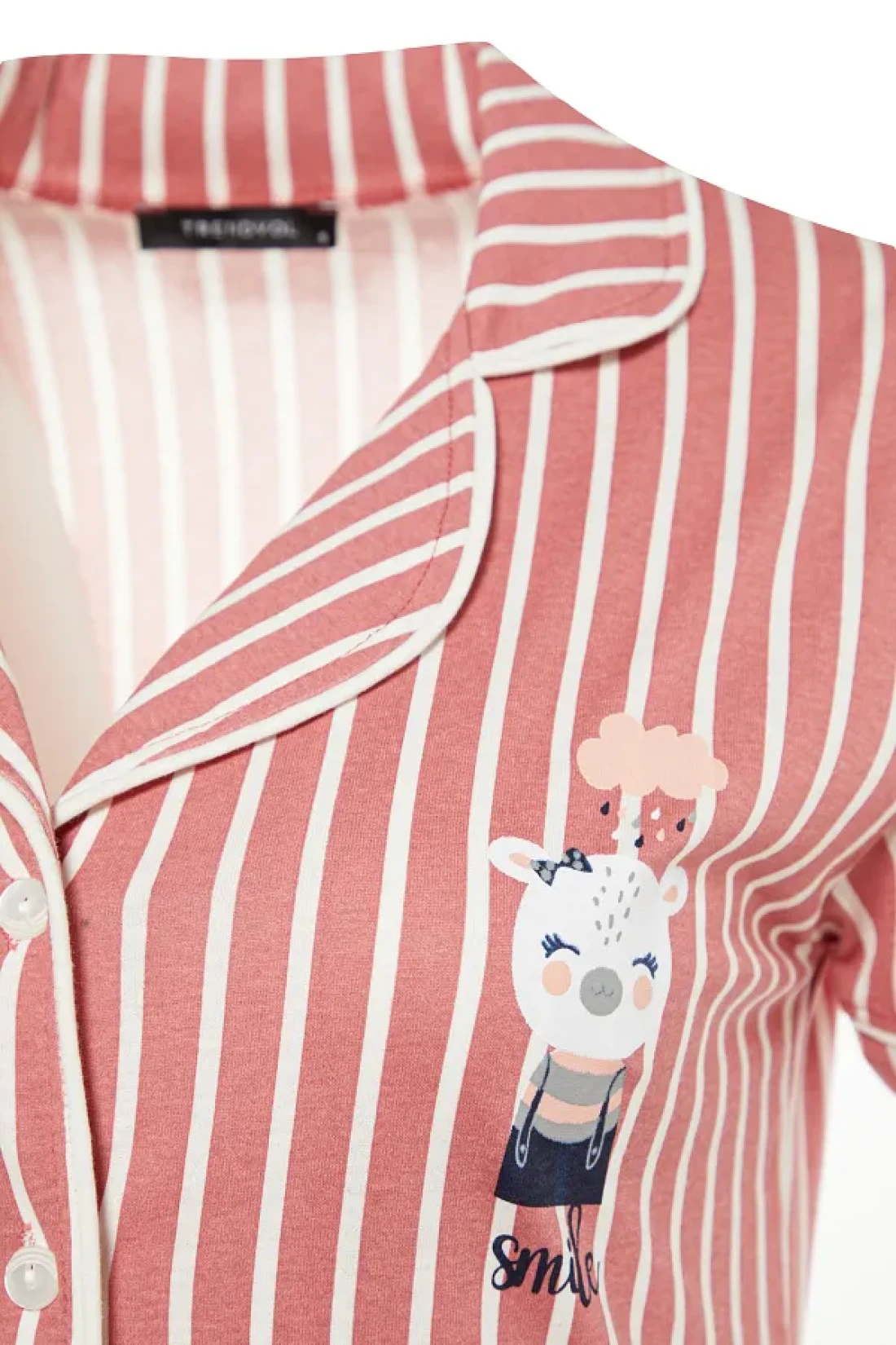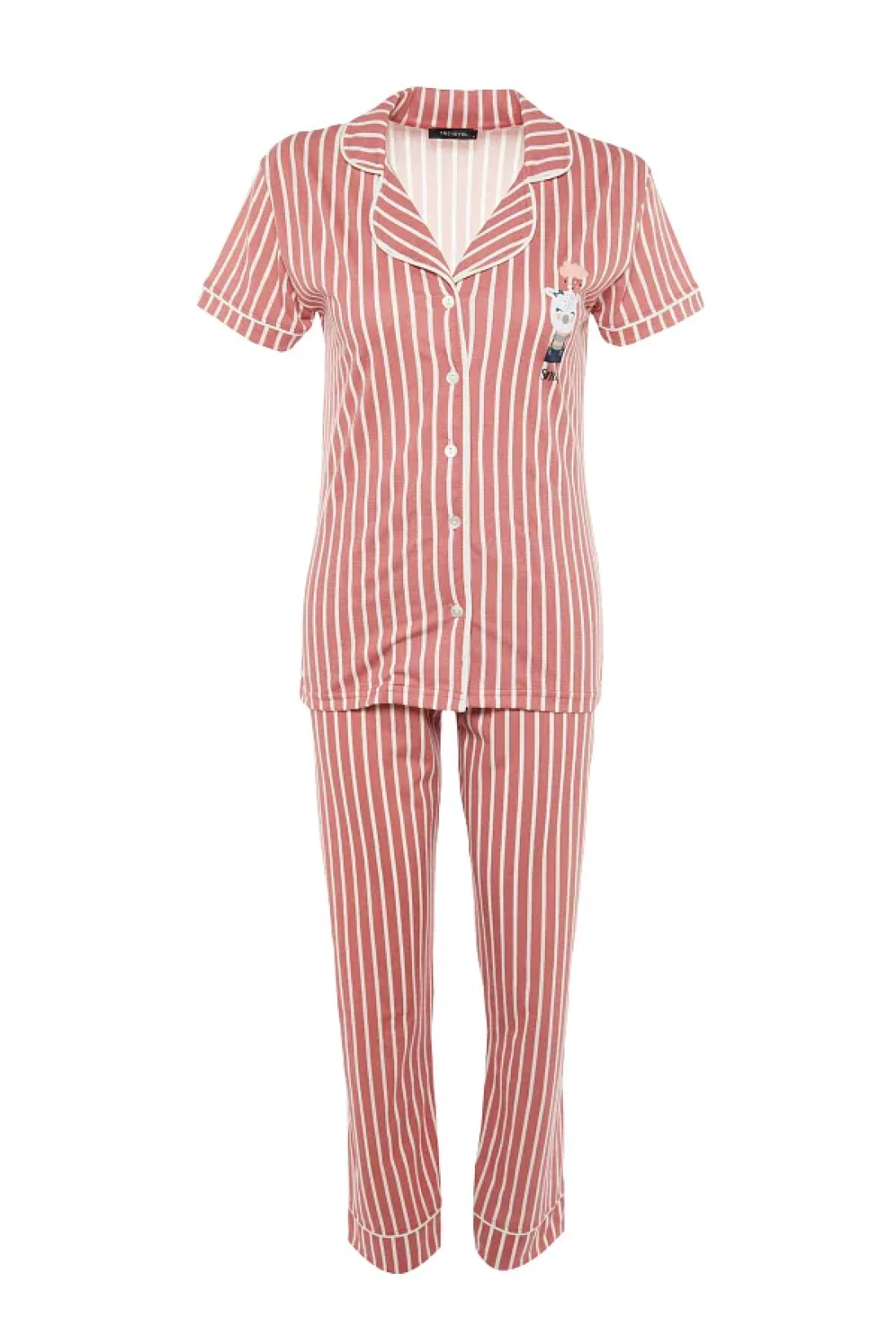Collection Animal Print Pink Striped Knitted Pajamas Set - Shirt and Pants THMSS21PT0878