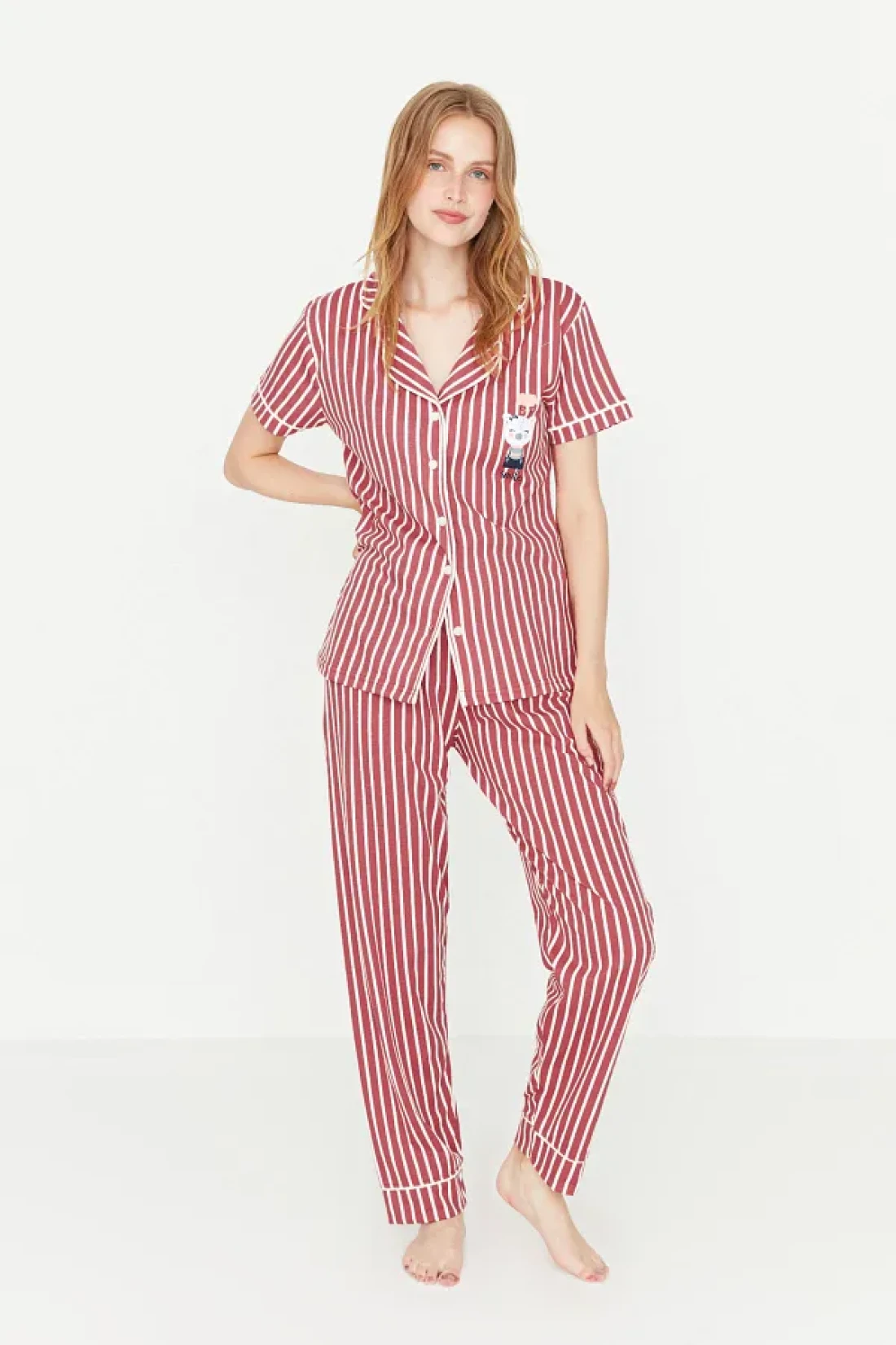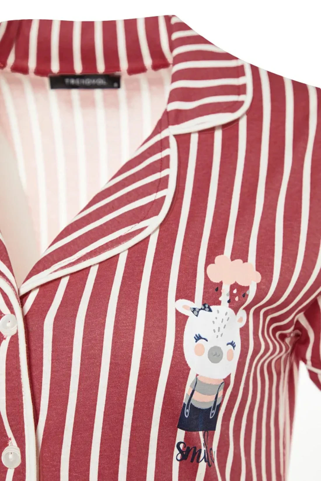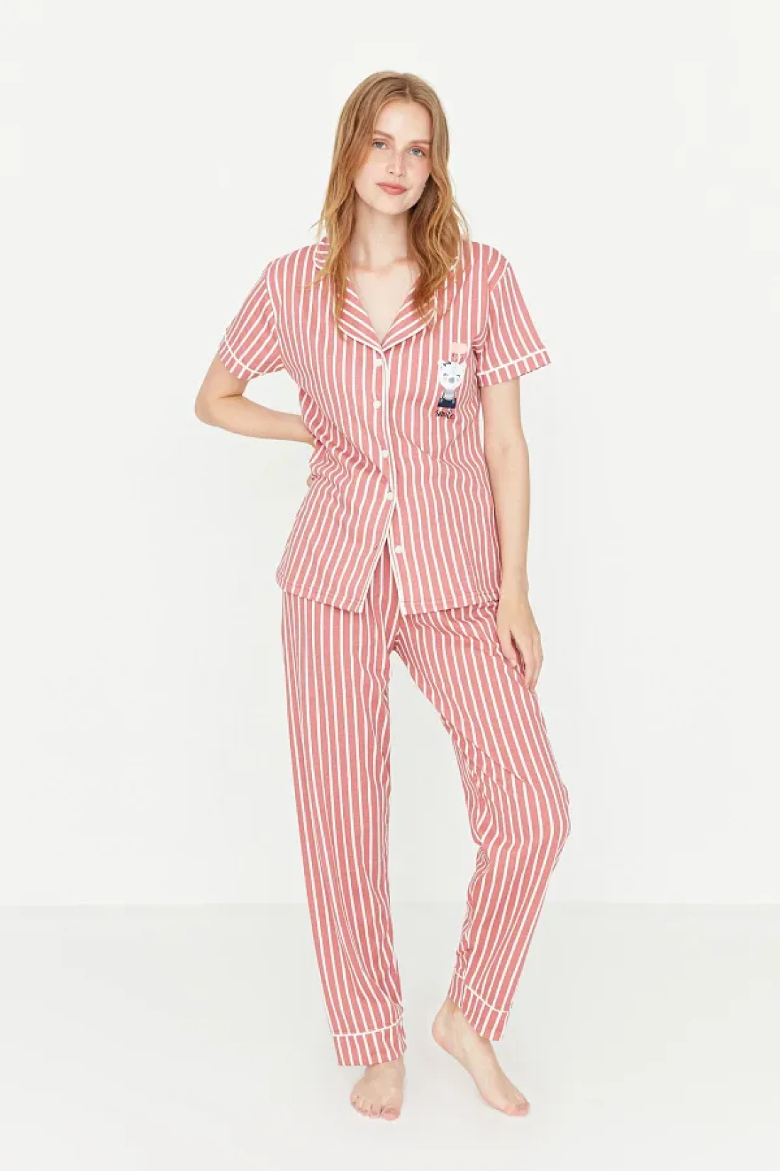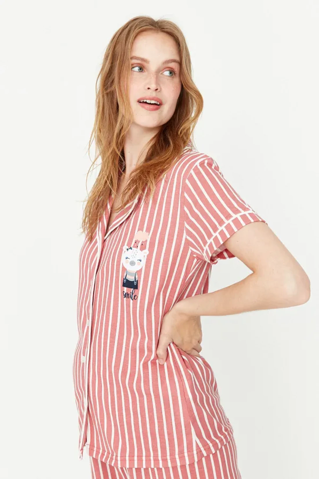 Collection Animal Print Pink Striped Knitted Pajamas Set - Shirt and Pants THMSS21PT0878